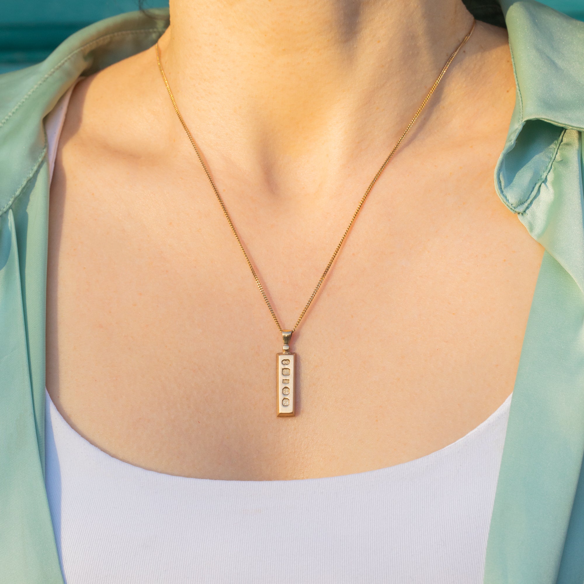 This 9ct Gold Ingot Gold bar pendant is the perfect opportunity to get your hands on a solid bar of Gold. Hallmarked to the year 1984, this vintage ingot may hold the date of a special memory!