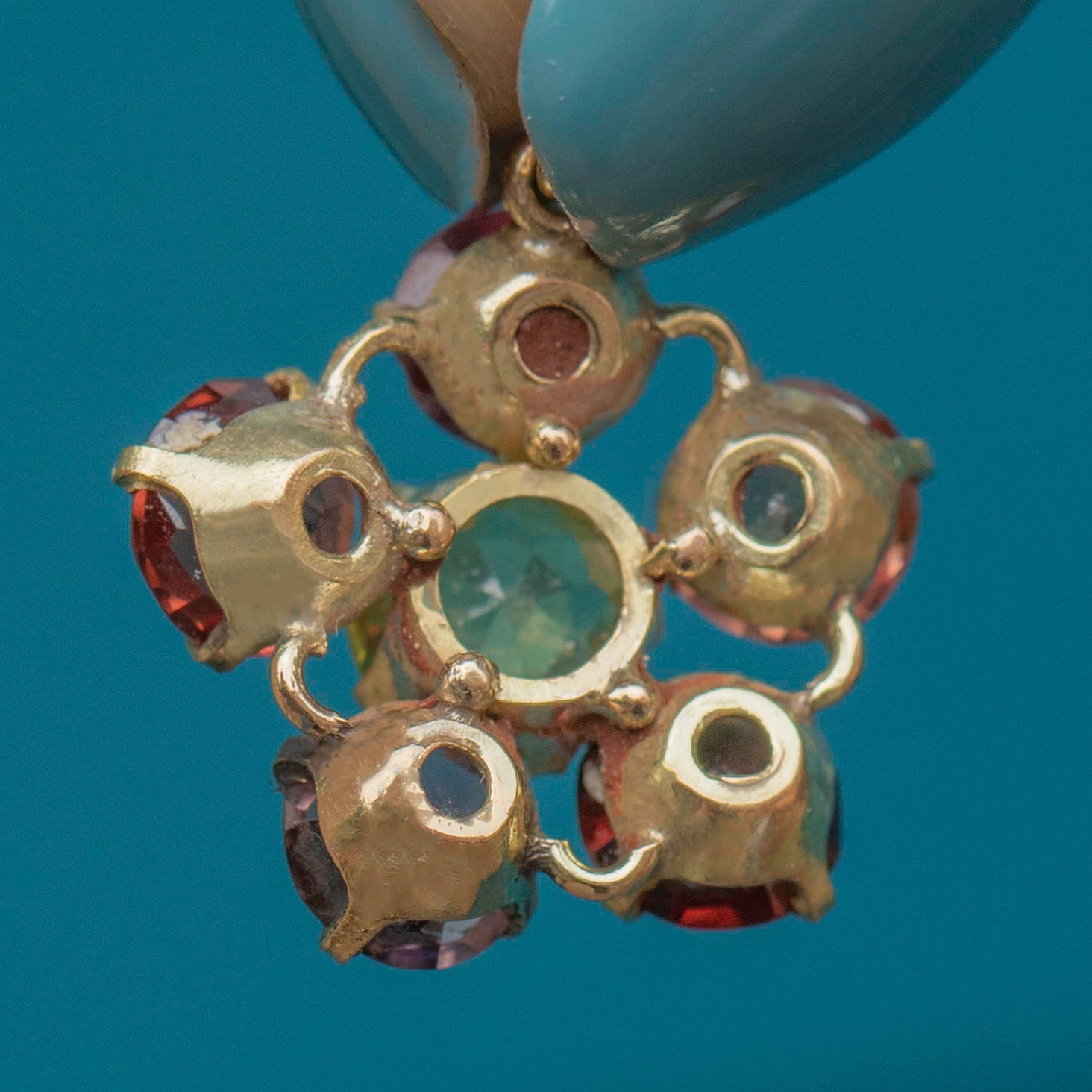 EXCELLENT. This 9ct Gold mixed Sapphires flower charm is in excellent condition. Her gemstones have retained their exquisite hues and are securely set with no damage to note. The flower cluster design is perfectly intact and the Gold is buttery with no dings or dents to note. All in all, a gorgeous Mid-Century Vintage treasure to add to your repertoire!