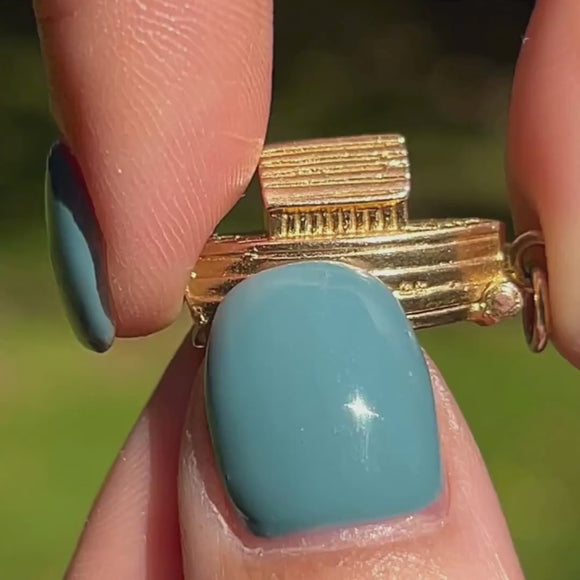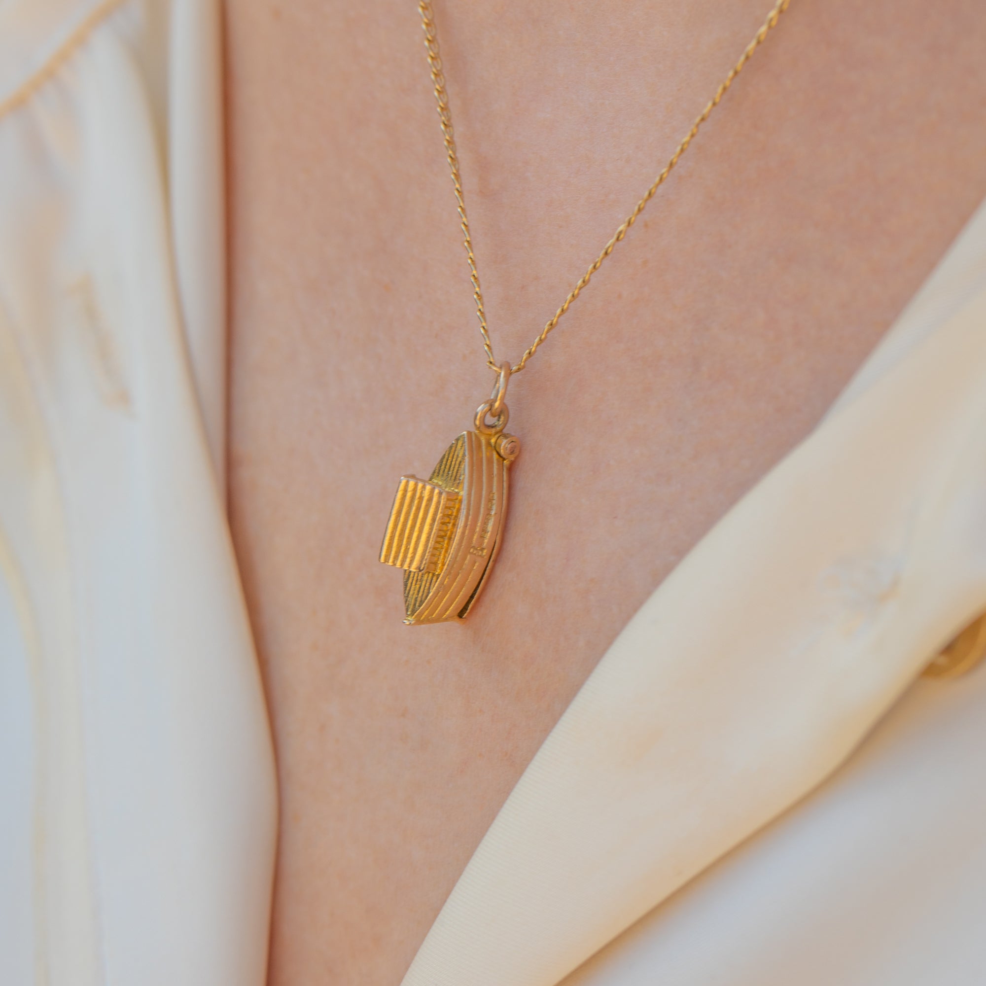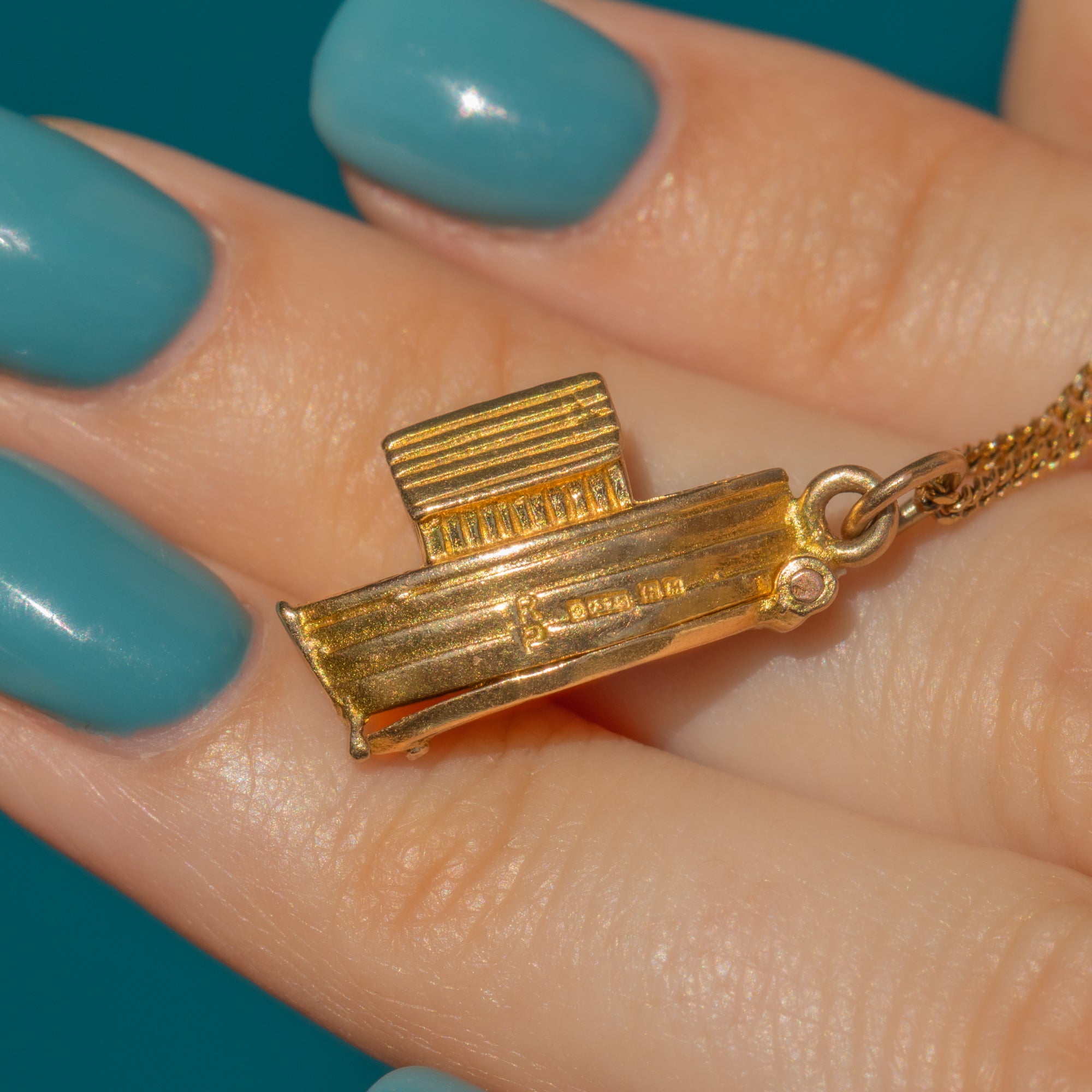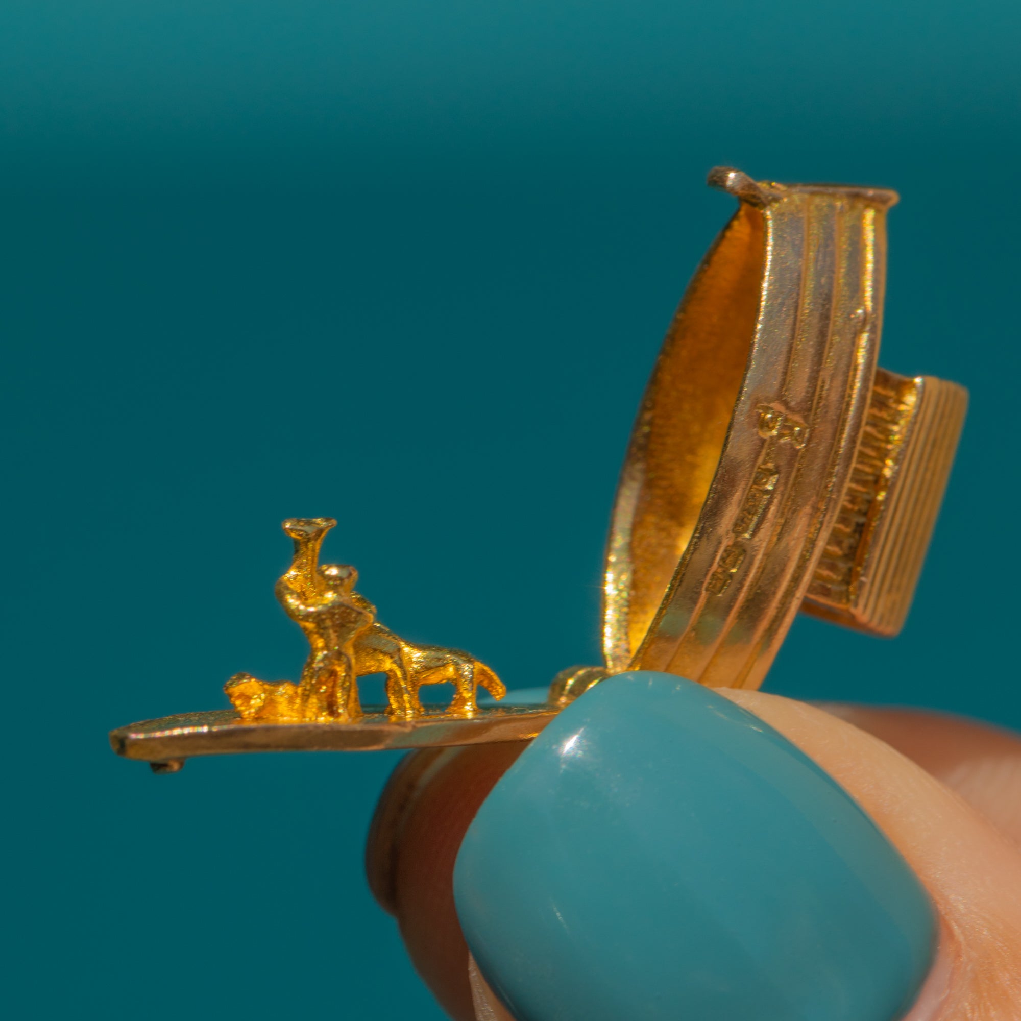 Noah's Ark is a symbol of hope, peace, and resilience, you can now wear a piece of this legendary saga with this captivating 9ct Gold 'Noah's Ark' charm! Perfectly encapsulating the essence of the tale, this Mid-Century charm is crafted entirely from buttery 9ct Gold, illuminating each fine and delicate detail throughout.