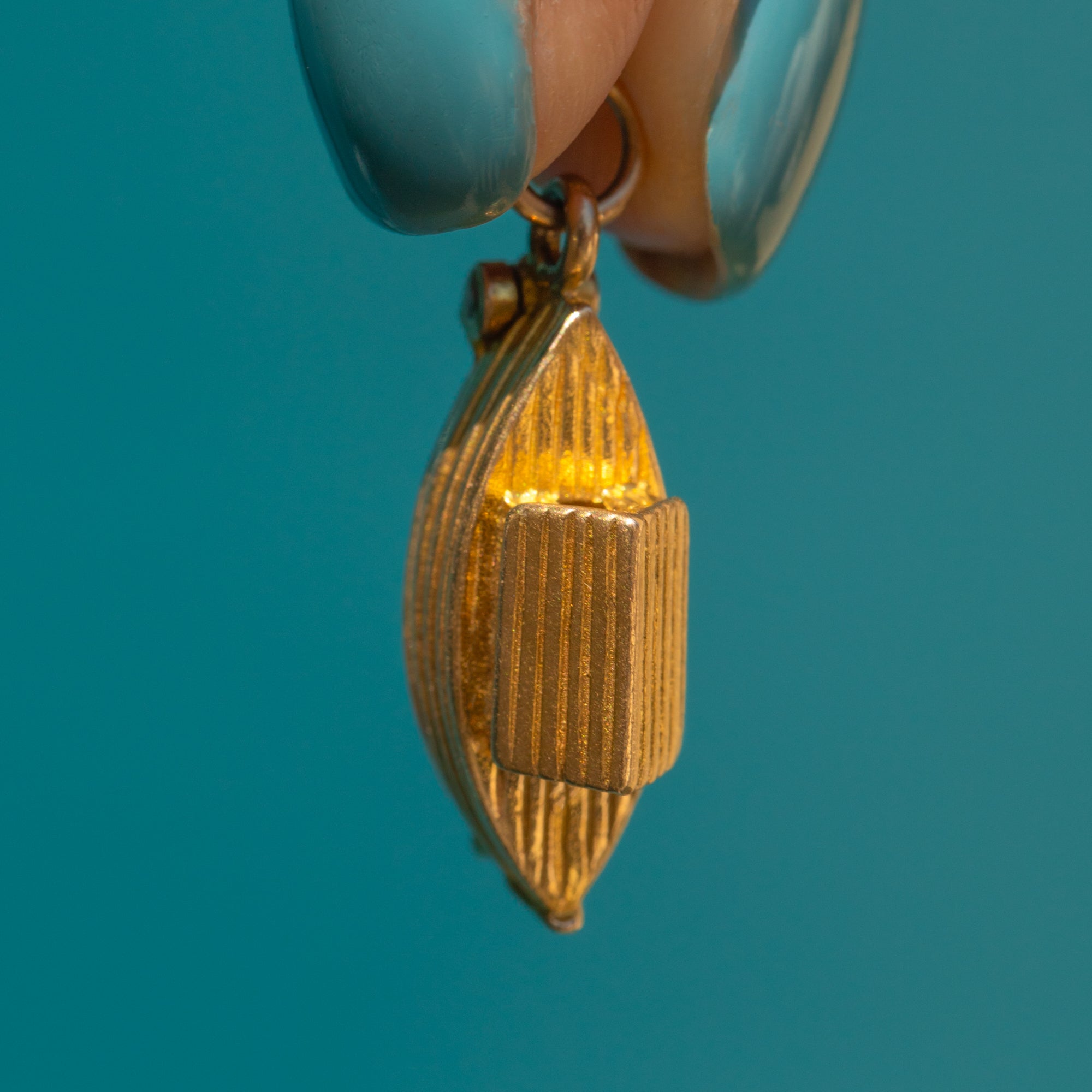 Lift her roof to reveal the animals huddled together two by two, making for a fun, articulating pendant to add to your collection. Once suspended from a dainty Gold chain you can almost hear the chiming of the waves as the charm sways across your décolletage.