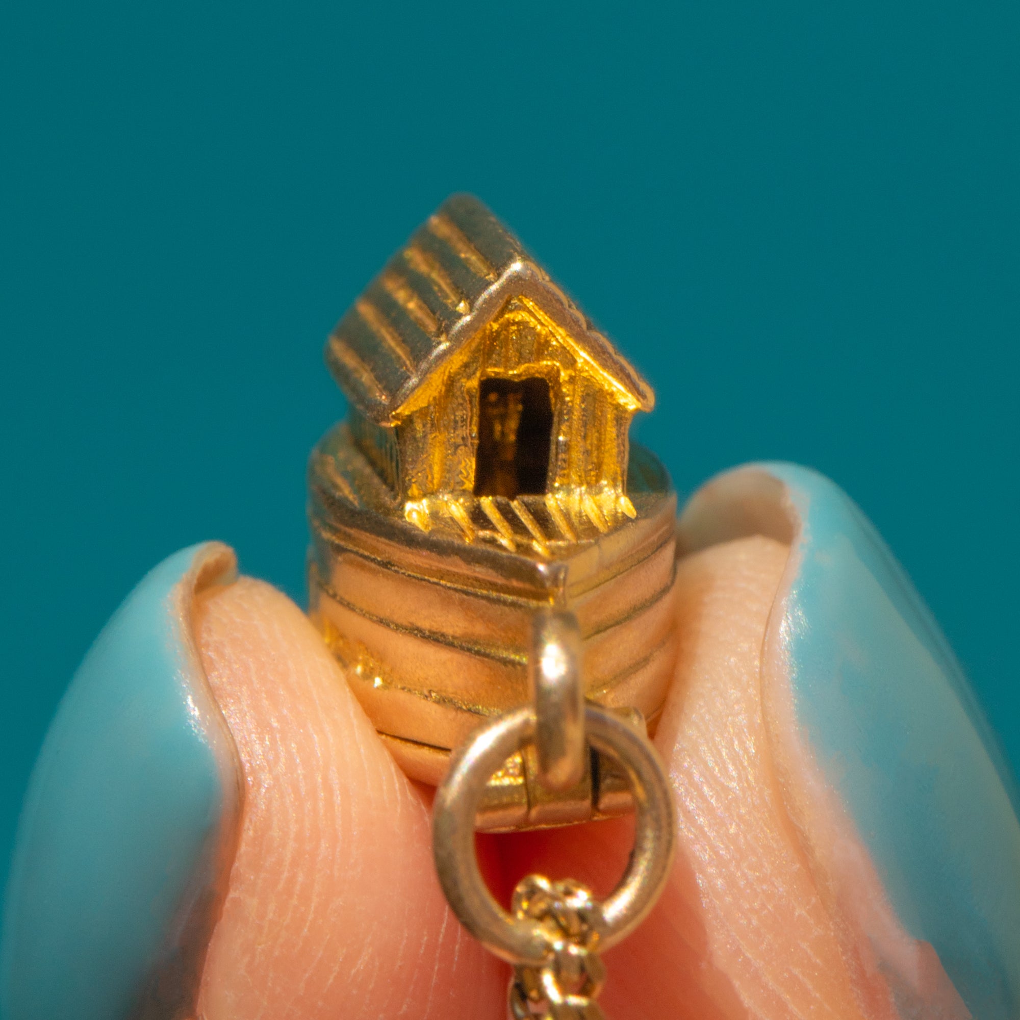 EXCELLENT. This 9ct Gold Noah's Ark charm is in very good condition! Her 9ct Gold is buttery throughout, and the structural integrity of the piece is in wonderful condition, with a strong body. The hinge mechanism is in perfect working order and the roof clips into place keeping it firmly shut. What an adorable little edition this novelty charm will make to your jewellery collection!