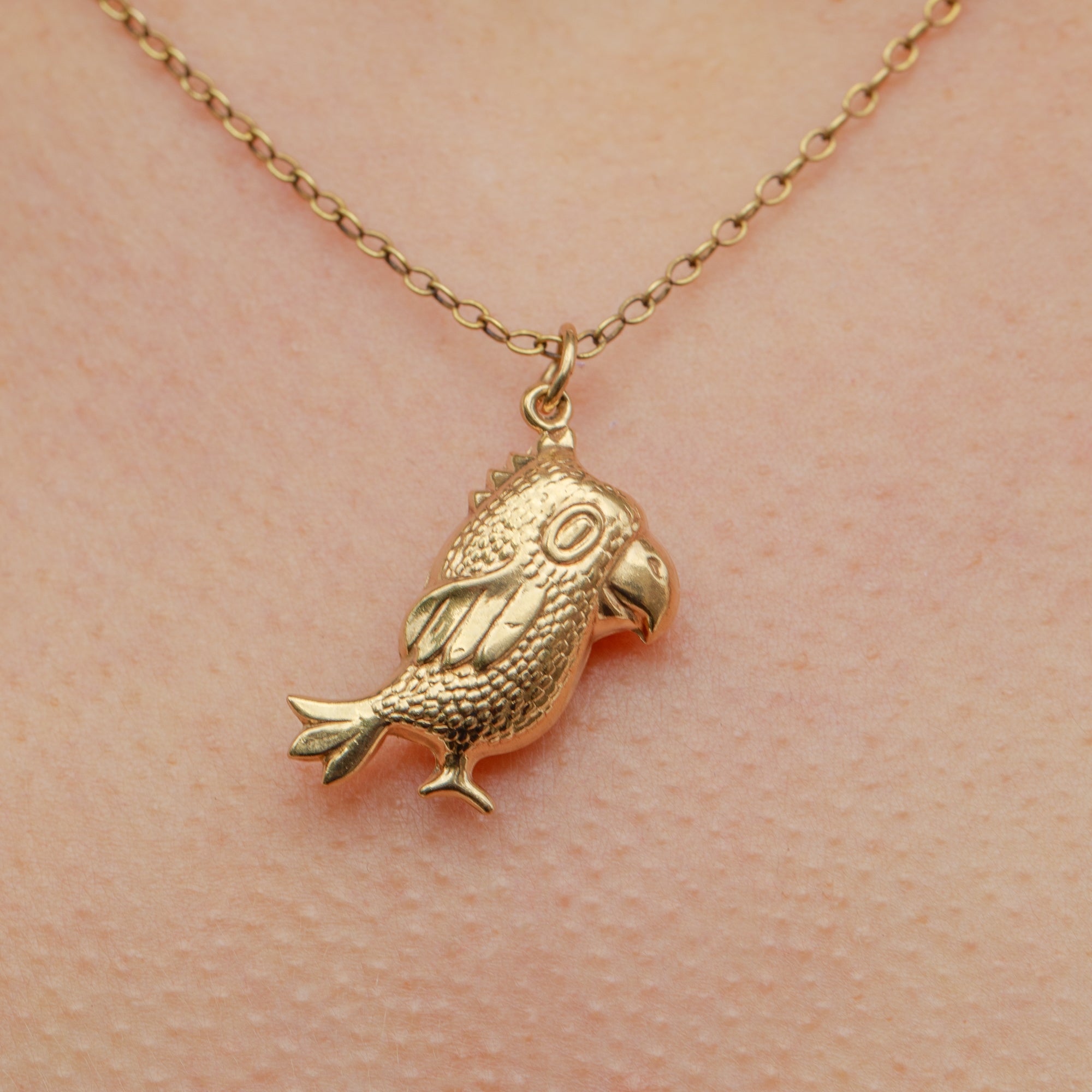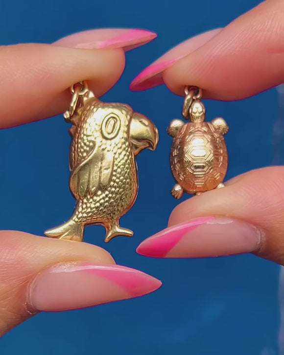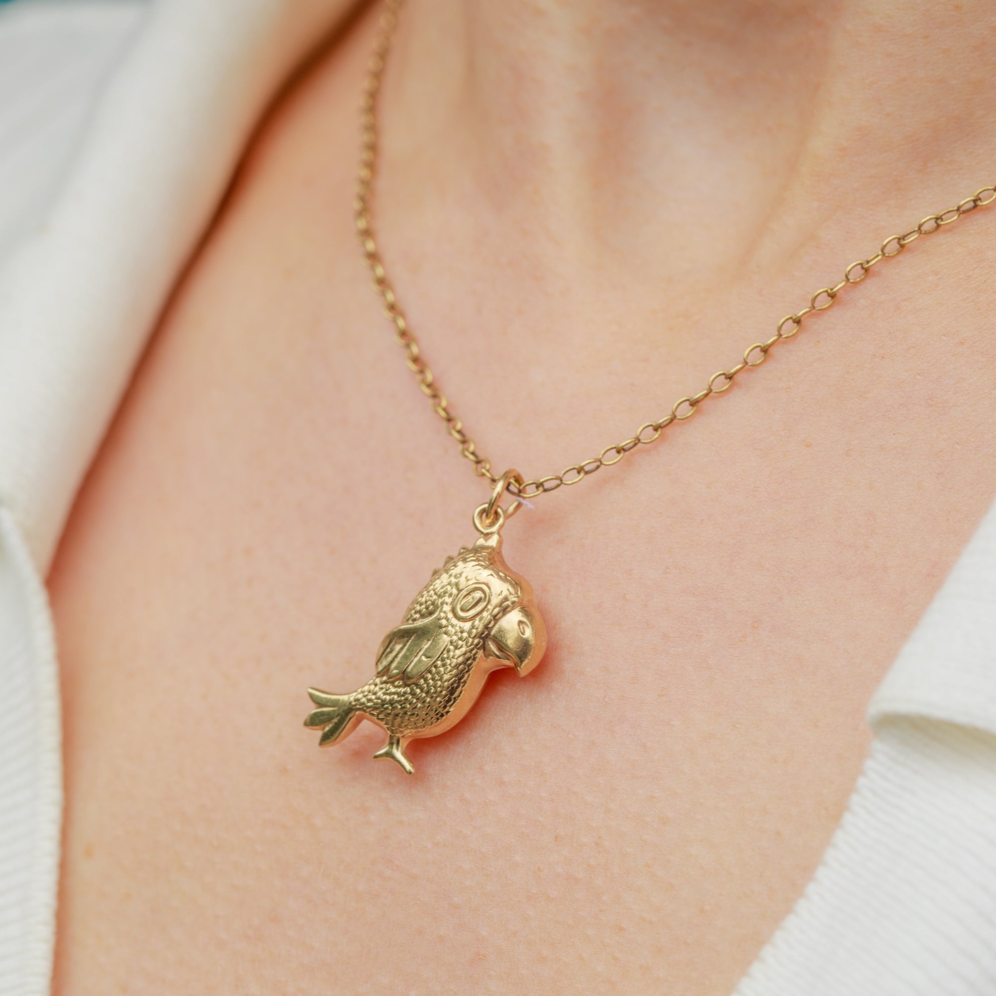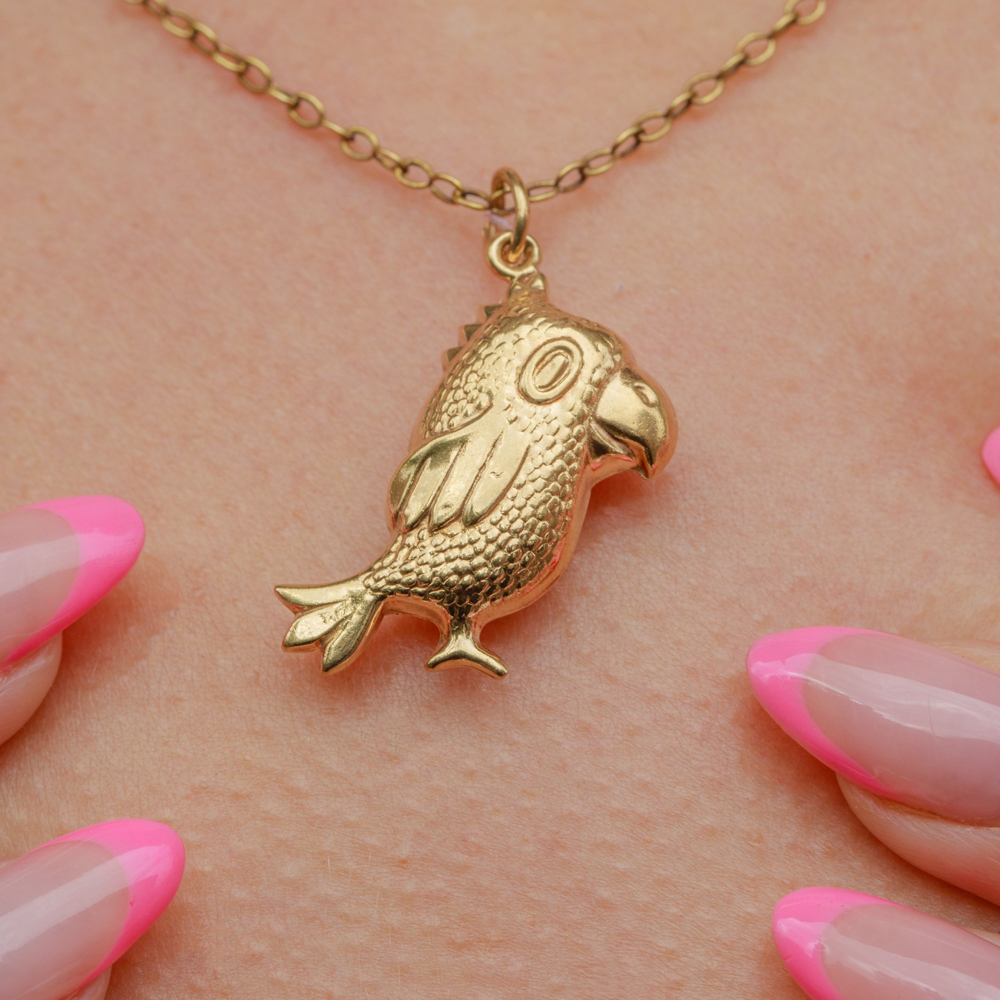 EXCELLENT: This 9ct Gold parrot charm is in excellent condition, with a beautifully polished Gold finish that highlights its intricate detailing. A well-preserved and charming piece, ready to be worn suspended from a fine Gold chain!
