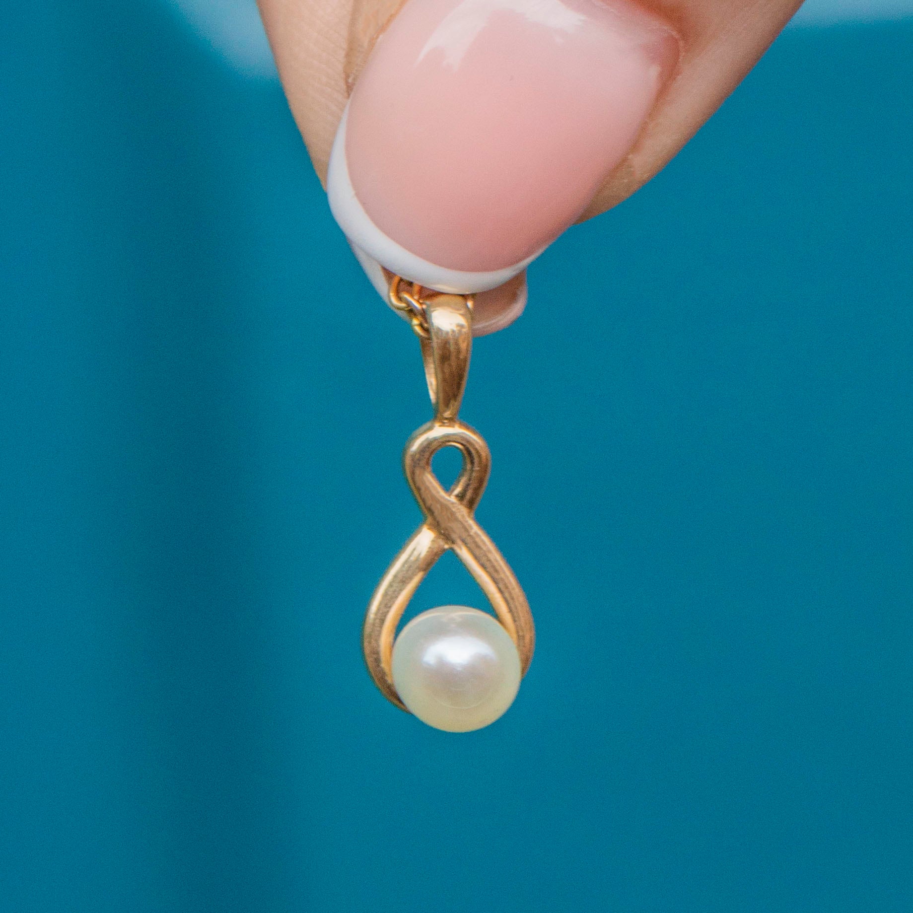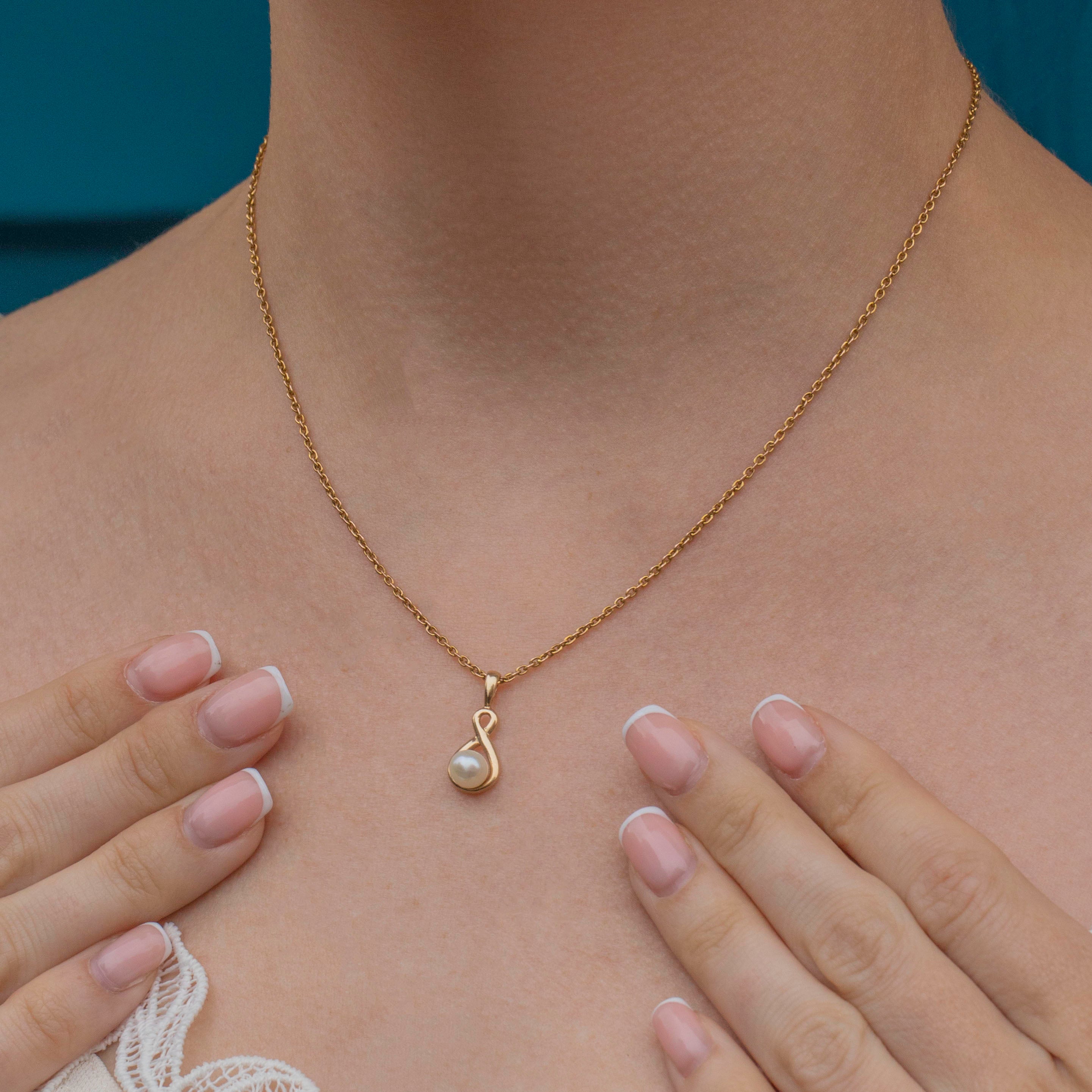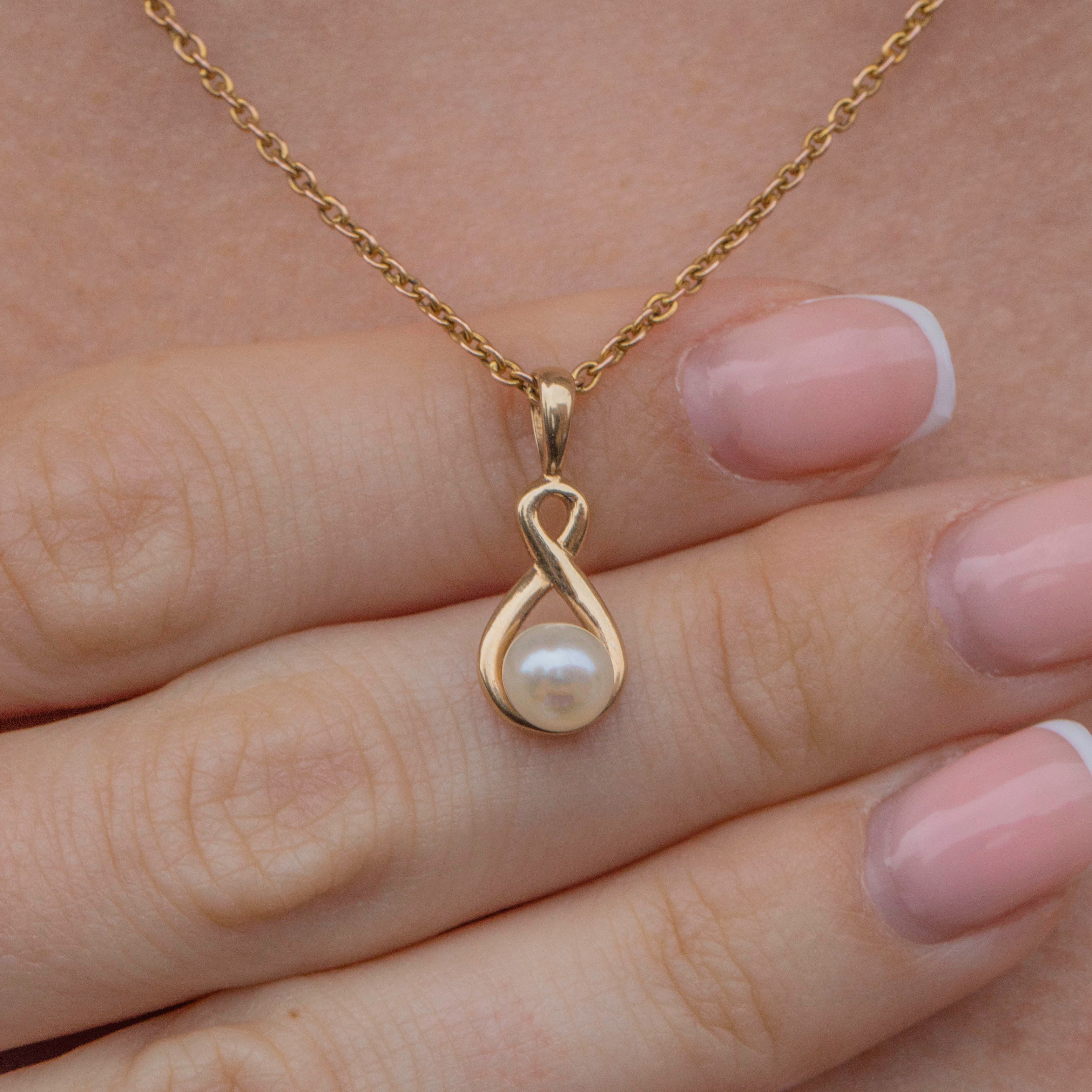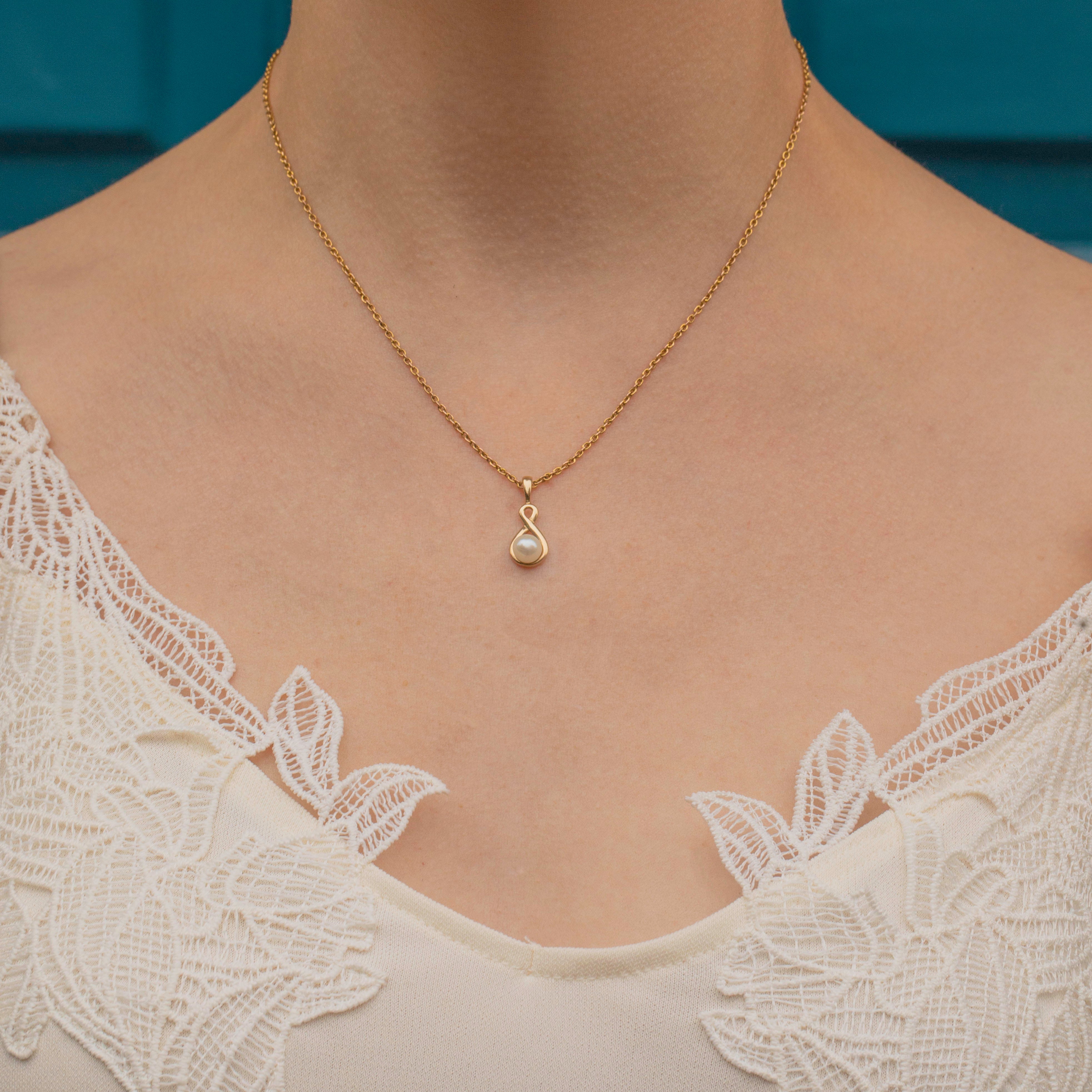 This sweet 9ct Gold Pearl twist charm will instantly add an elegant finish to your outfit! The 9ct Gold has been formed into a beautiful infinity design and is set with a plump Pearl with an irresistible cotton white sheen.