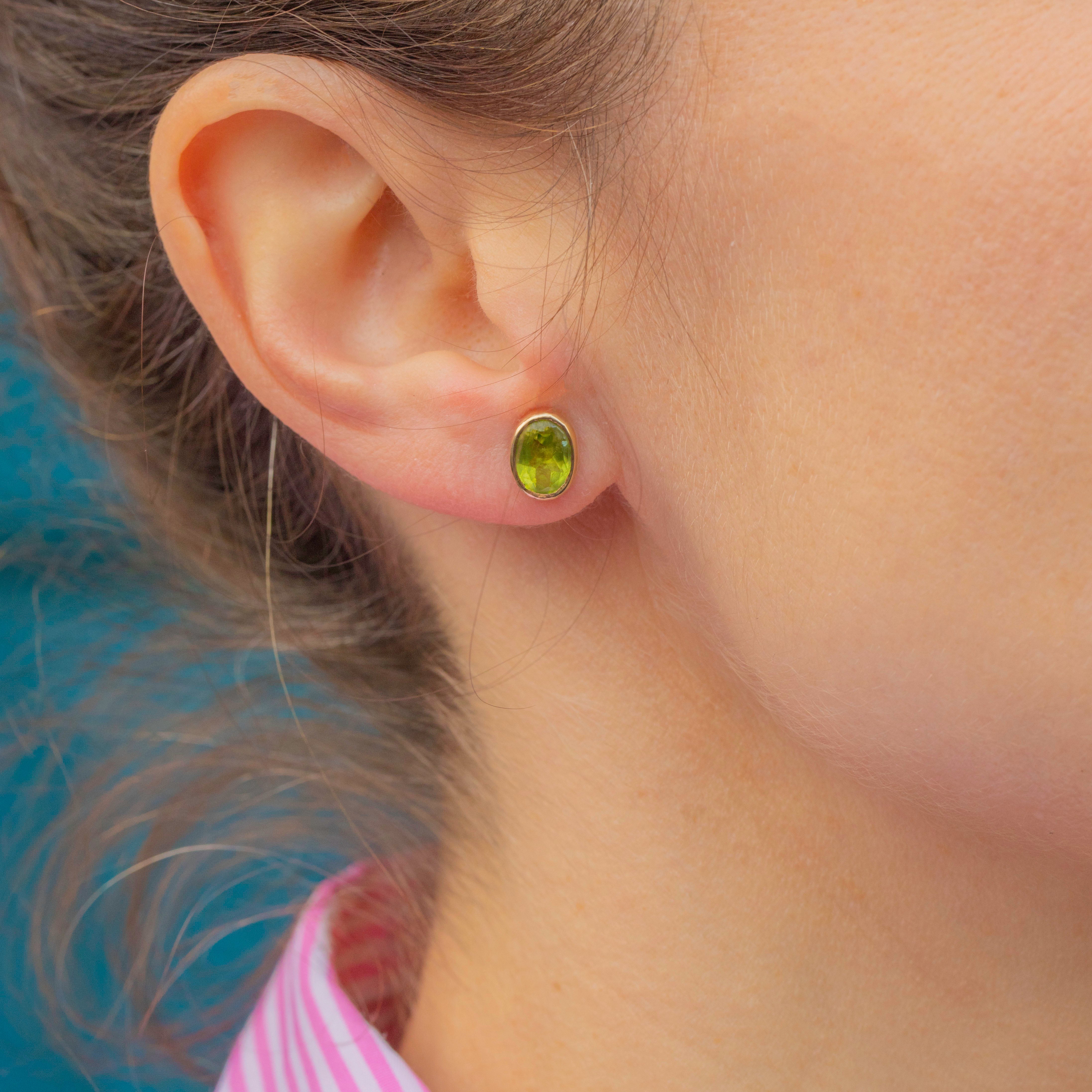 The Peridots sit within buttery 9ct Gold bezel settings, effortlessly complimented by the vibrancy of the stones. Perfect for everyday wear, these lightweight mid-century earrings will make a great addition to your ear stack!