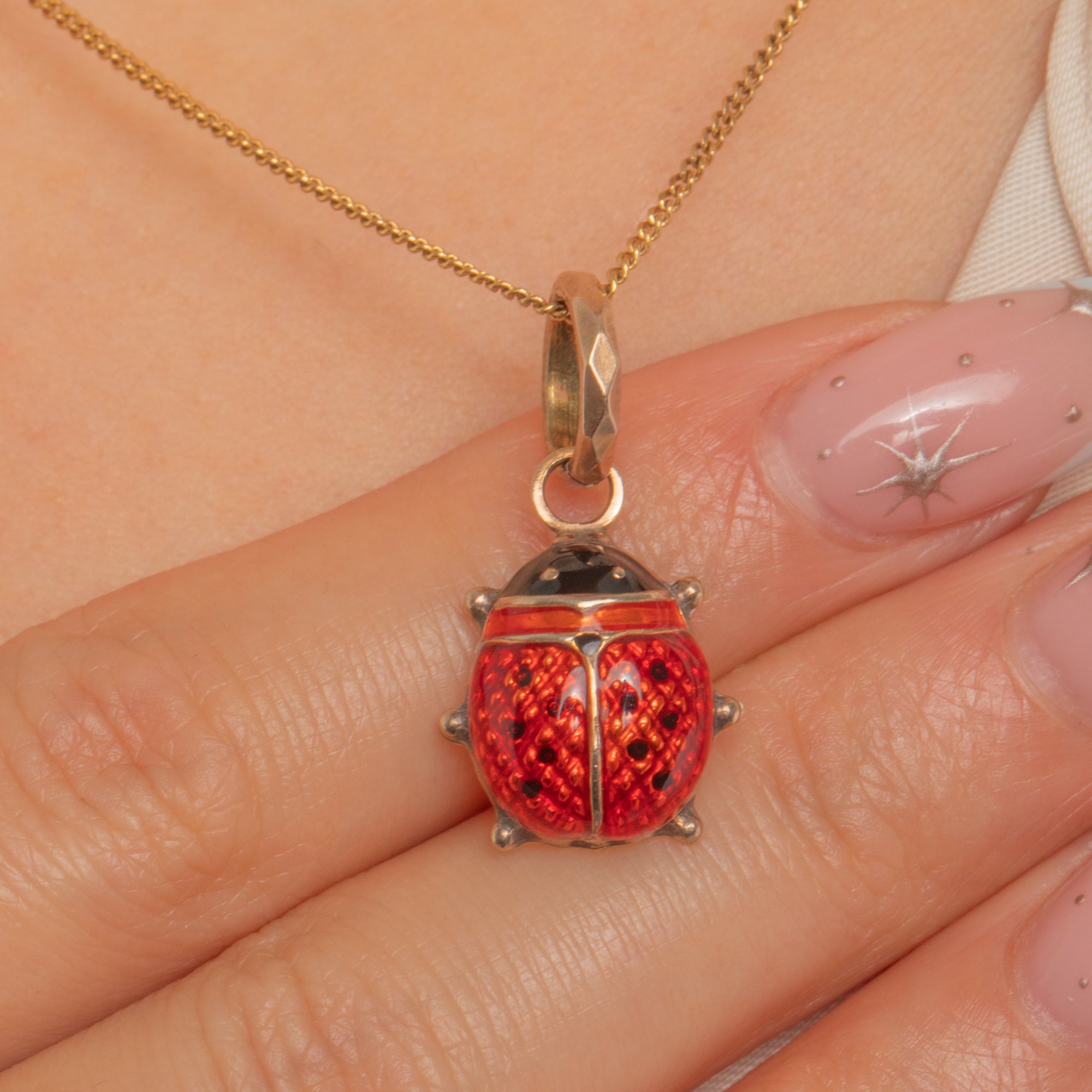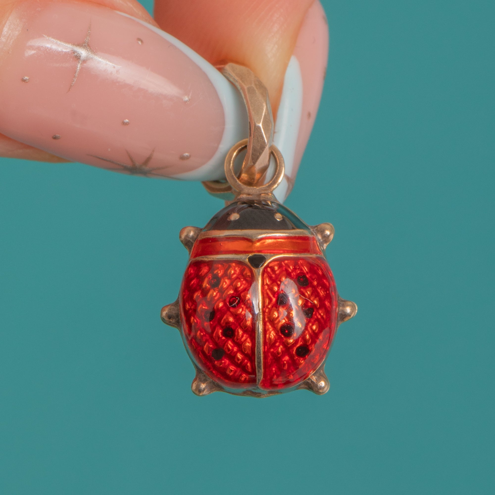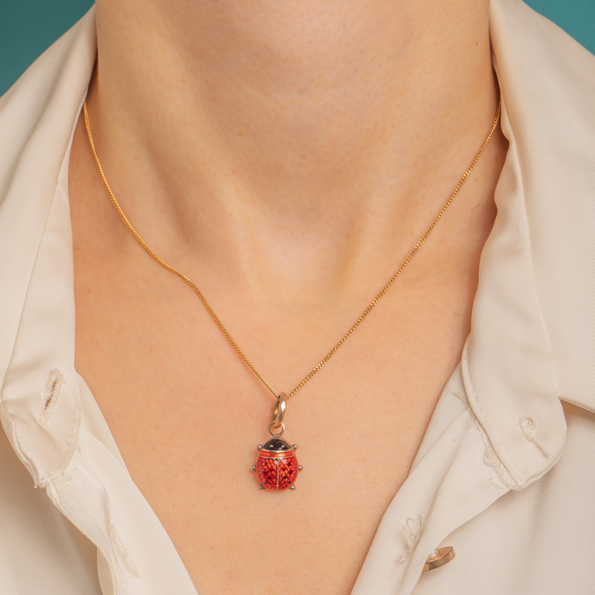 Compact and beautifully made, the three-dimensional body sits from a faceted oval bail, ready to add a joyful pop of colour to your favourite chain or charm bracelet. A timeless token of luck and love, it’s as delightful to wear as it is to collect.