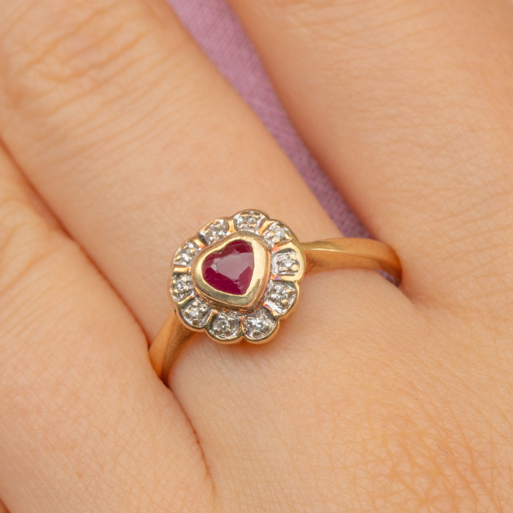 EXCELLENT. With nothing to report, we are pleased to present this 9ct Gold Ruby Diamond heart ring in excellent condition!
