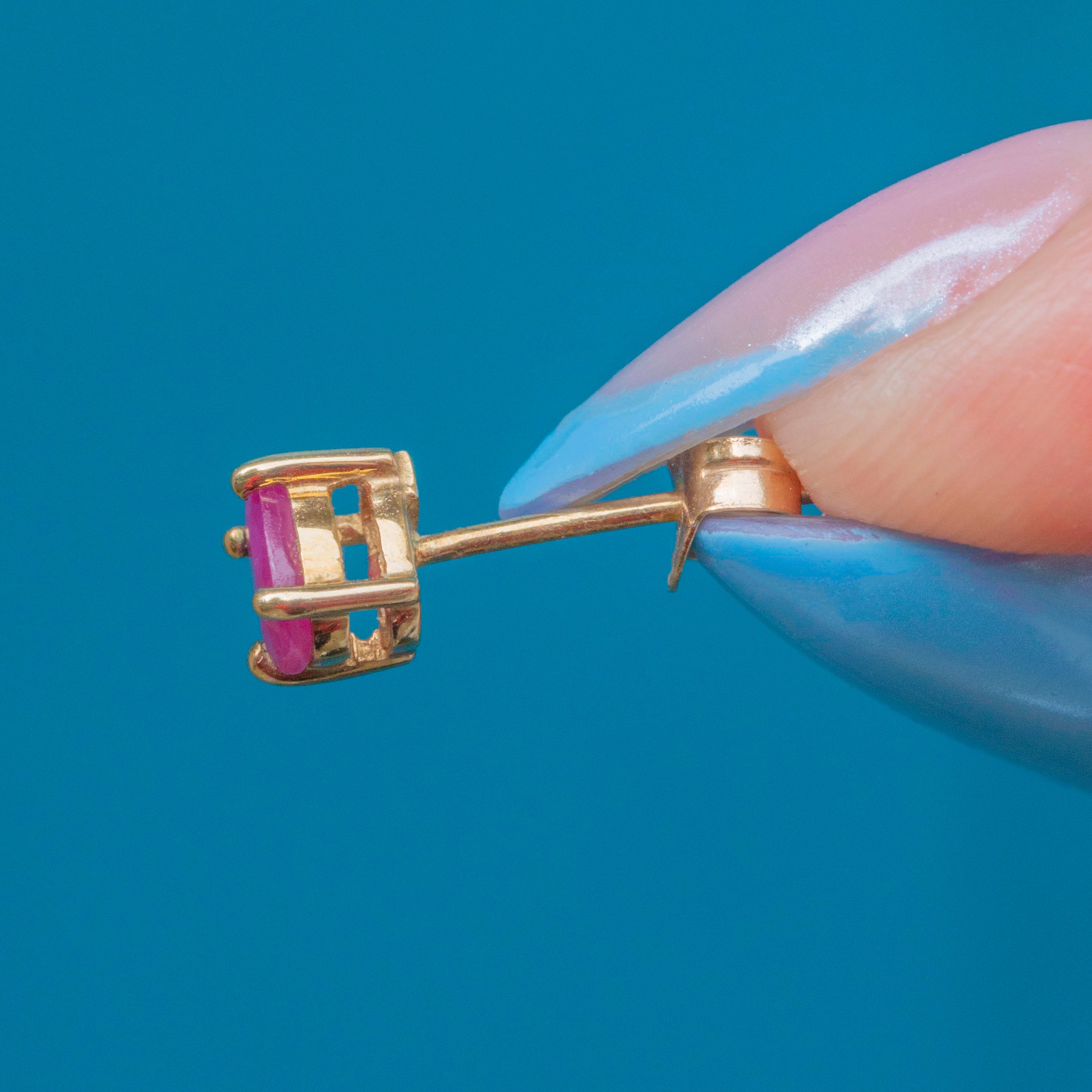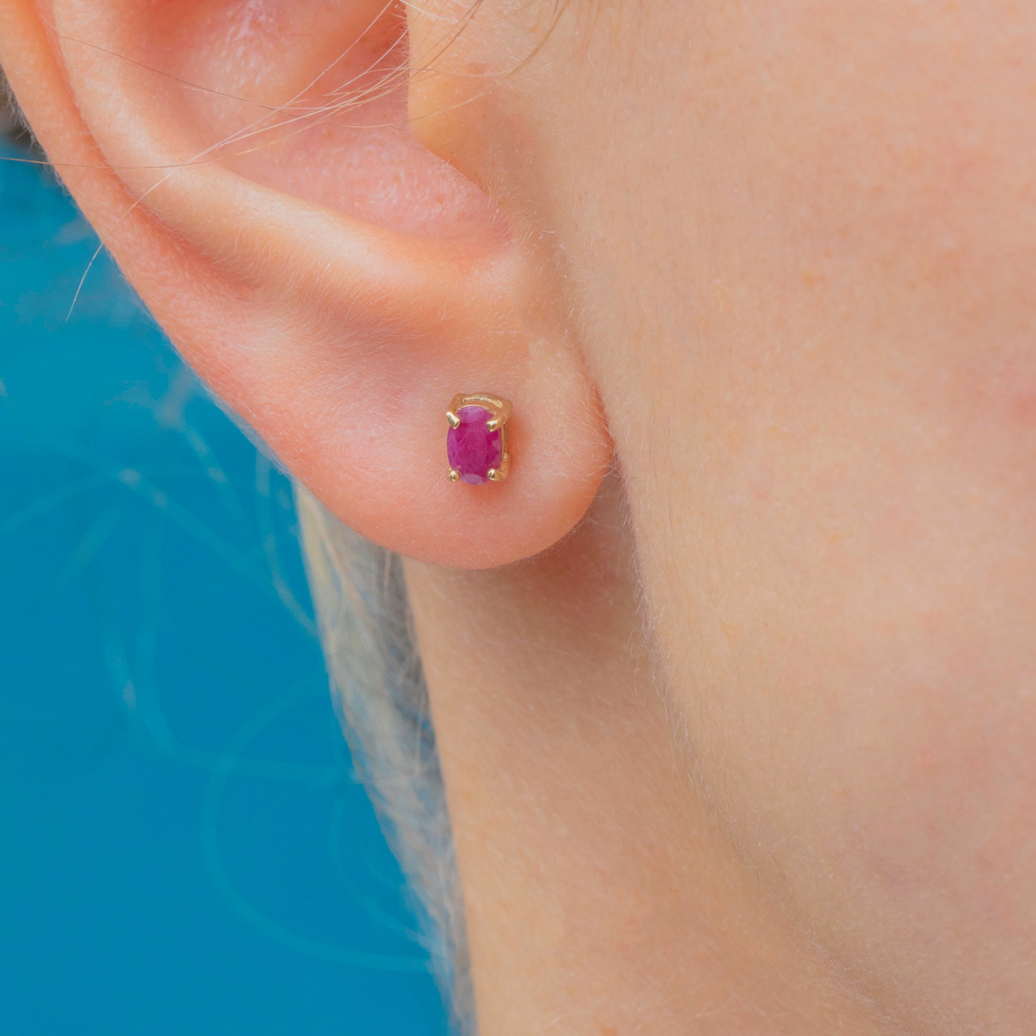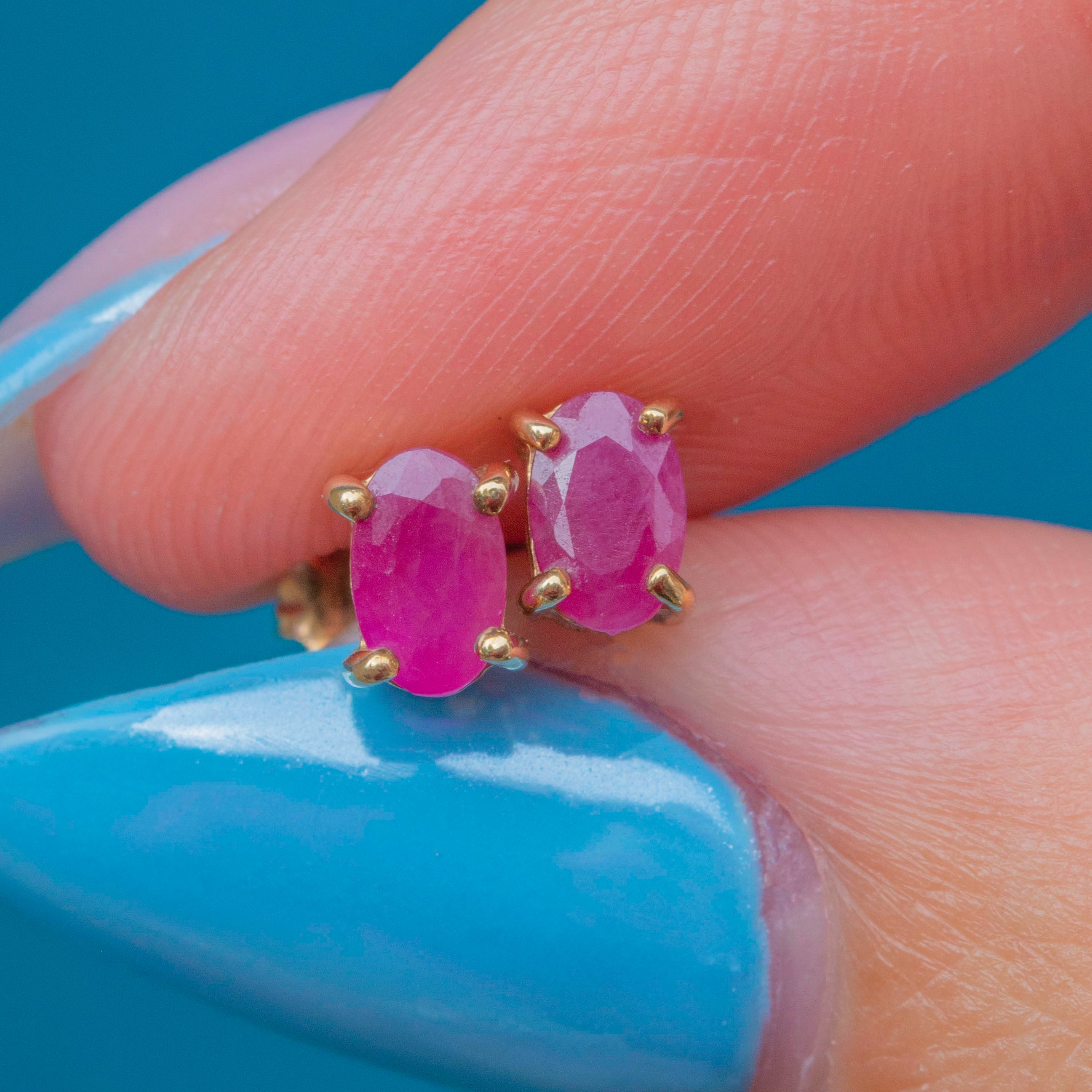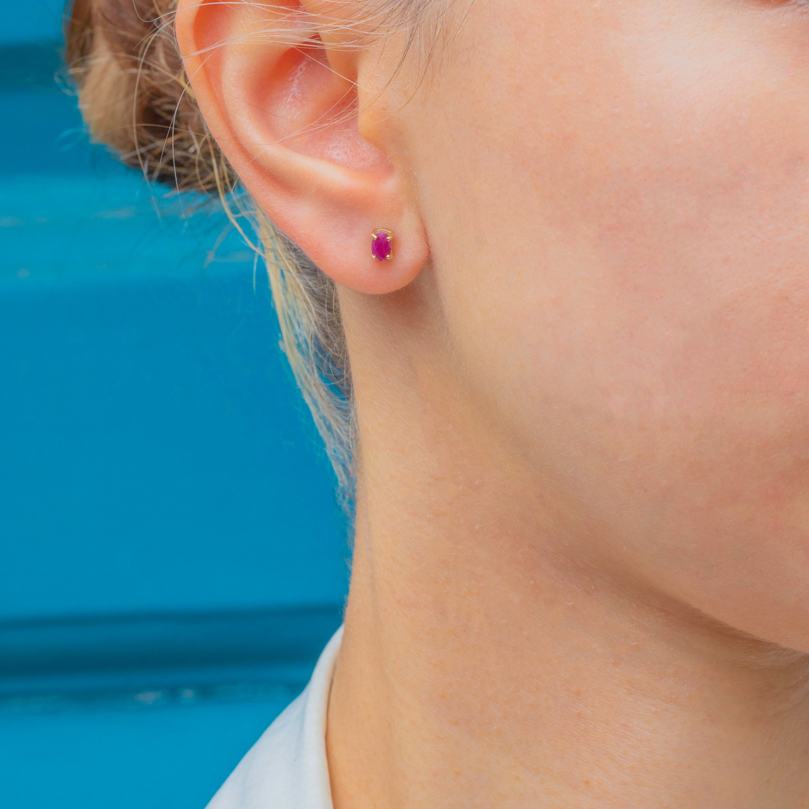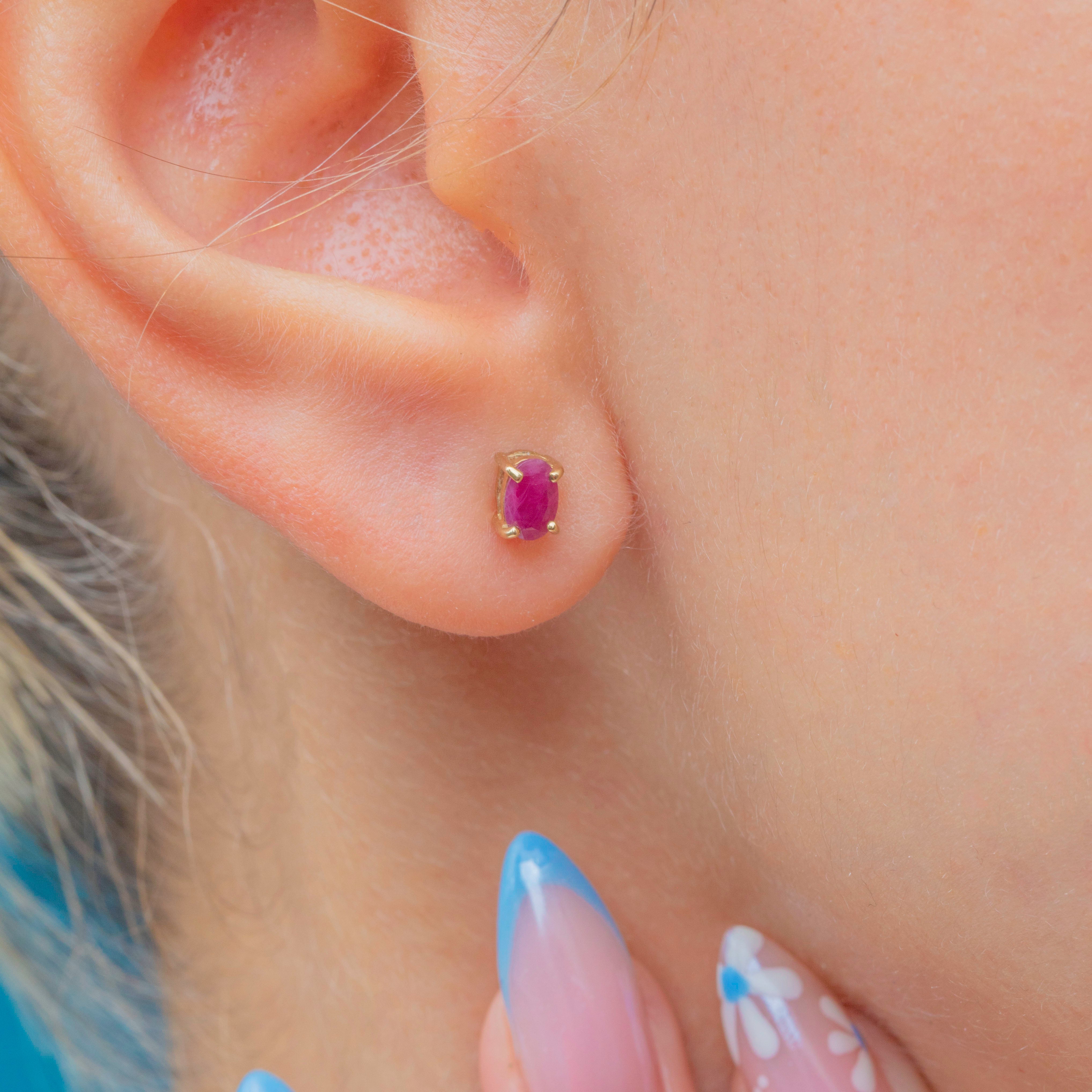 These vintage stud earrings each display a petite oval Ruby, making them a gorgeous dainty pair to add a subtle pop of colour to your attire.