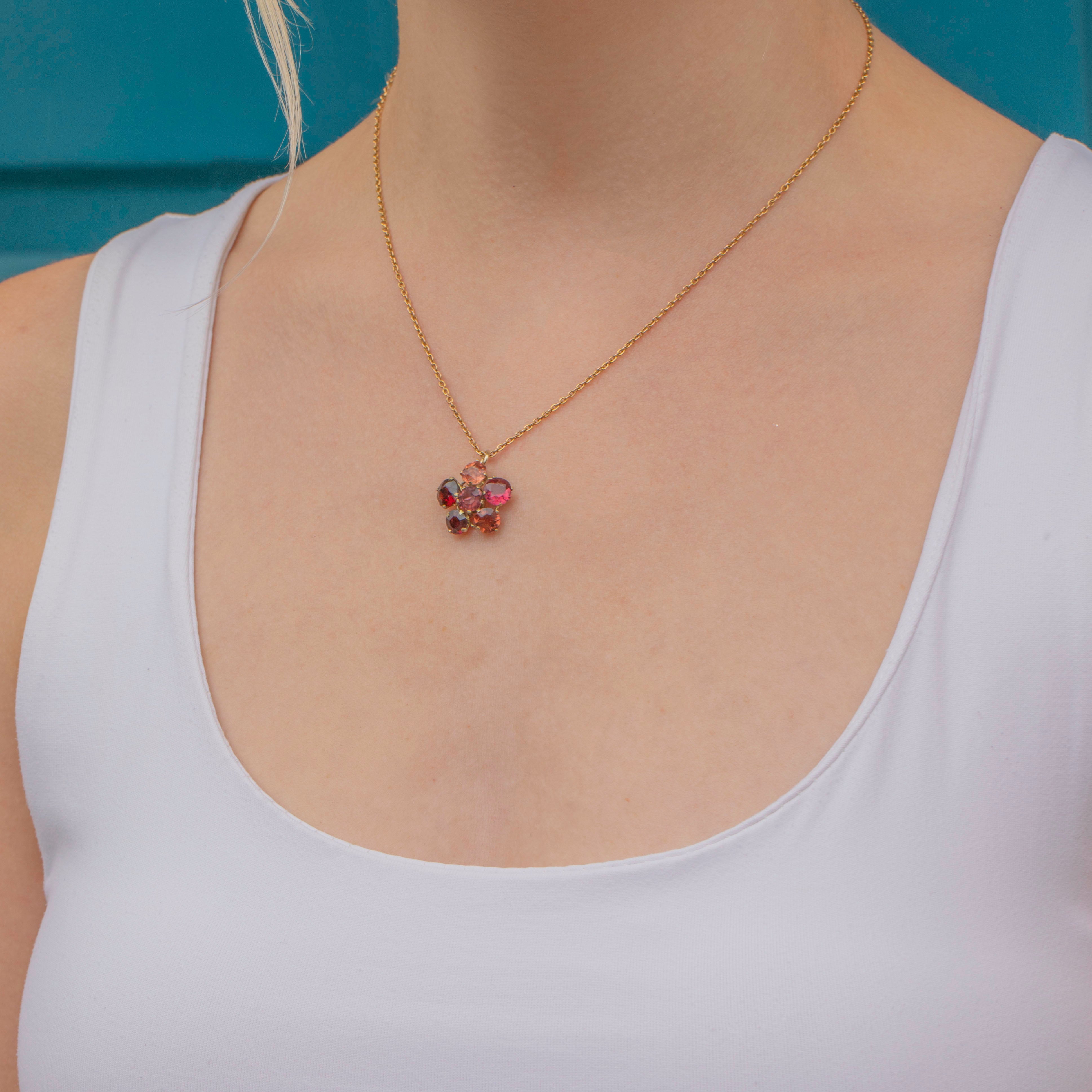 Formed of Rubies, Sapphire and Topaz, their hues varying from deep sangria red to hot fuschia pink mean they exude femininity from every angle. And with each stone fabulously faceted, just wait to see how this Gold Sapphire Ruby pendant thrives beneath the light!
