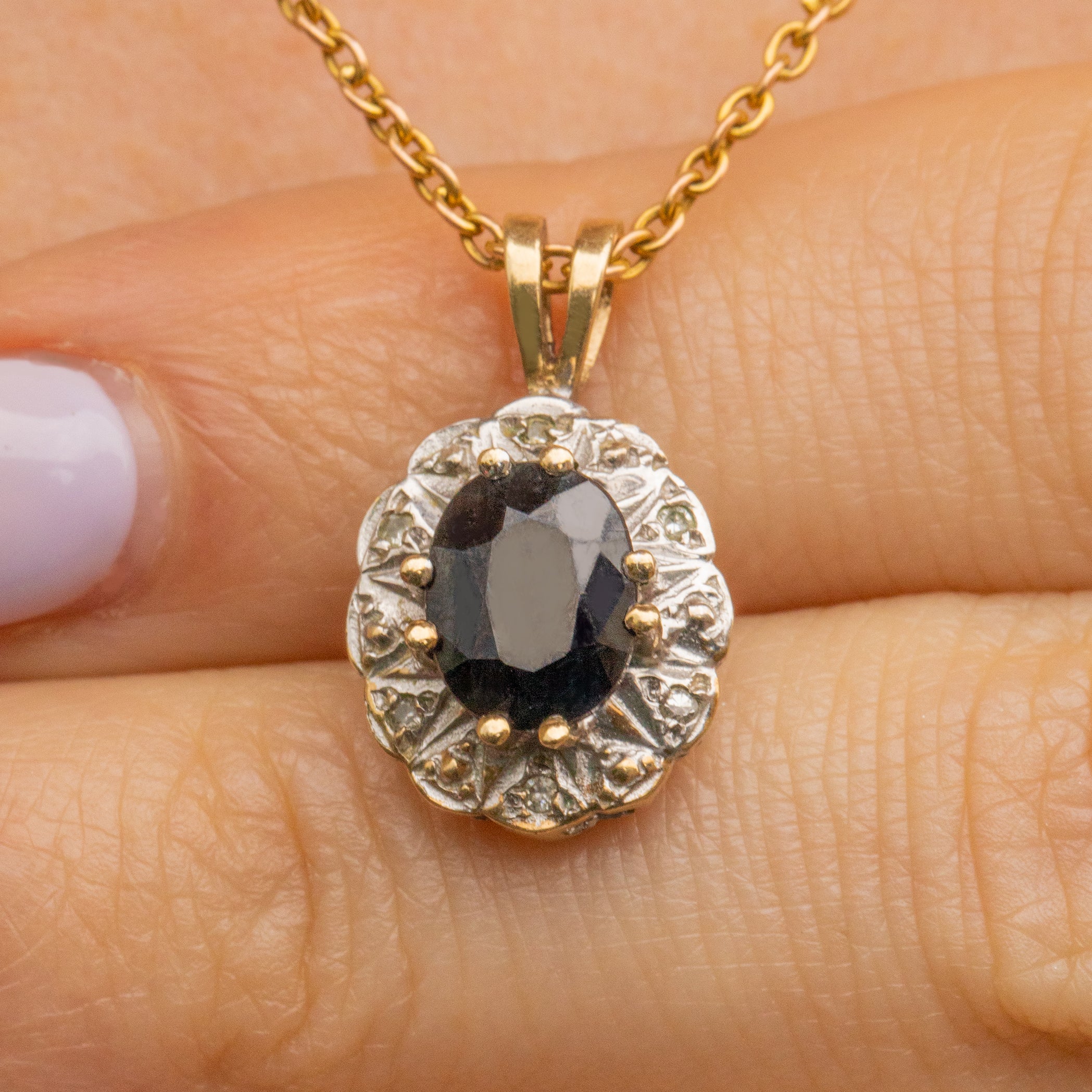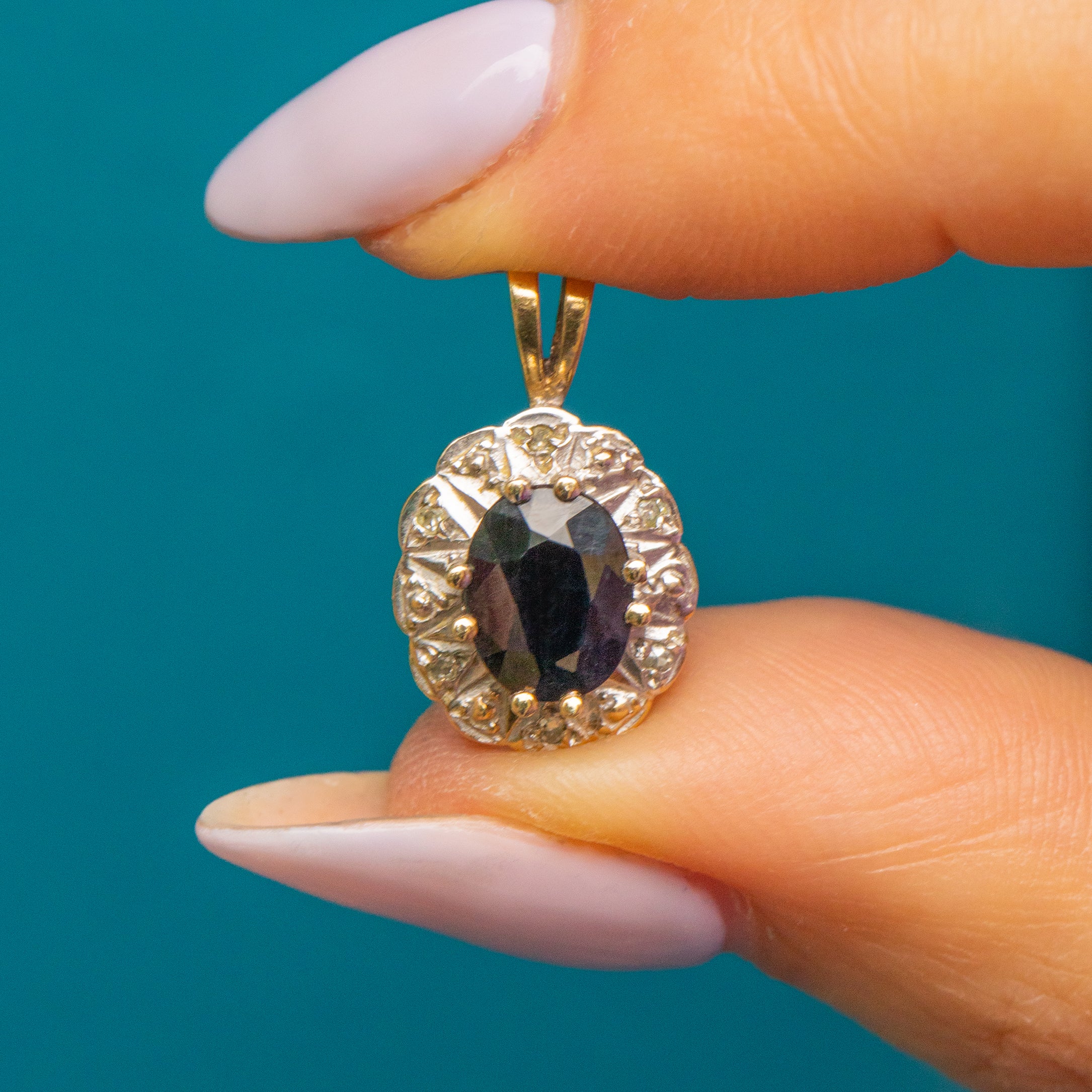 9ct Gold Sapphire & Diamond Cluster Pendant, 0.80ct Sapphire