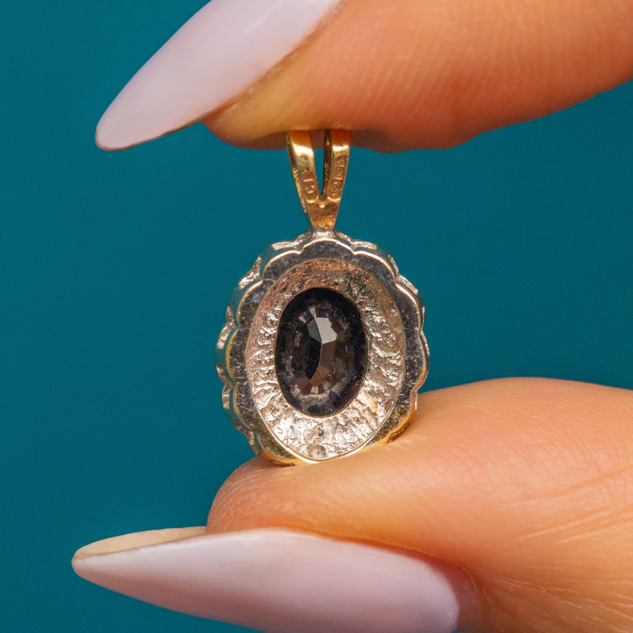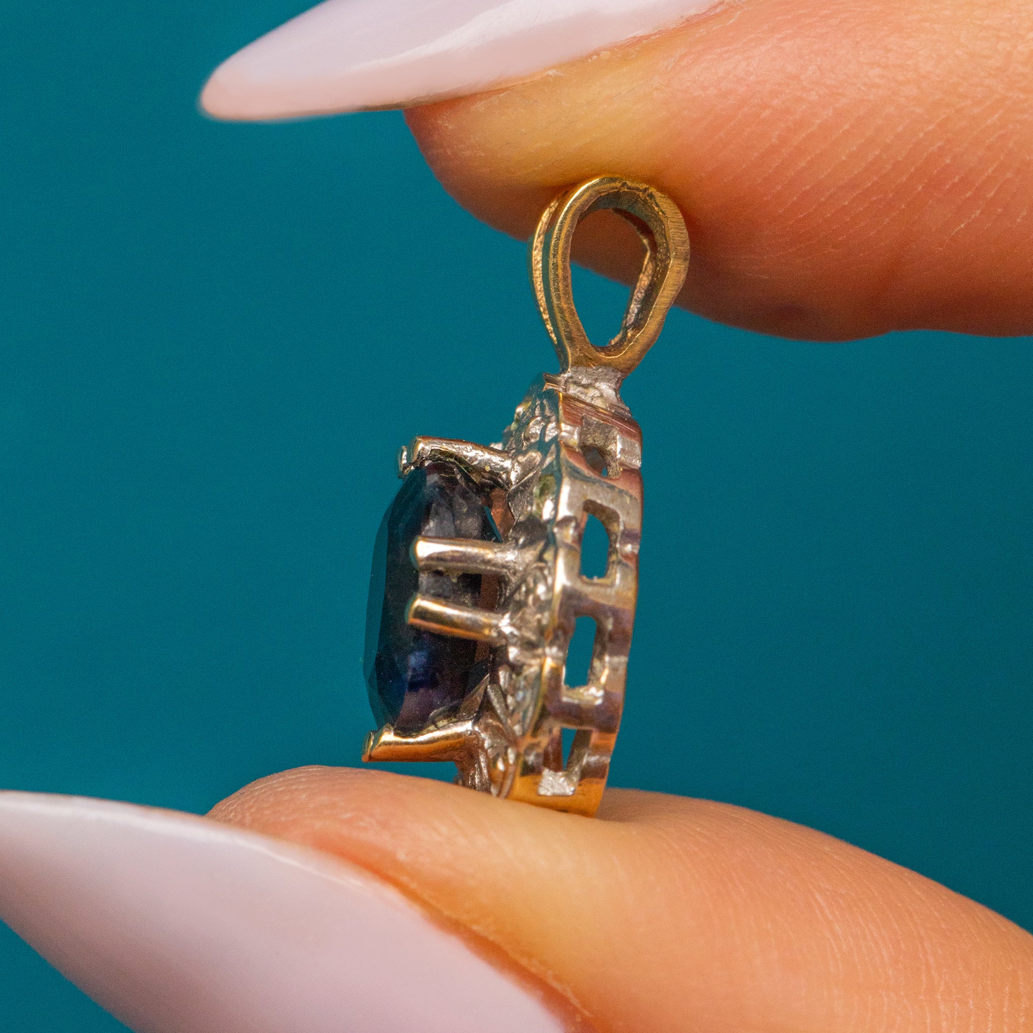 EXCELLENT. We are pleased to present this 9ct Gold Sapphire Diamond cluster charm in mint condition! The Sapphire and surrounding Diamonds are secure within their settings, with no damage to note. Both the white and yellow Gold have retained great form and the bale is securely soldered to the main body. This Vintage charm will become your new go-to piece!