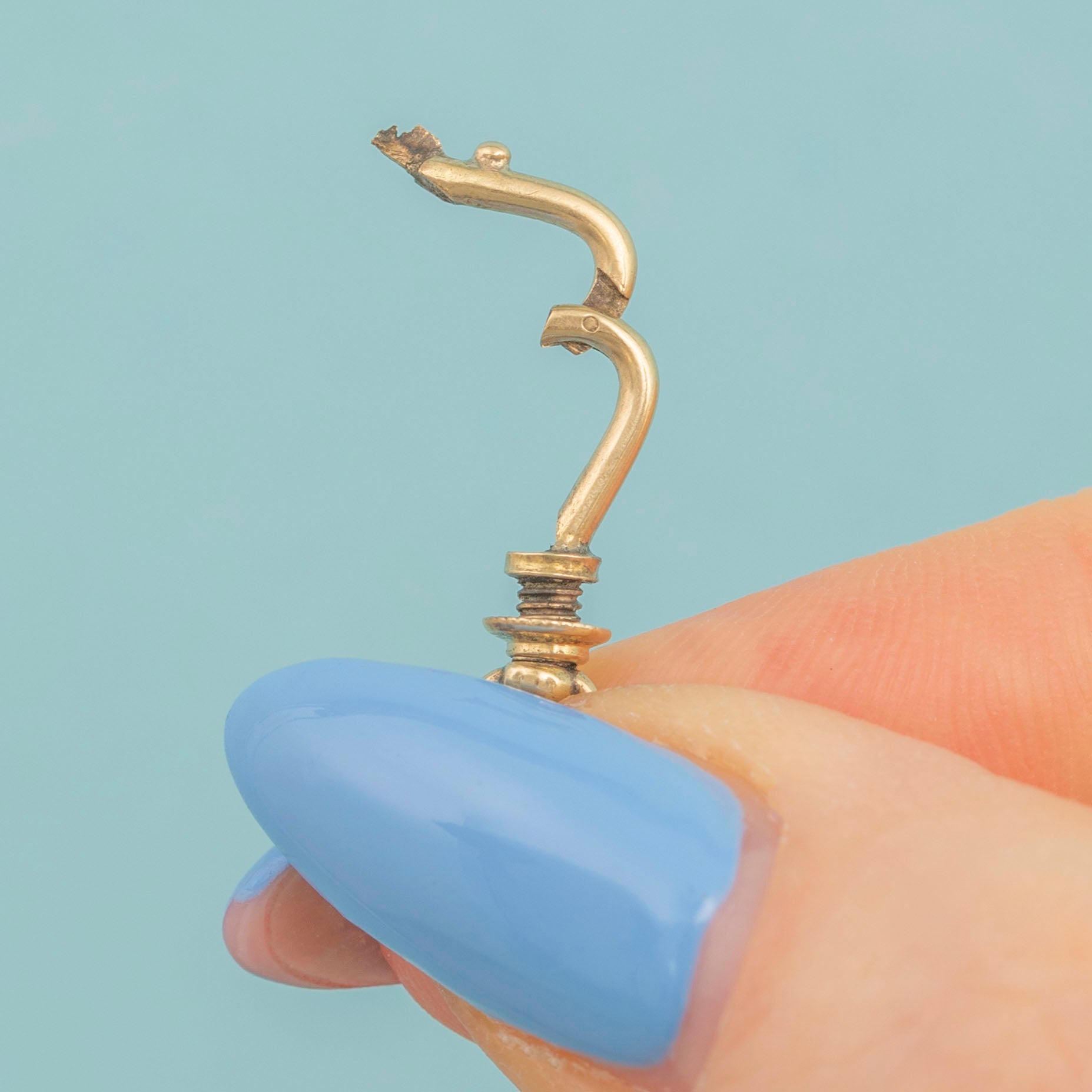 This charming Victorian 9ct Gold screw dog-clip is truly exquisite! With a radiant golden warmth and lustrous finish, this timeless piece is an essential treasure for any antique jewellery collection.
