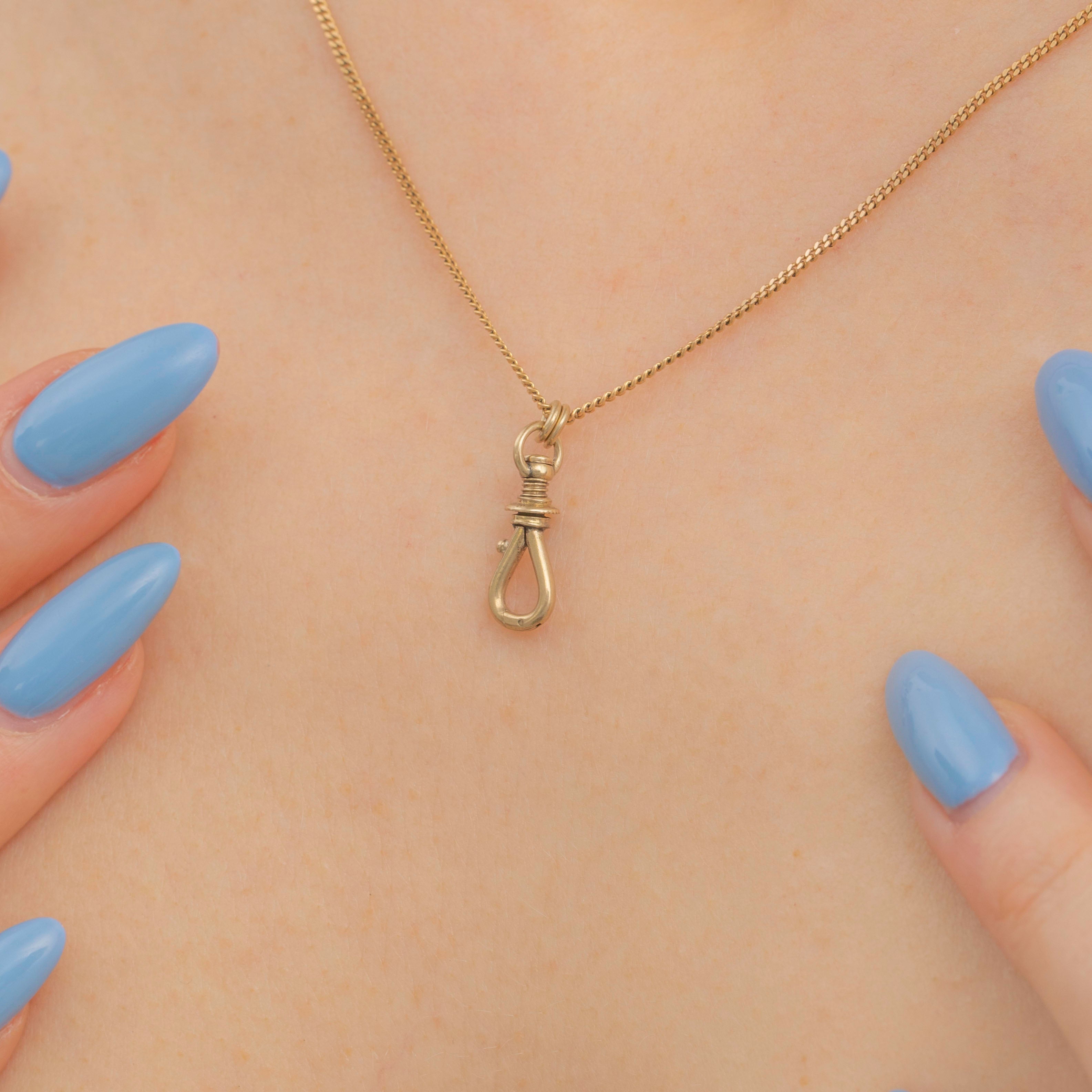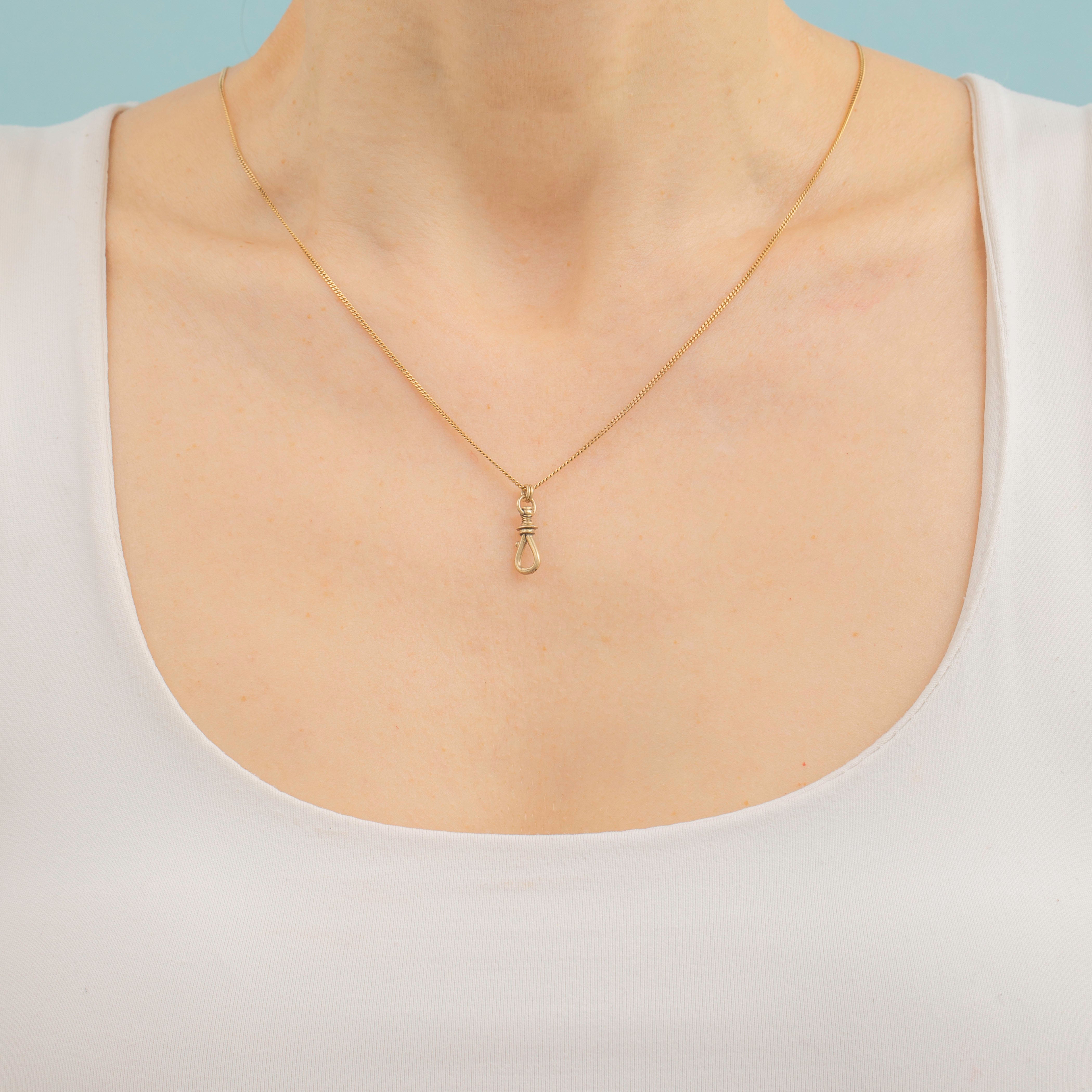 EXCELLENT. This 9ct Gold screw dog-clip is in excellent condition! Her Gold boasts a rich hue with subtle warm undertones. The screw mechanism secures the clasp firmly in place, ensuring a sturdy and reliable closure. This robust and durable piece is built to last, promising countless years of enjoyment.