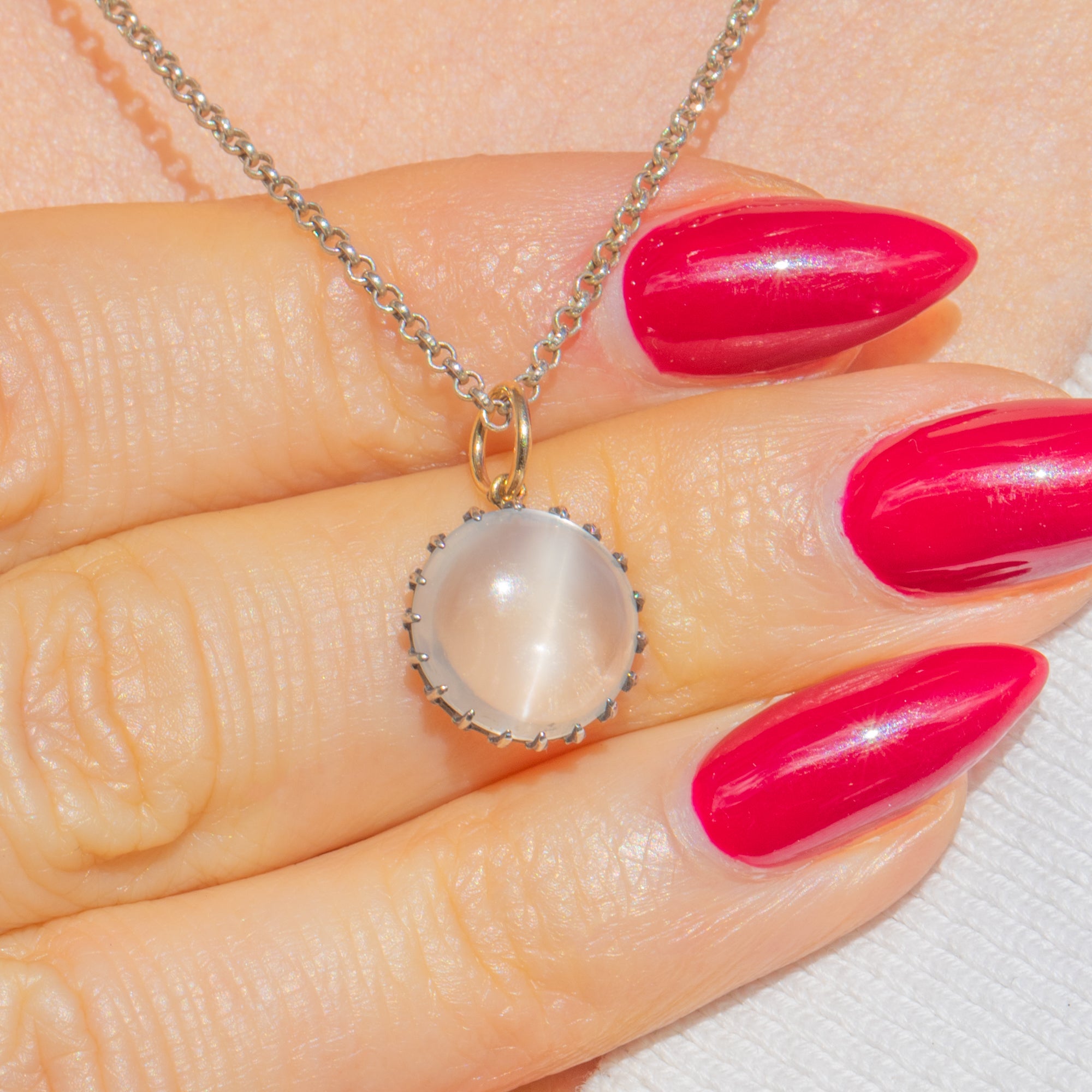 9ct Gold & Silver Cat's Eye Moonstone Cabochon Charm