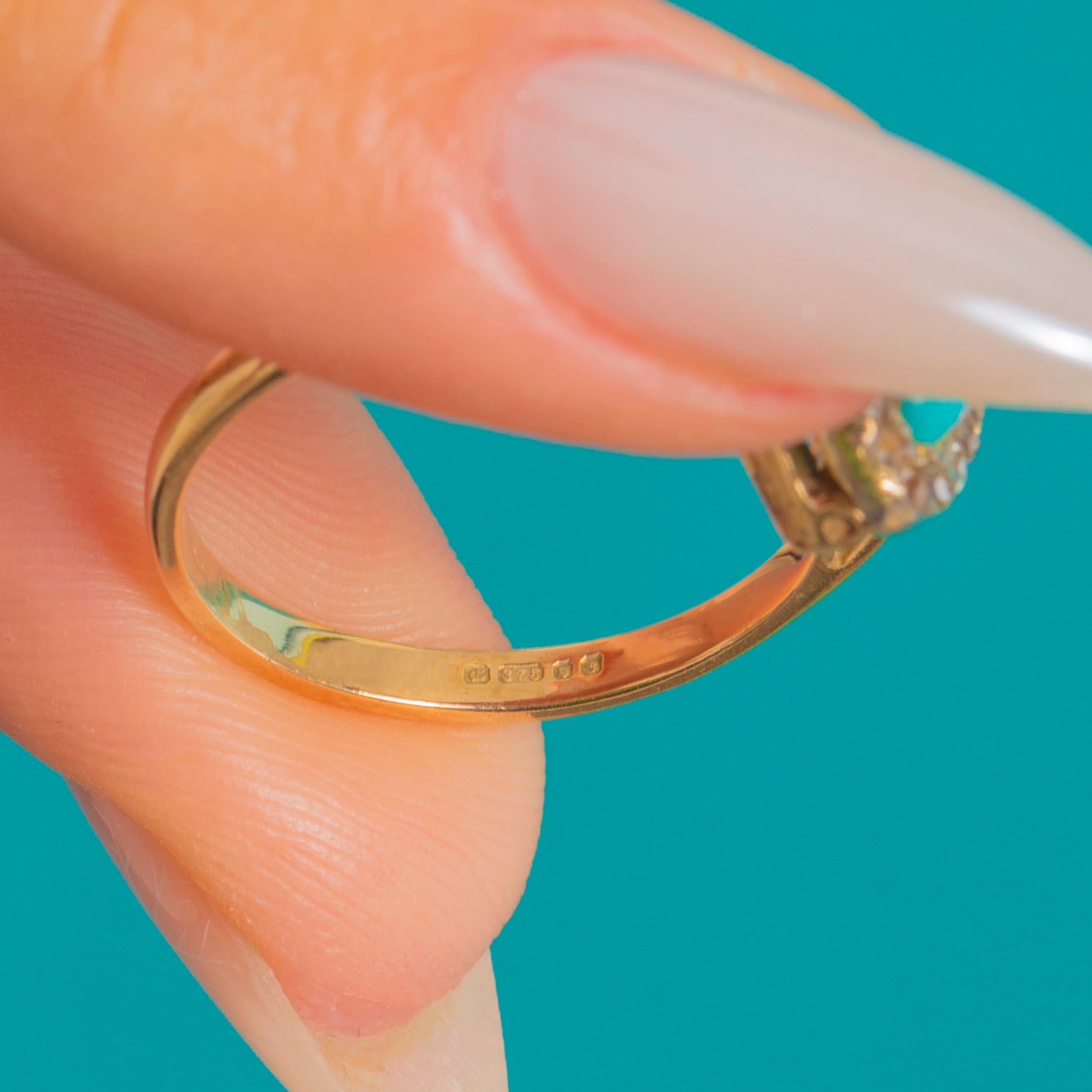 MATERIALS: Tests as 9ct Gold, Platinum settings, Turquoise, Rose Cut Diamonds.