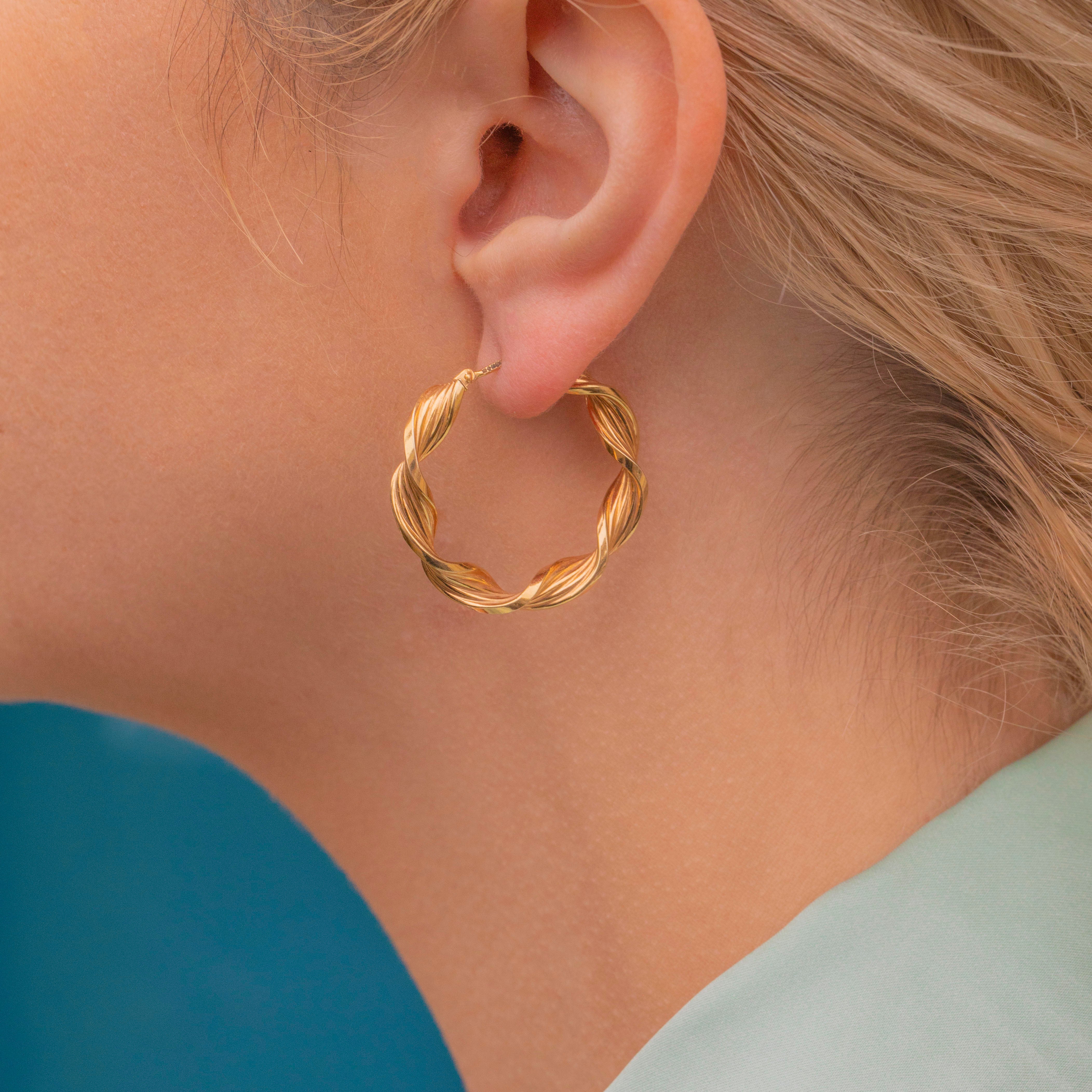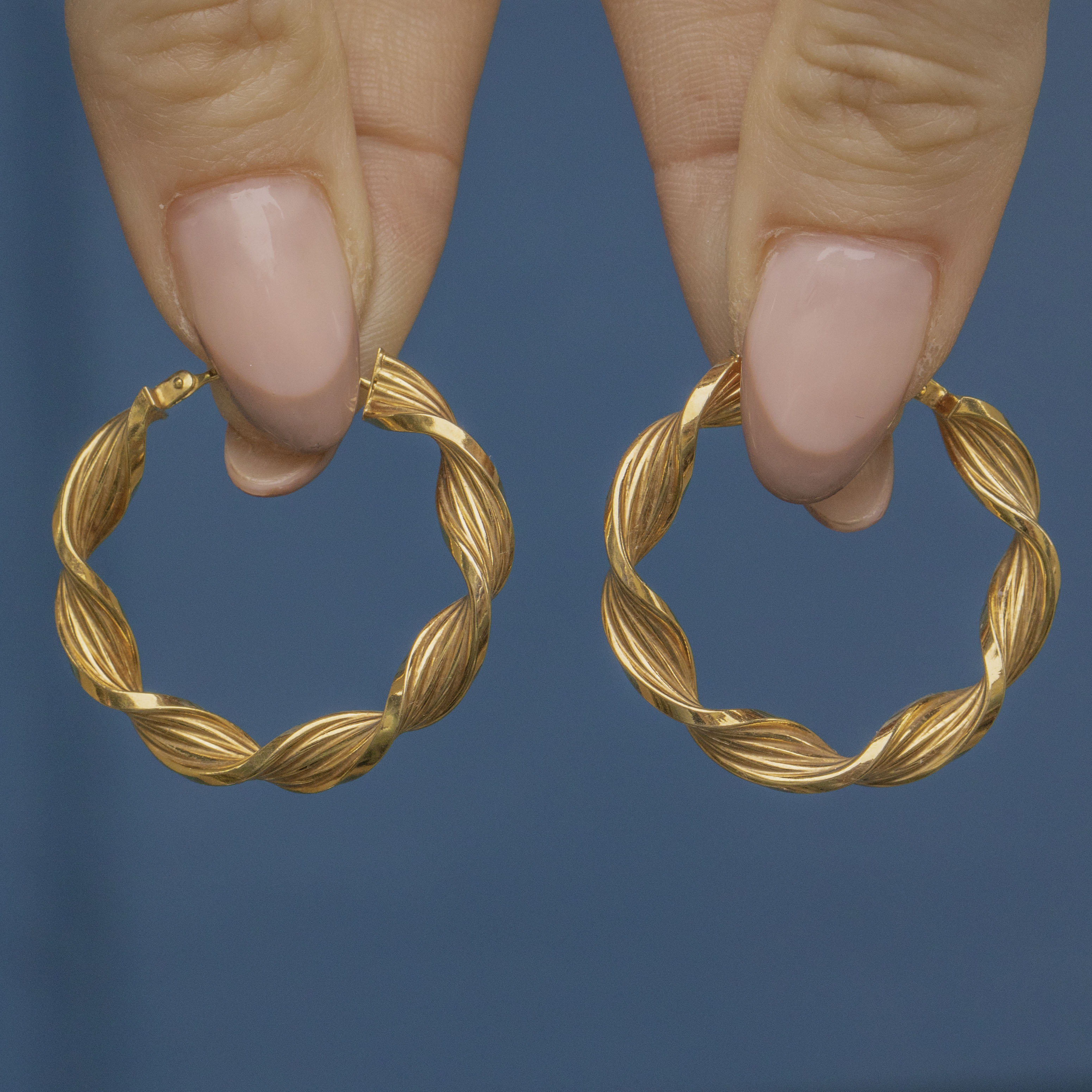 9ct Gold Twisted Hoop Earrings, 32mm Diameter