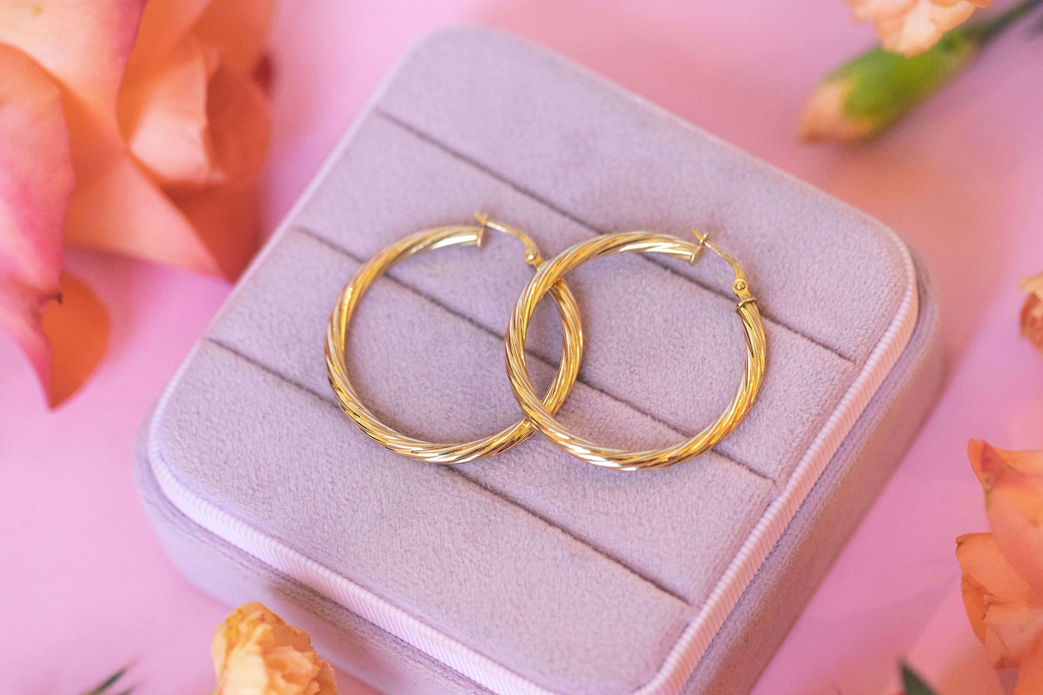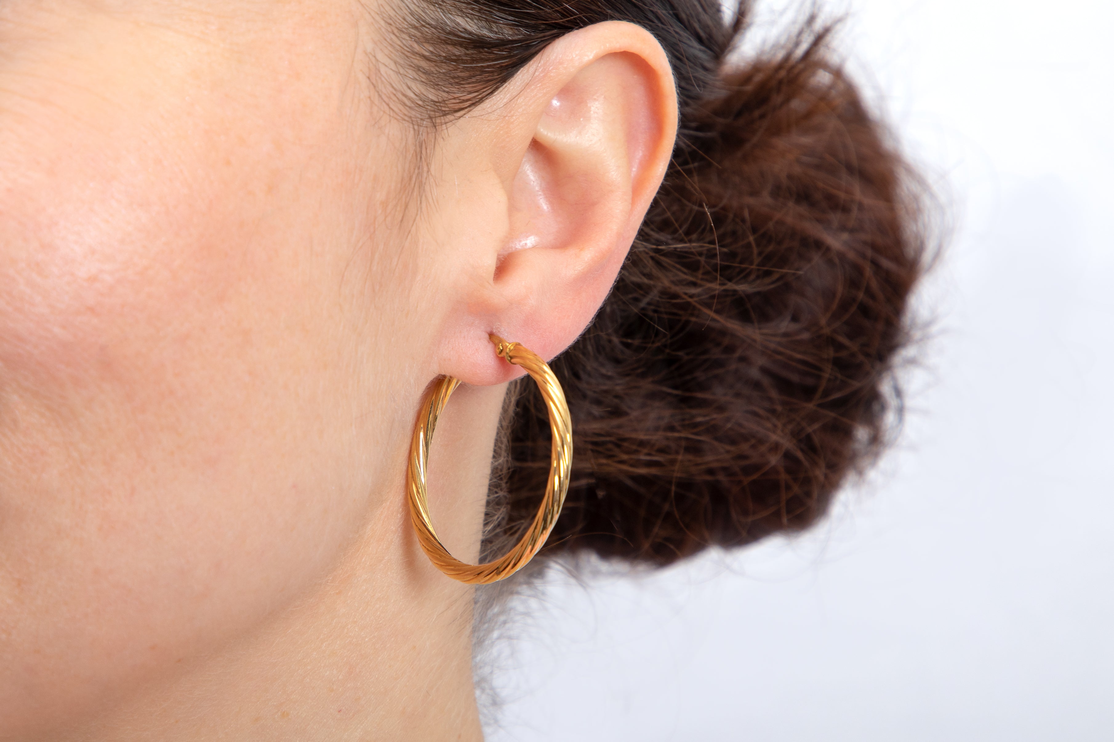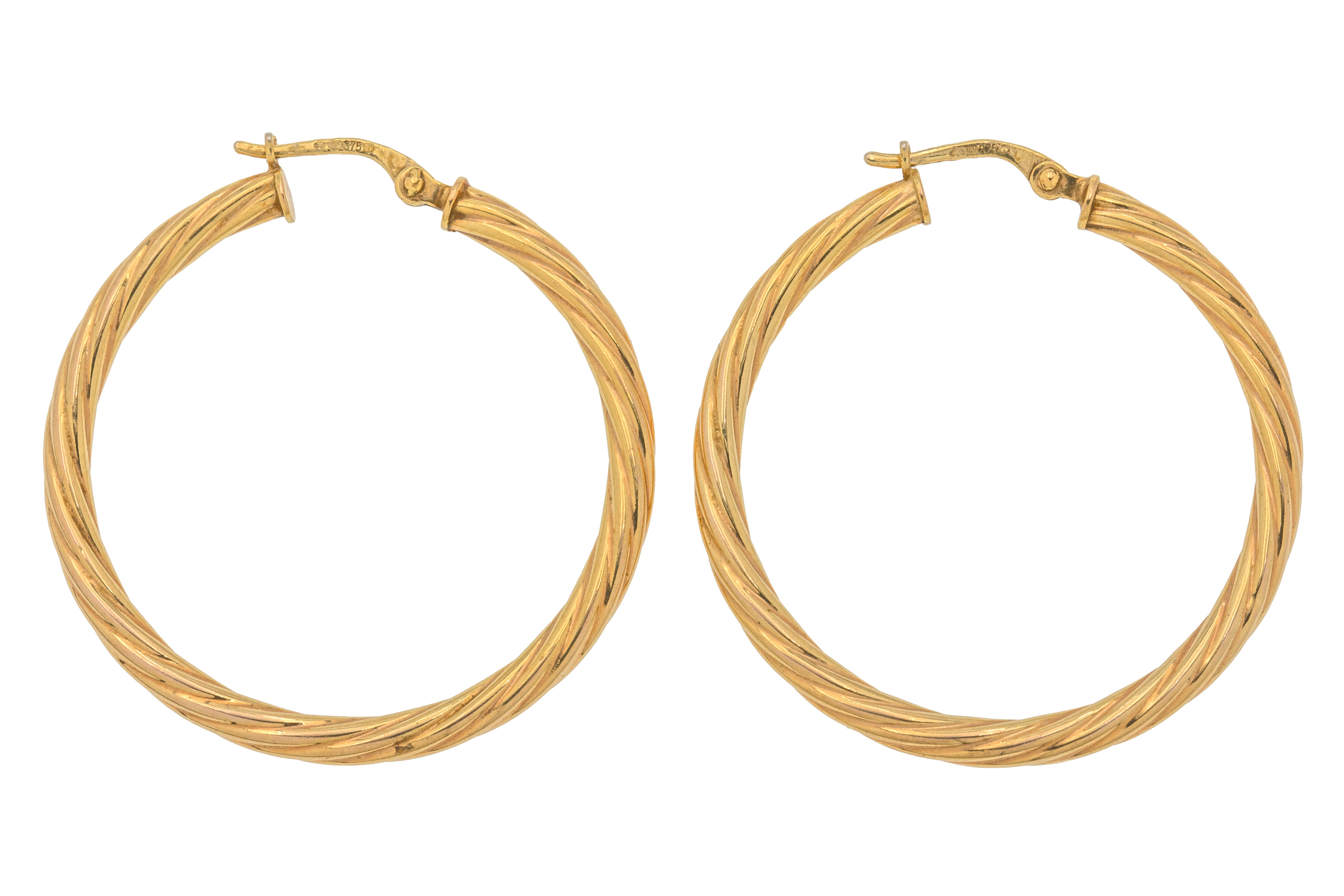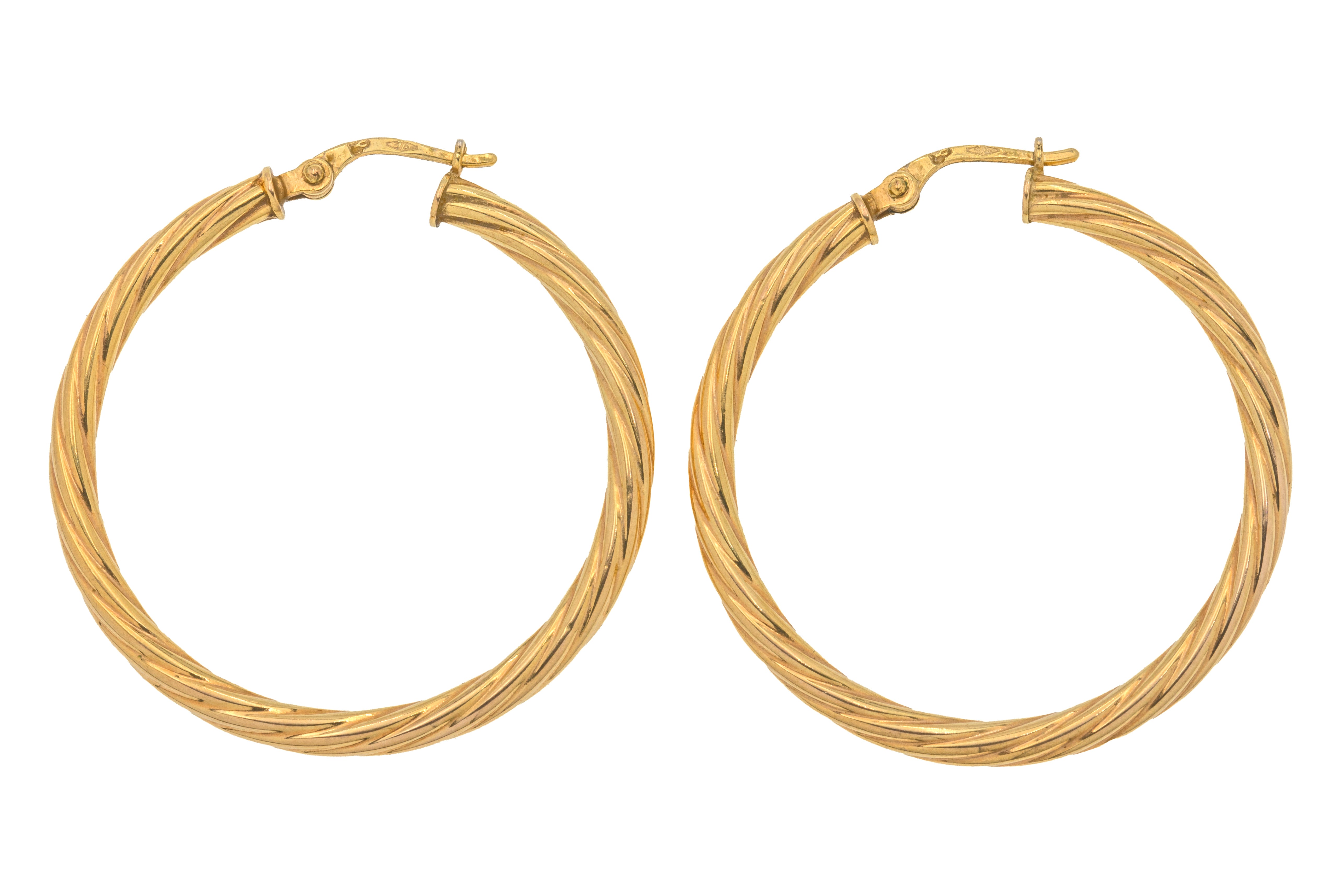 Boucles d'oreilles créoles torsadées en or 9 carats, diamètre 35 mm