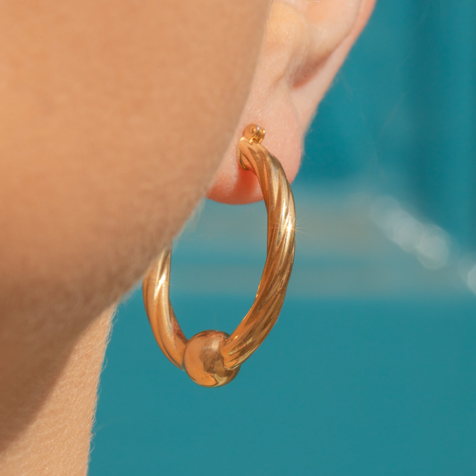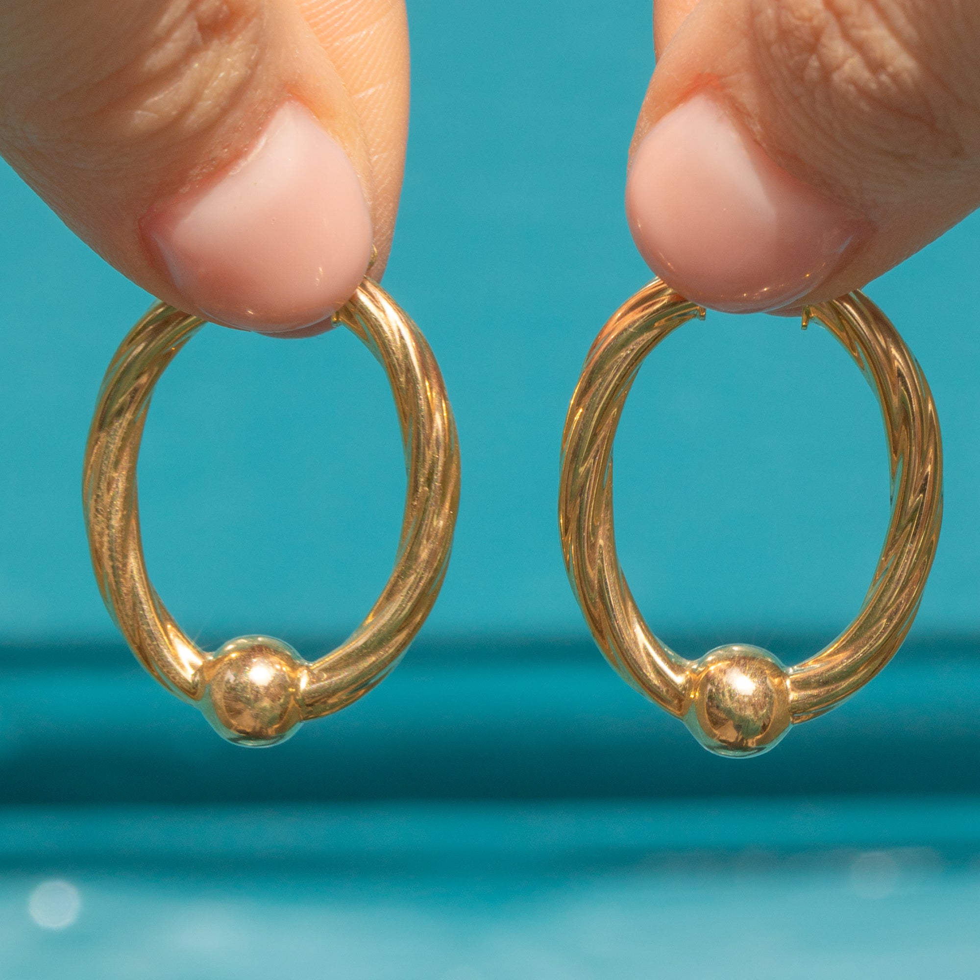 EXCELLENT. These 9ct Gold twisted hoop earrings are in excellent condition! Each of the textured Gold hoops remains crisp with no damage to note and their smooth Gold shows no signs of wear. Each ear post lever is in perfect working order and securely clicks into place. With nothing else to report, they are ready to adorn your ears straight from the box!