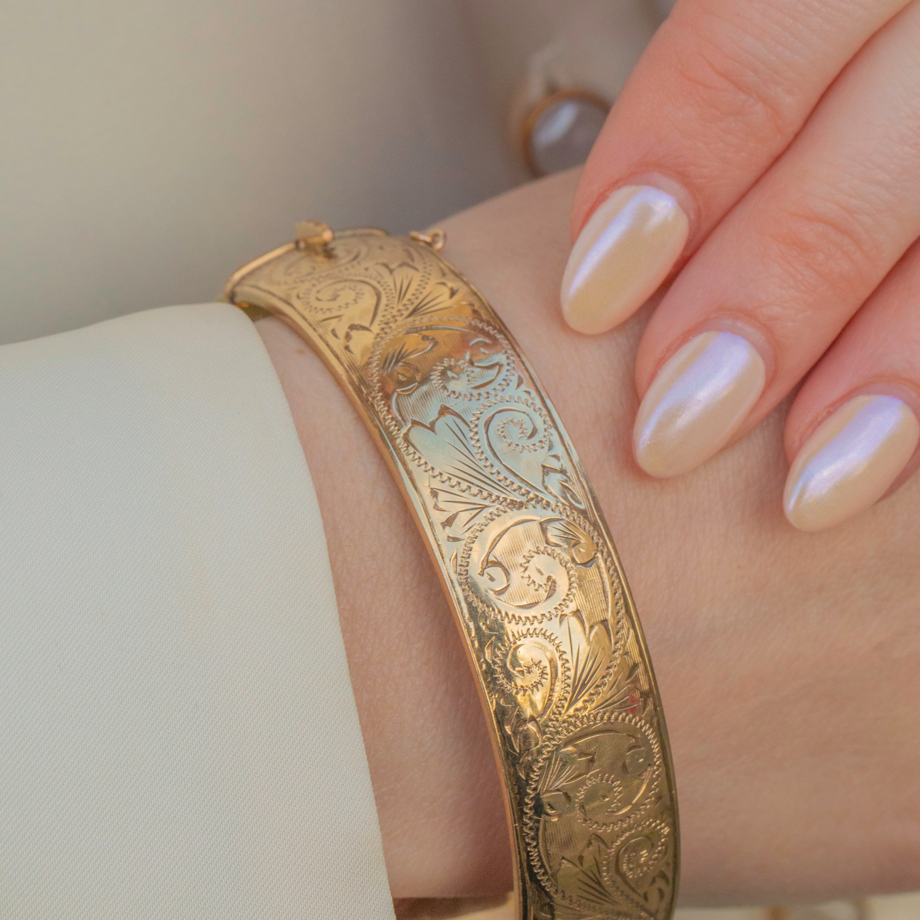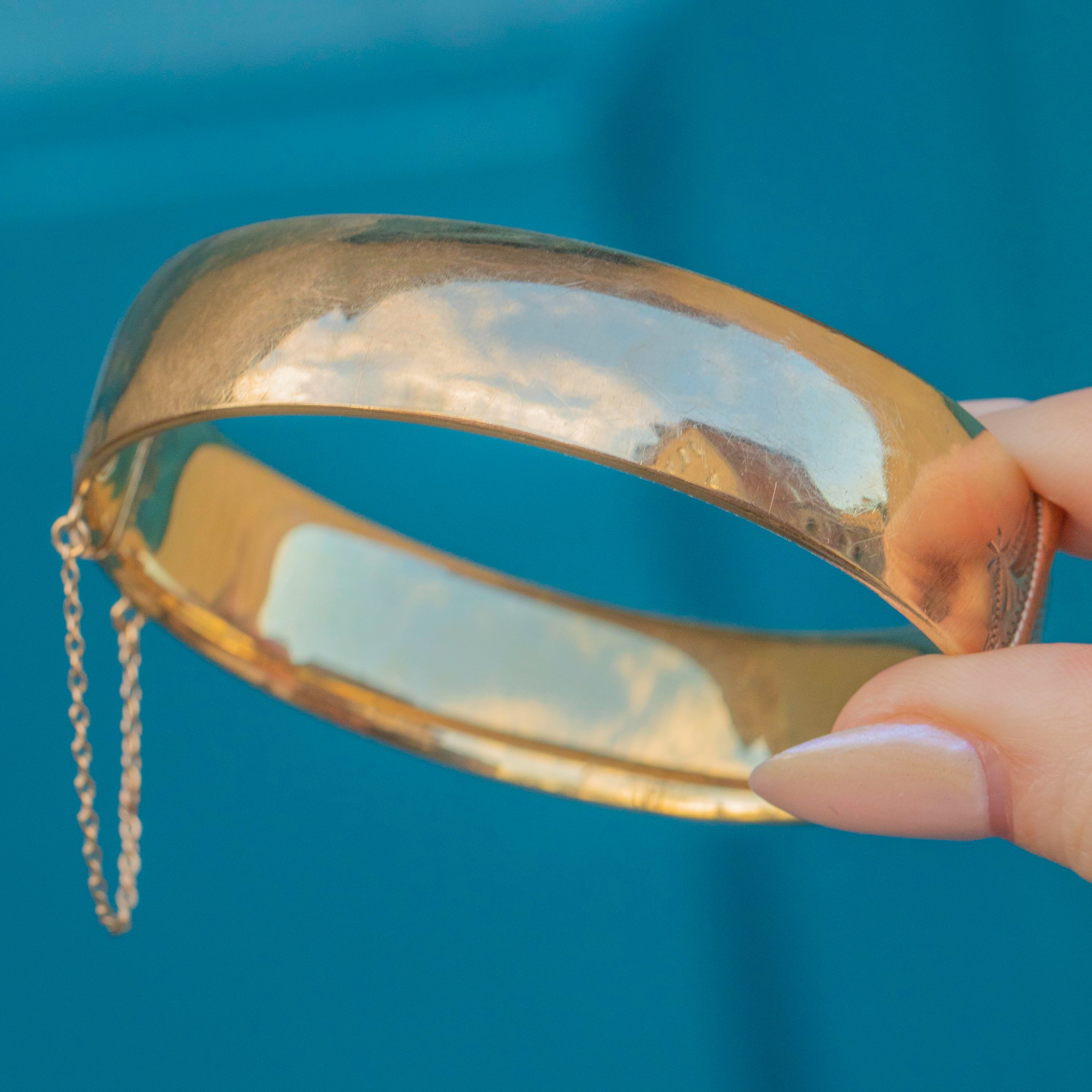 This stunning vintage 9ct rolled Gold engraved bangle will bring a divine dash of Gold to your wrist.