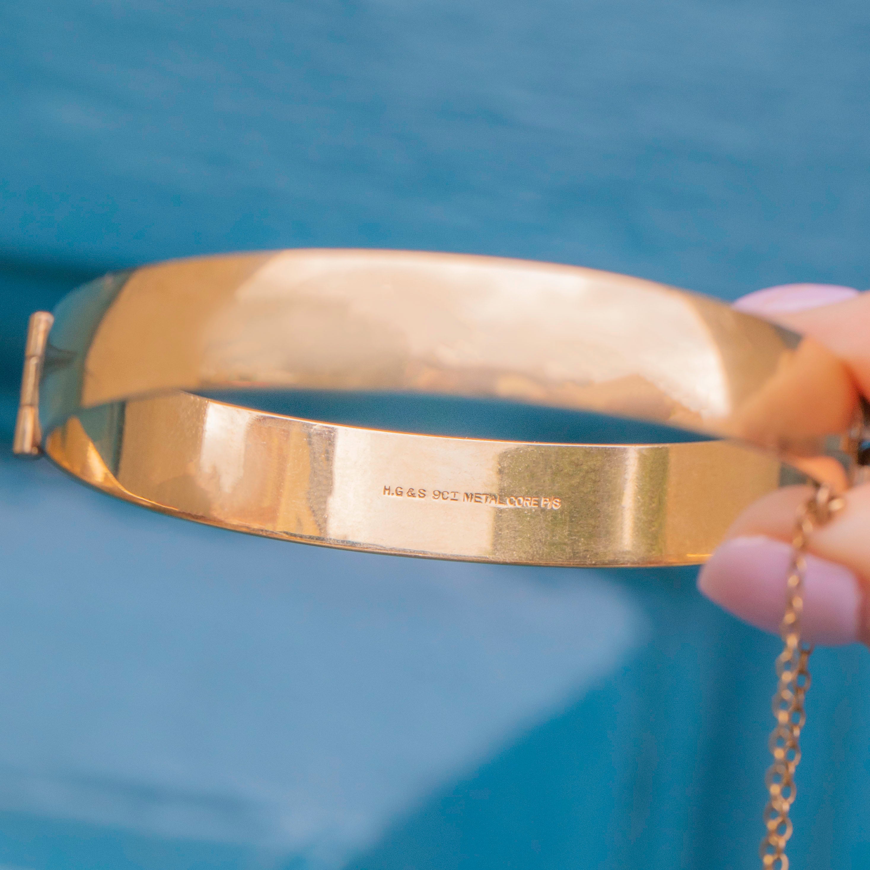 STAMPS: ' HG&S' Makers mark, '9CT METAL CORE' inside bangle.