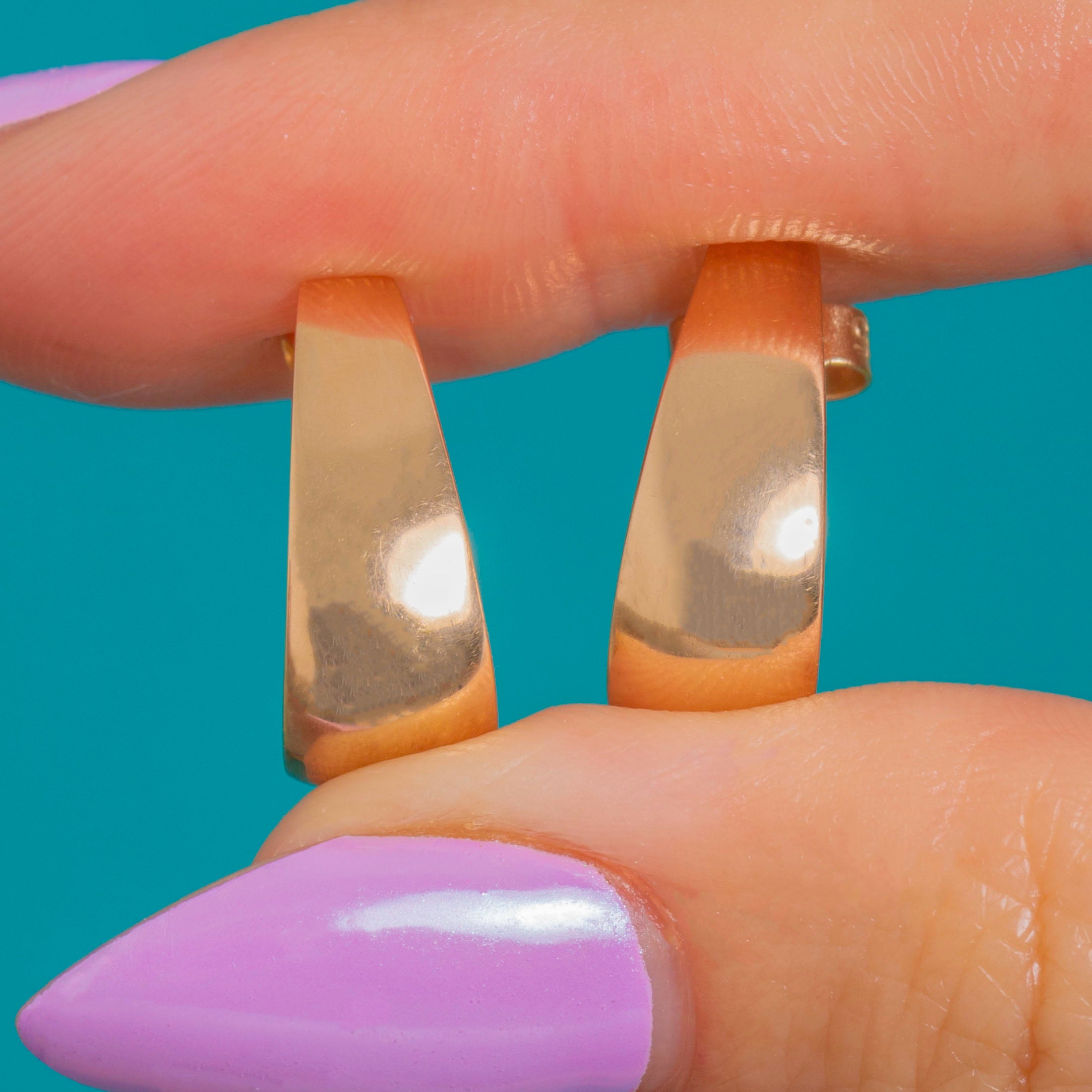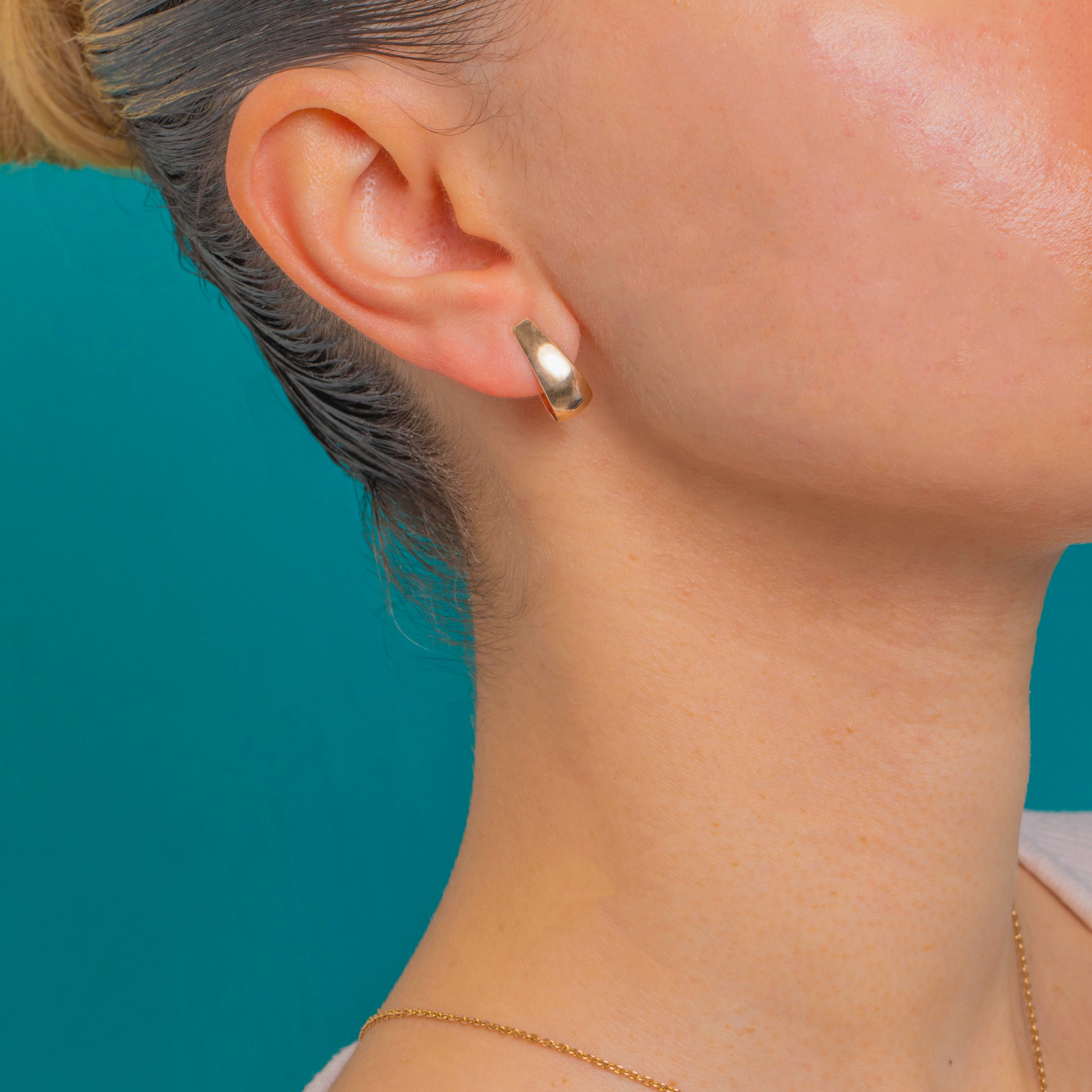 Sleek and sculptural, these 9ct Rose Gold hoop earrings deliver effortless polish in a minimalist silhouette. The flattened, tapered fronts catch the light beautifully, while the high-gloss finish lends a refined, contemporary edge that transitions seamlessly from day to night.