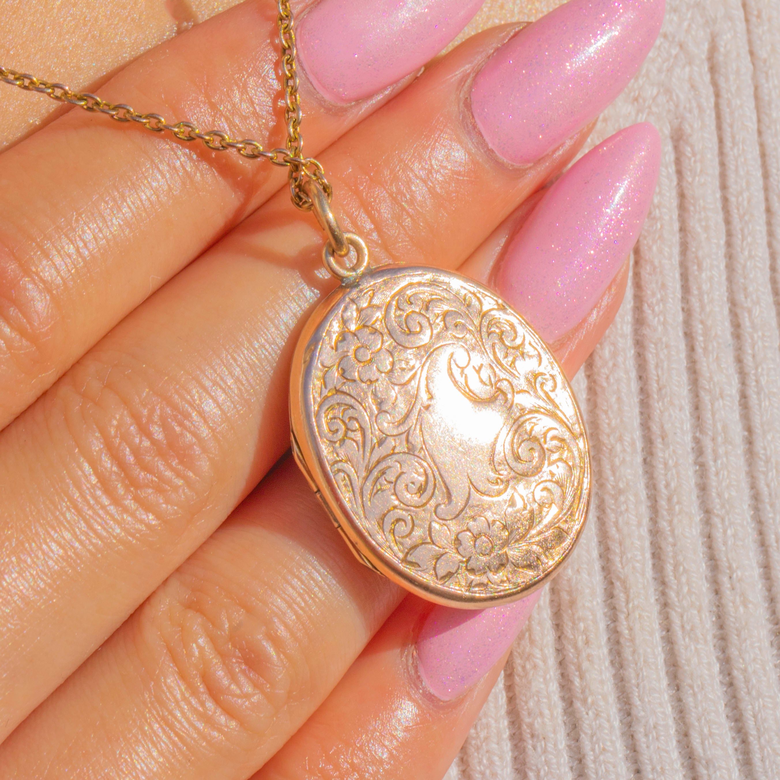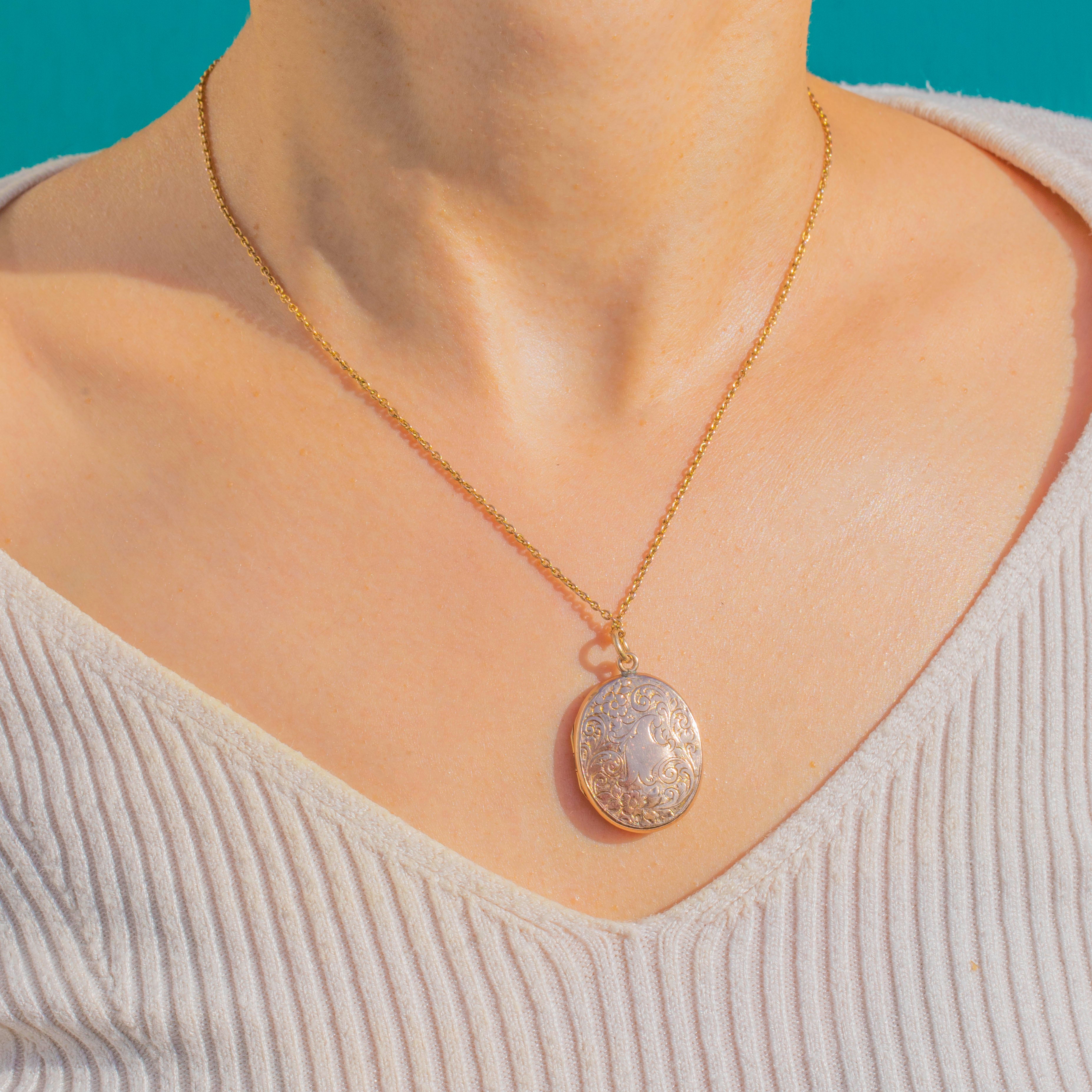 Aesthetic Antique 9ct Gold Engraved Oval Locket