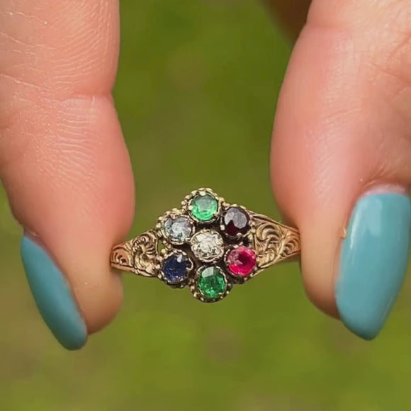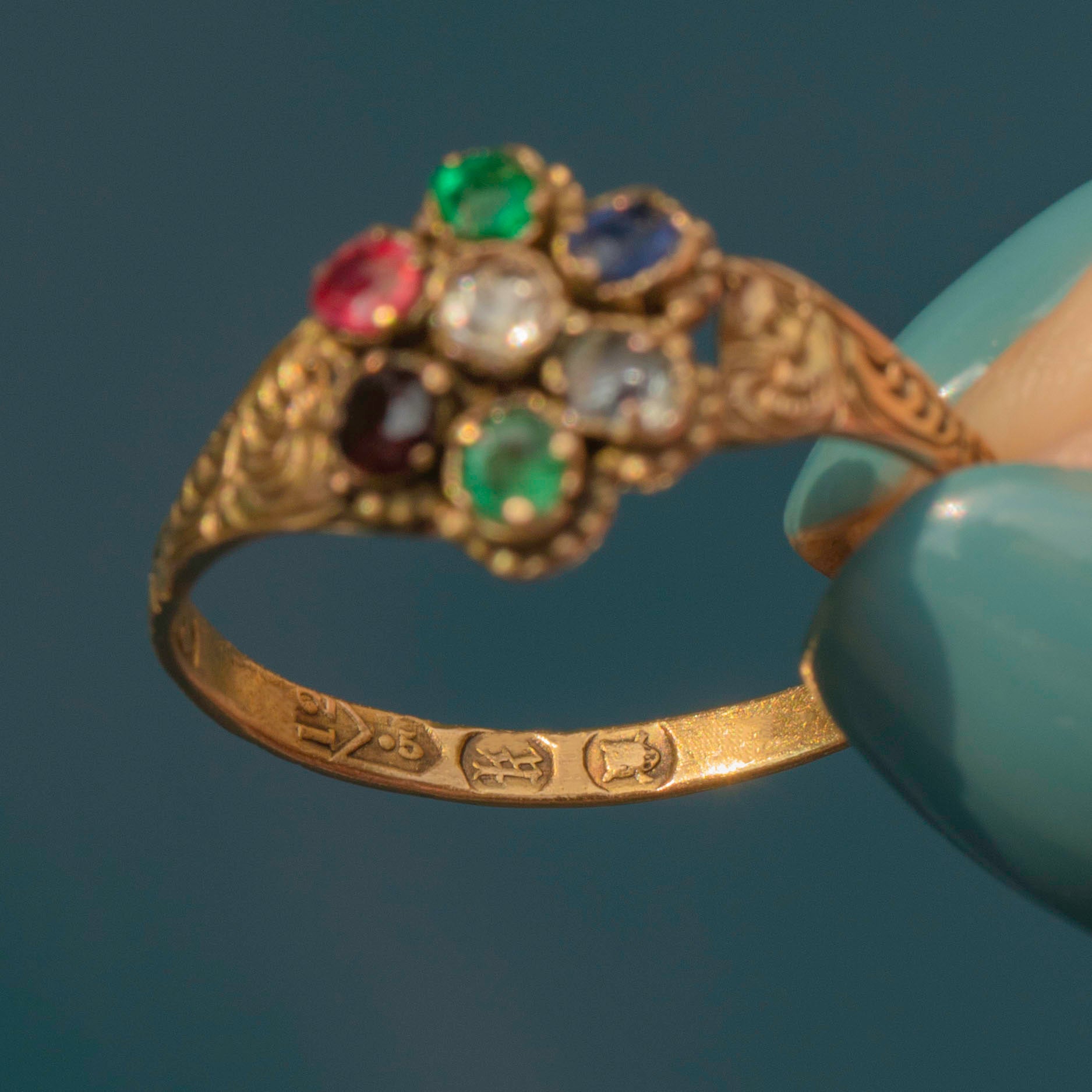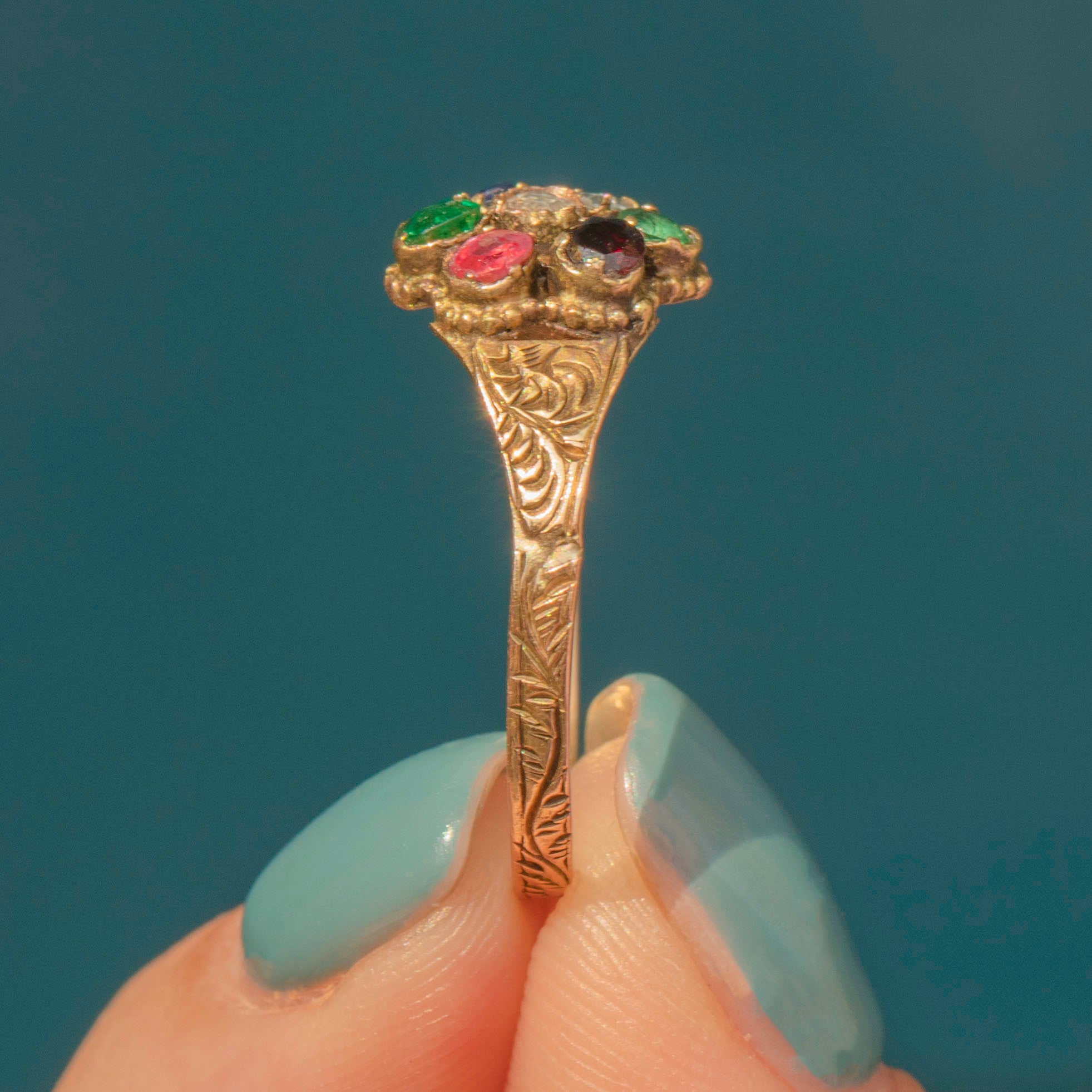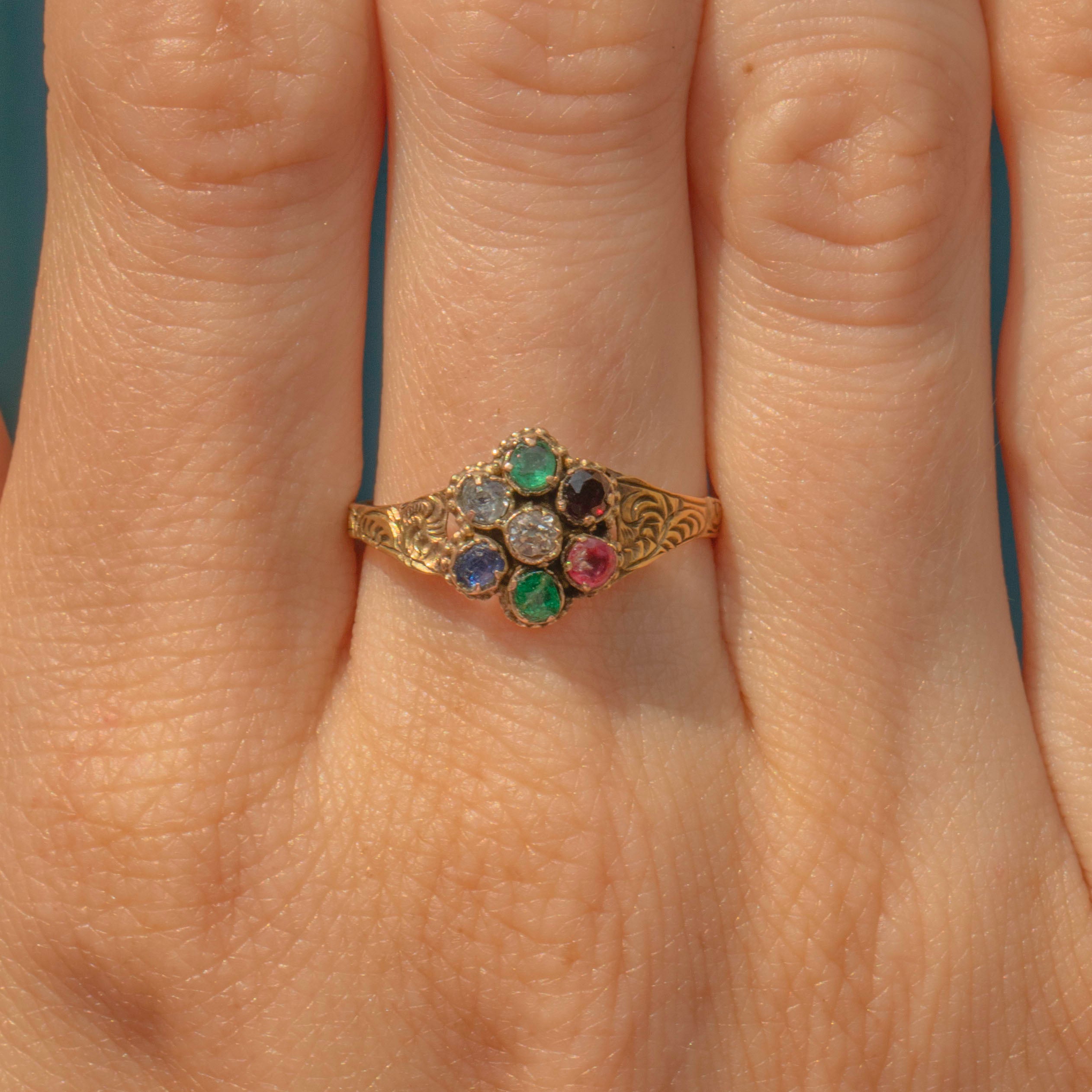 Antique 12ct Gold Dearest Acrostic Flower Ring, c.1865