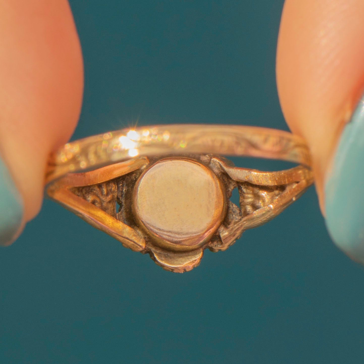 This Victorian ring has been crafted from richly saturated 12ct Gold and has a full set of English hallmarks inside the band making her a desirable piece! She also features intricate engravings around the sunshine Gold ring band, adding to her magnificence. Due to the lovely sentiment behind this antique ring, she would make an exceptional gift for someone dear to your heart!