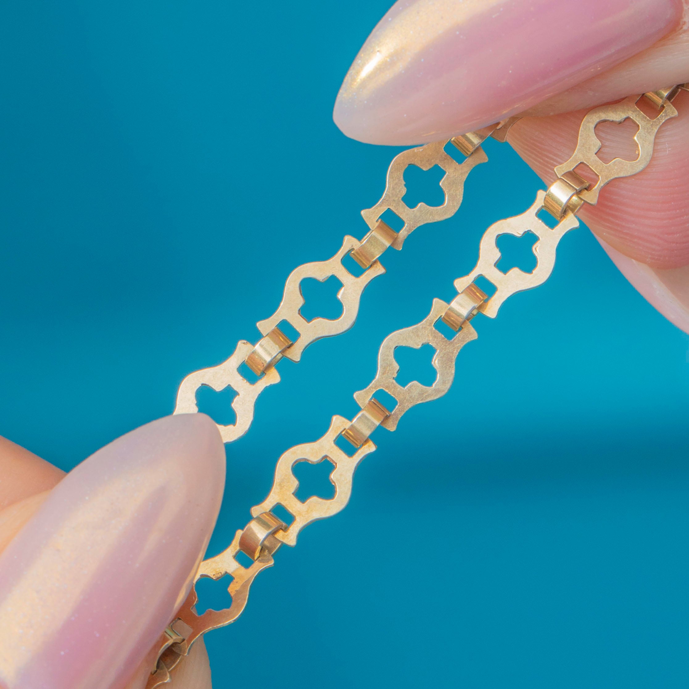 Crafted from glossy 14ct Gold, this versatile Victorian bracelet is formed of fancy links, each catching the light wonderfully.