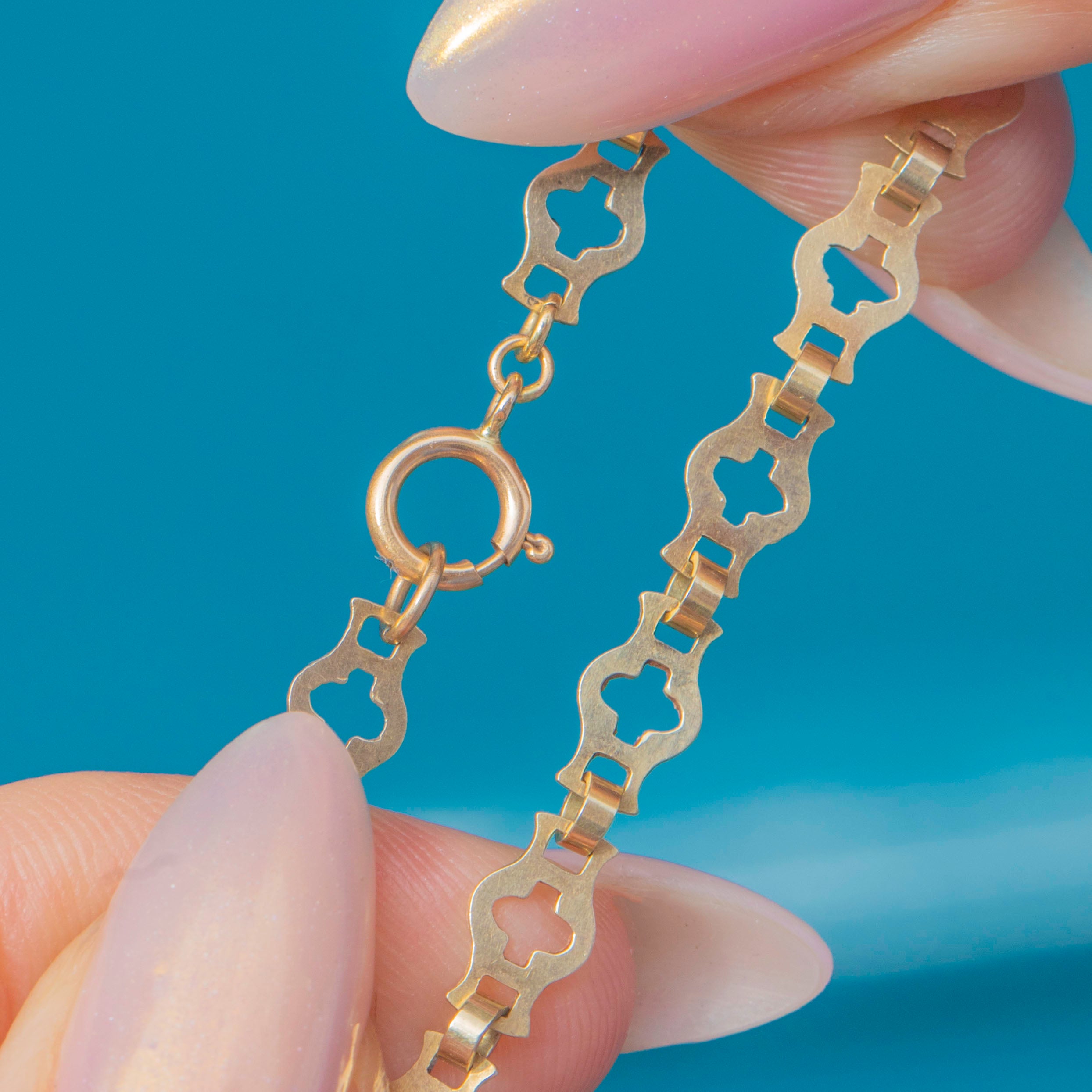 Complete with a large bolt ring, this antique 14ct Gold bracelet is the perfect piece to suspend a variety of charms or to pair alongside your other Golden goodies.