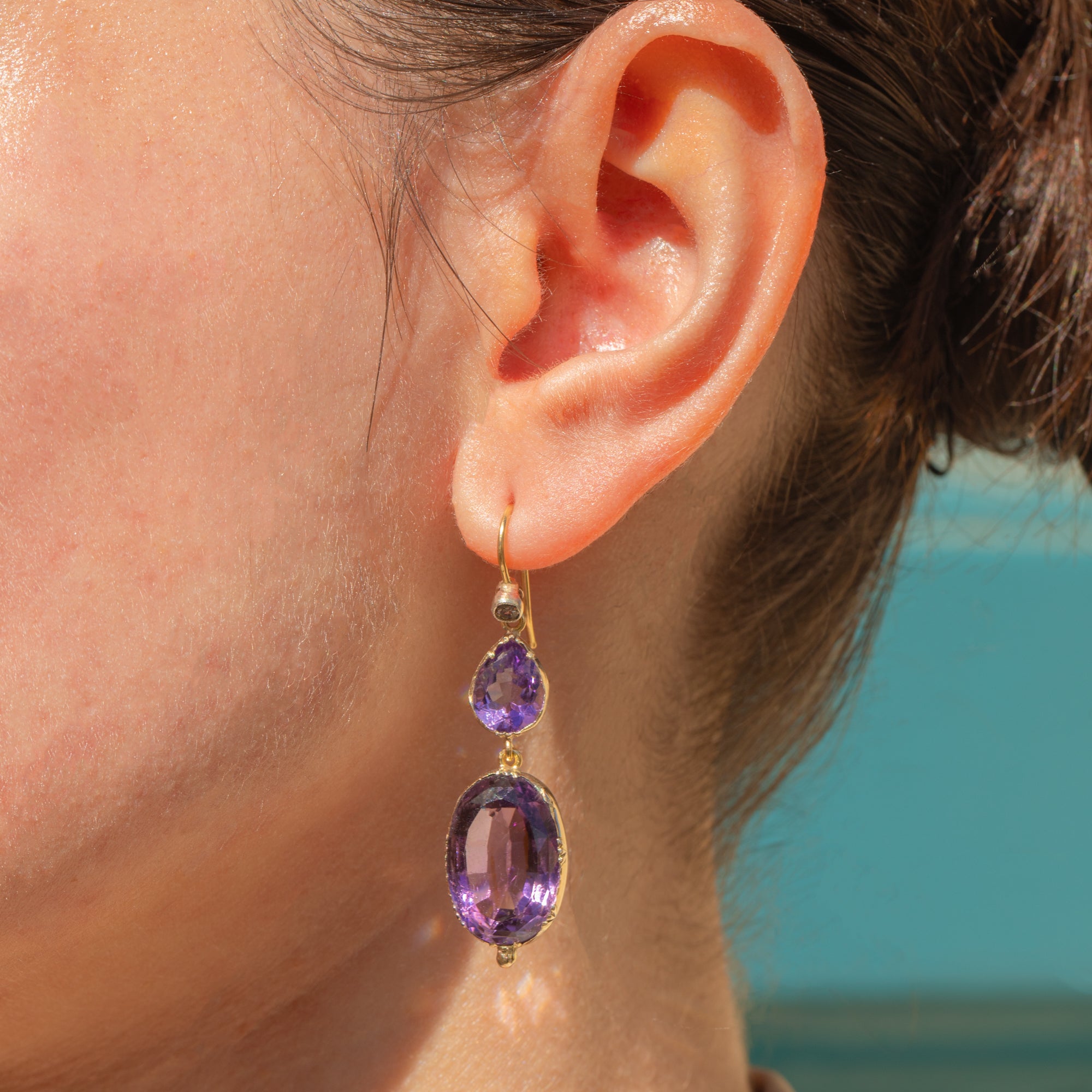 Add splendour to your attire with these bold antique 15ct Gold Amethyst Diamond drop earrings!