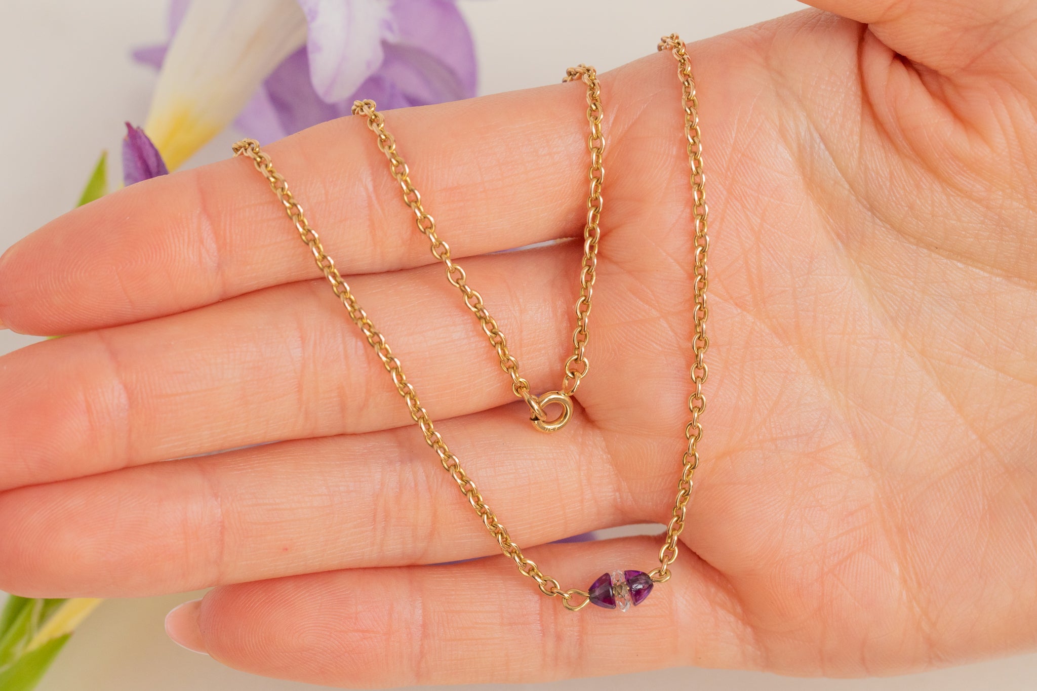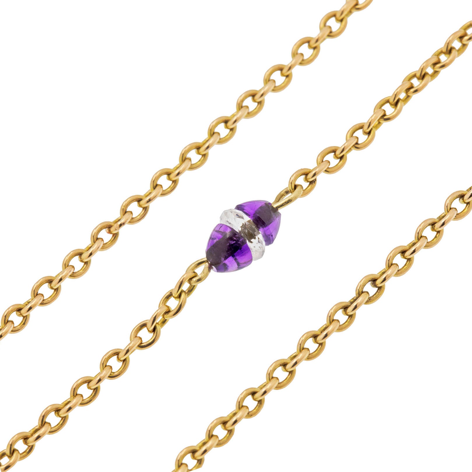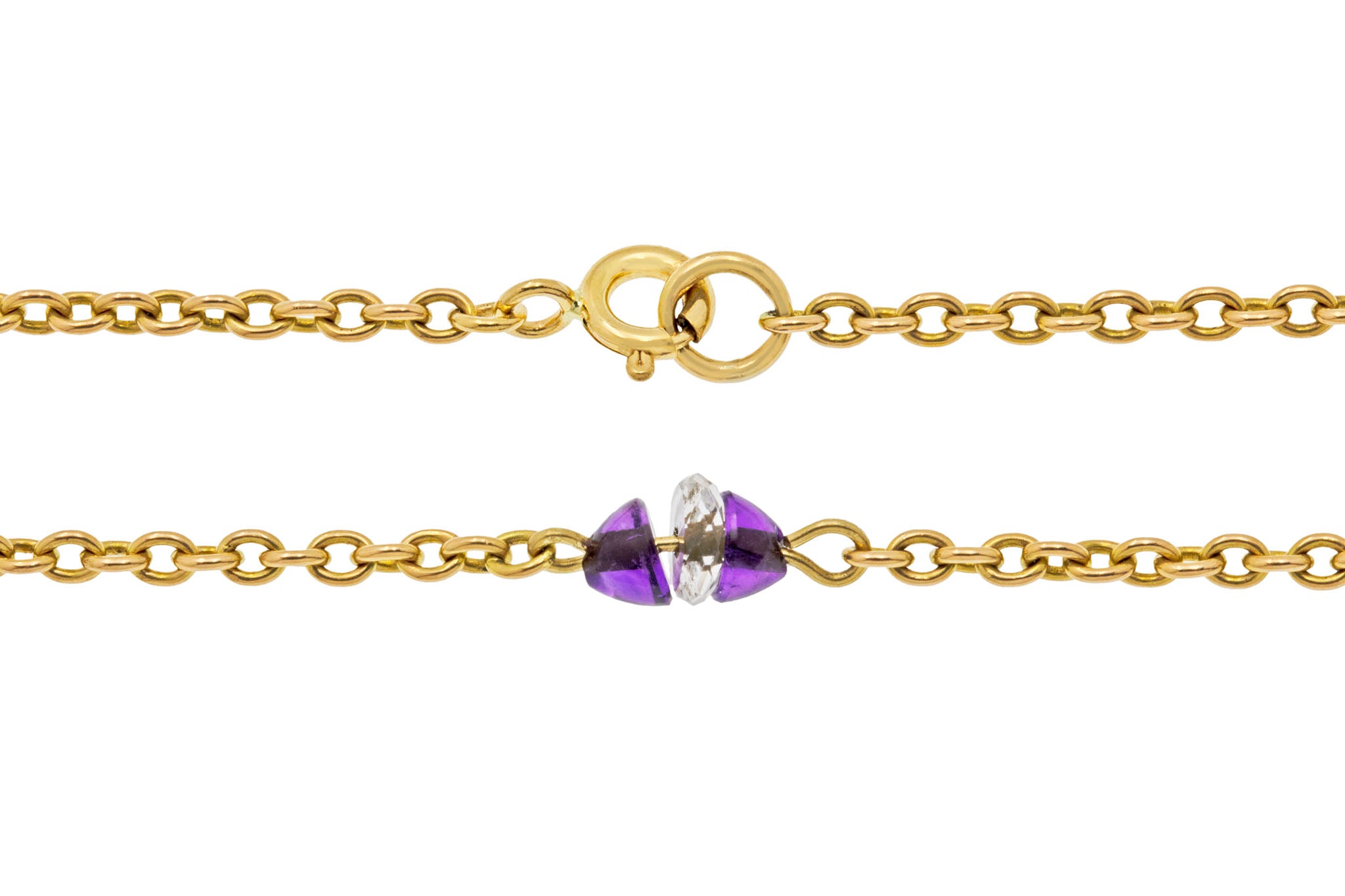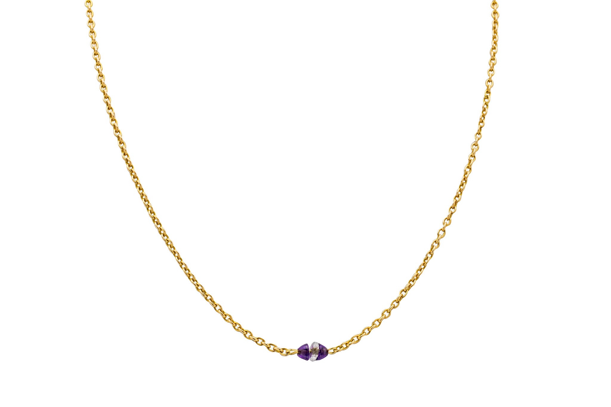 Collier intégral antique en or 15 carats de 16" avec améthyste et cristal de roche
