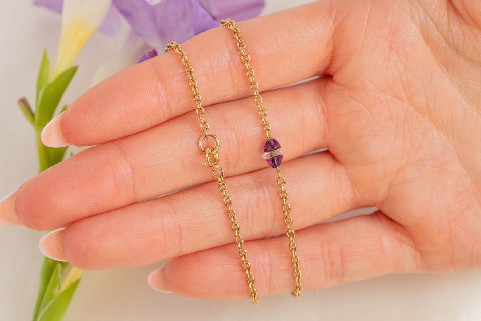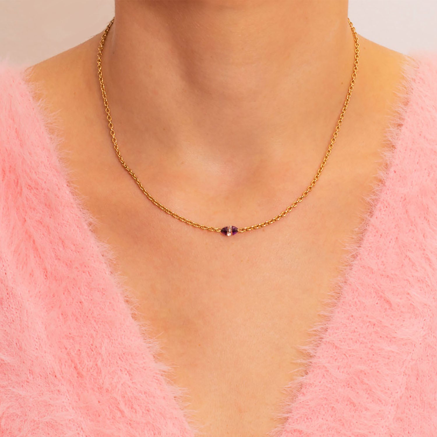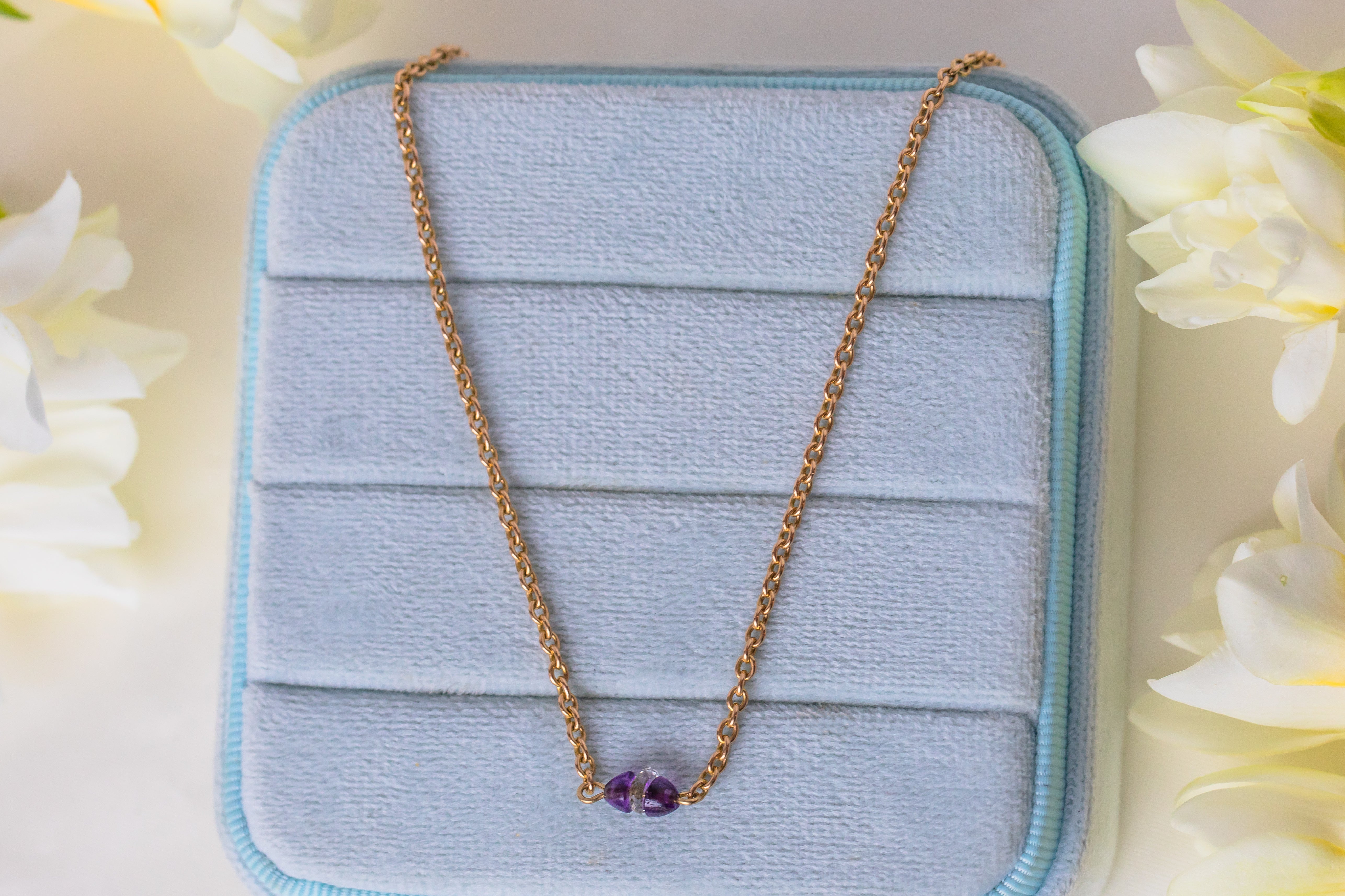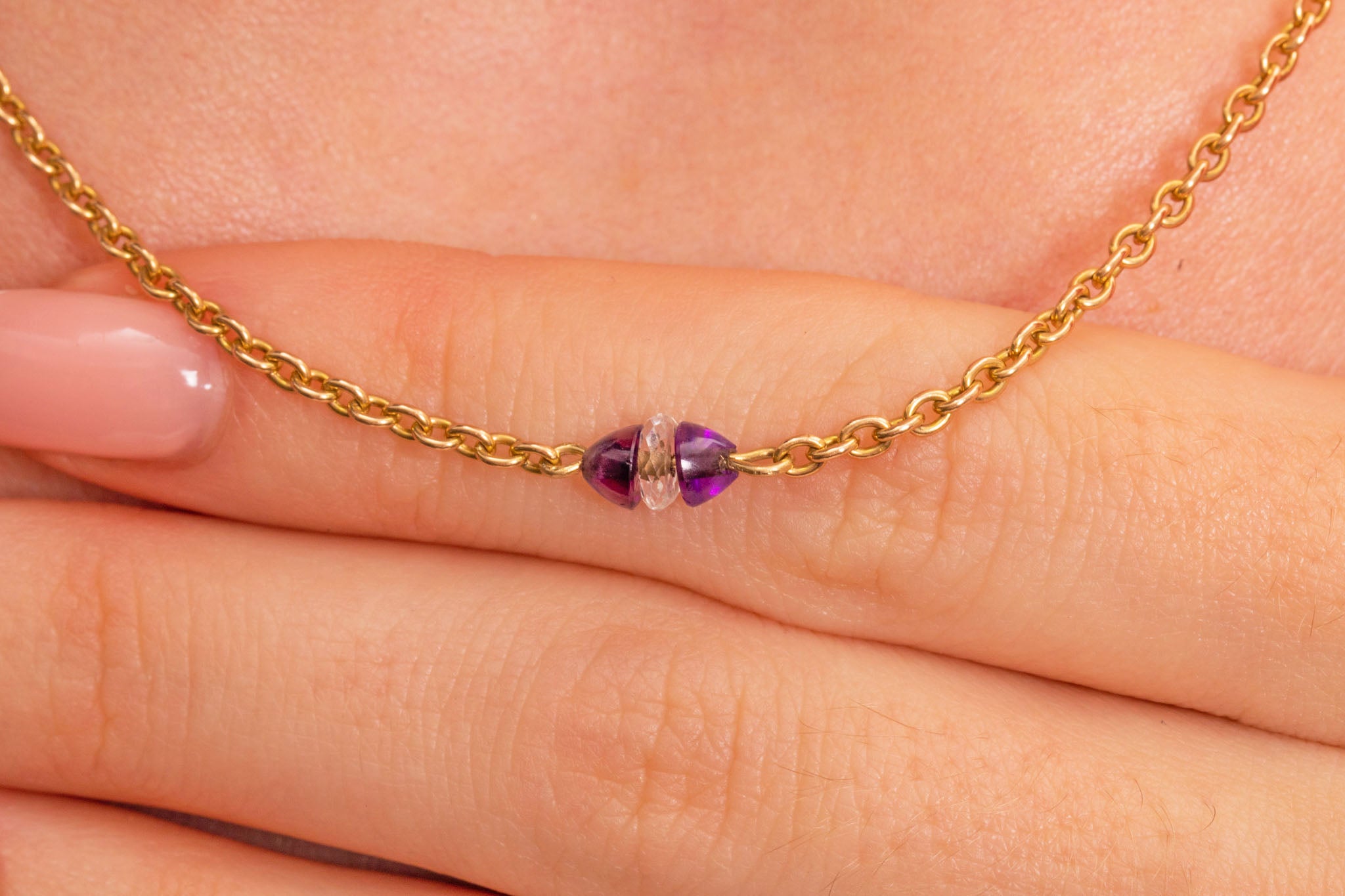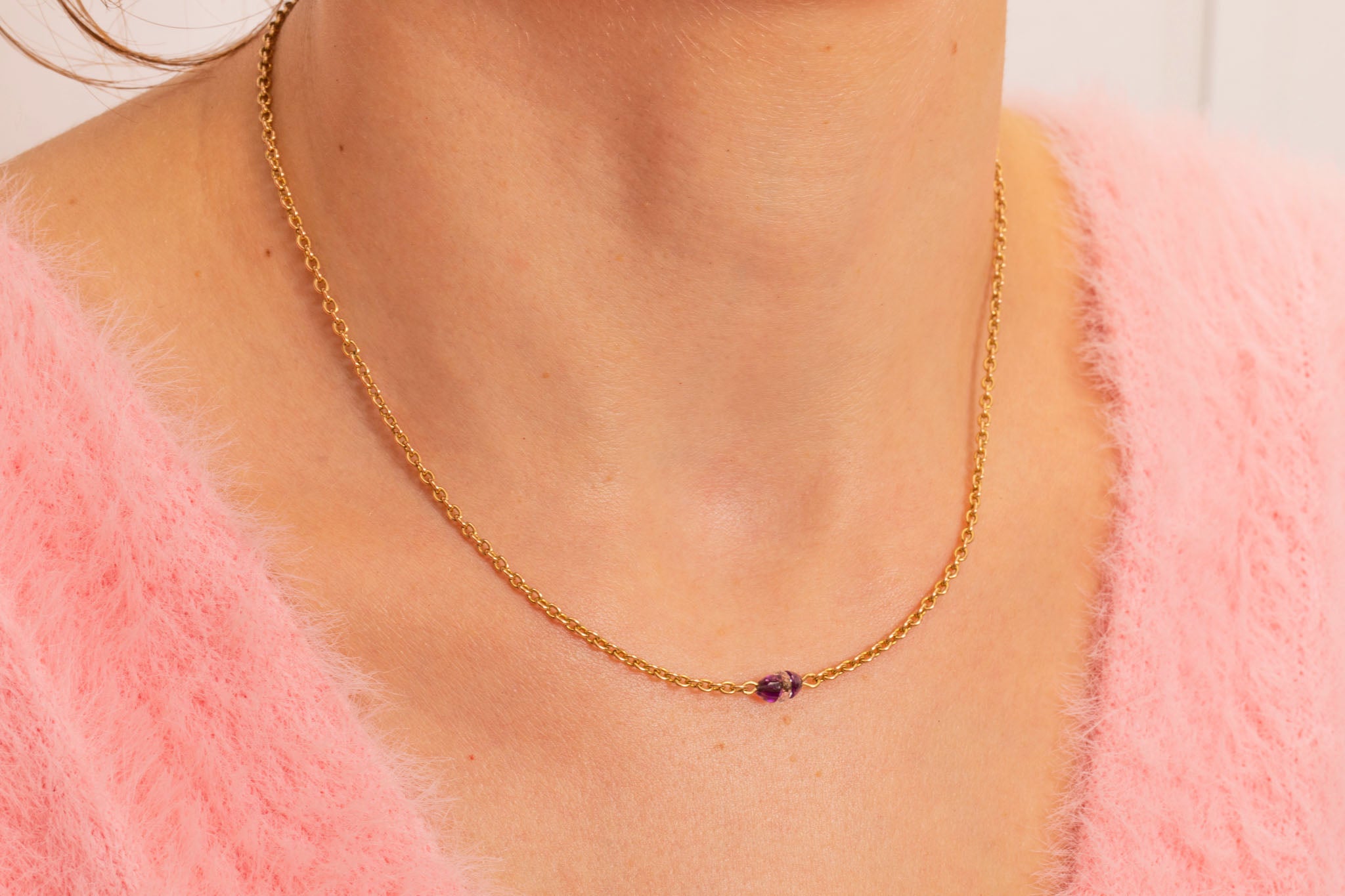 Collier intégral antique en or 15 carats de 16" avec améthyste et cristal de roche