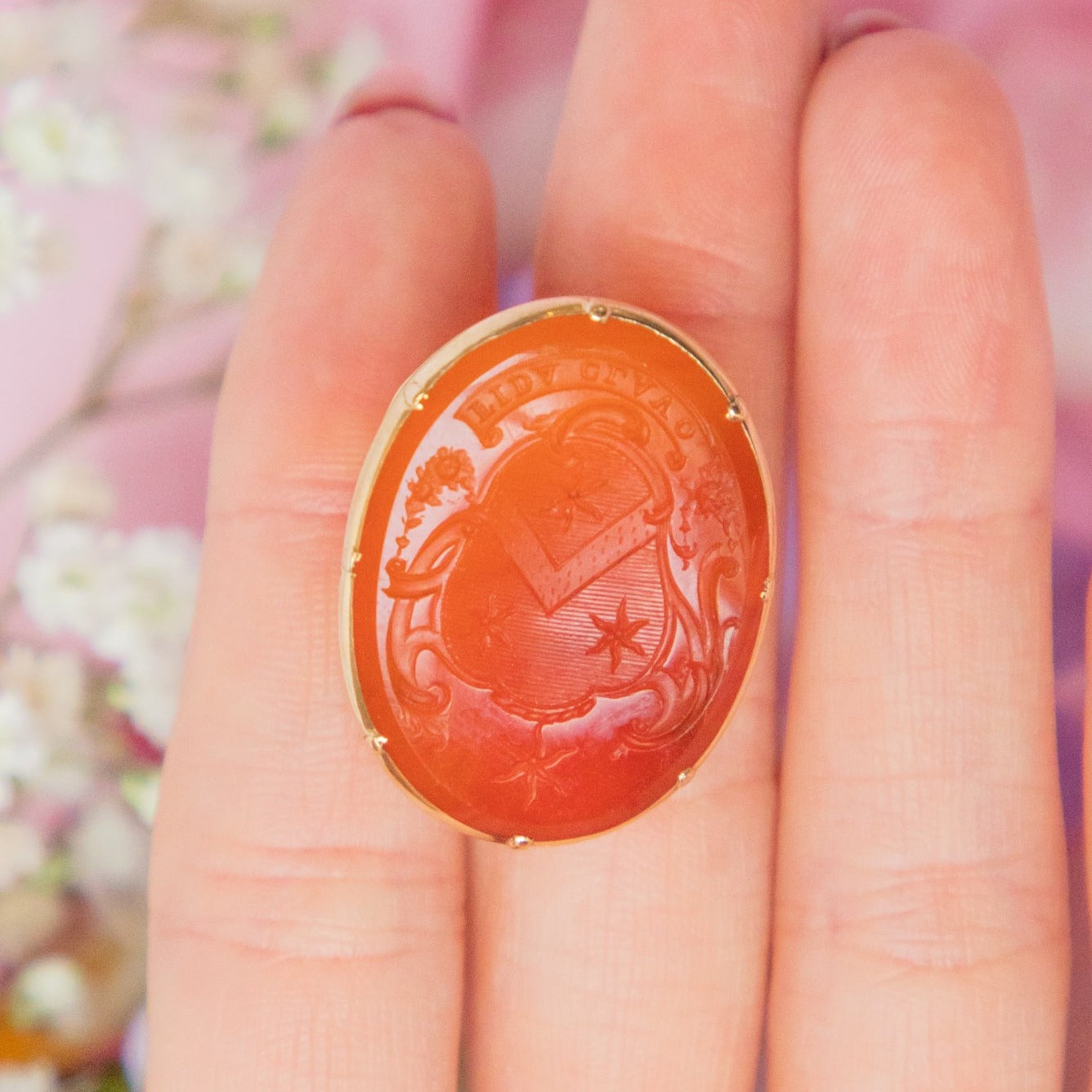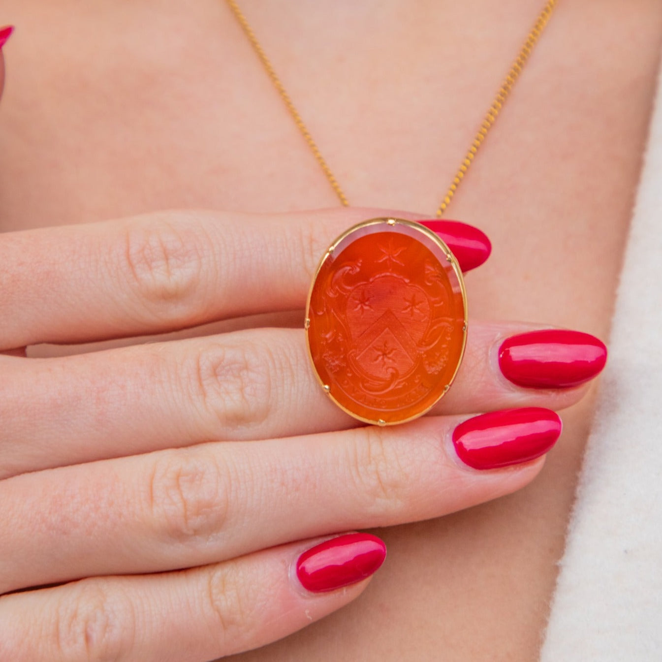 Pendentif cachet antique en or 15 carats avec intaille en cornaline