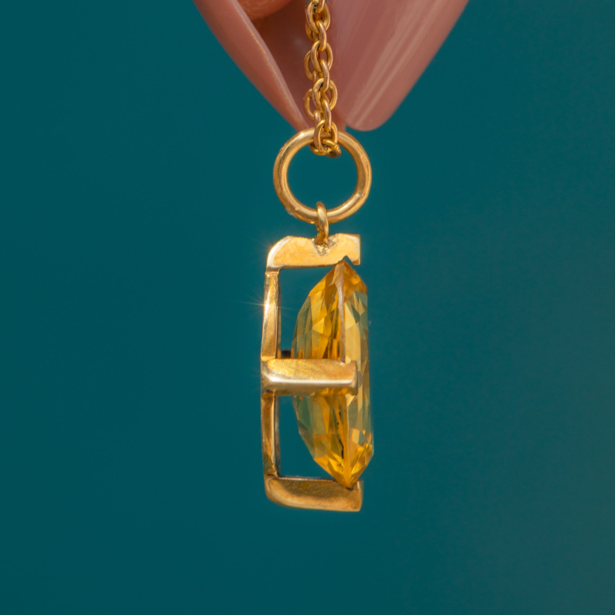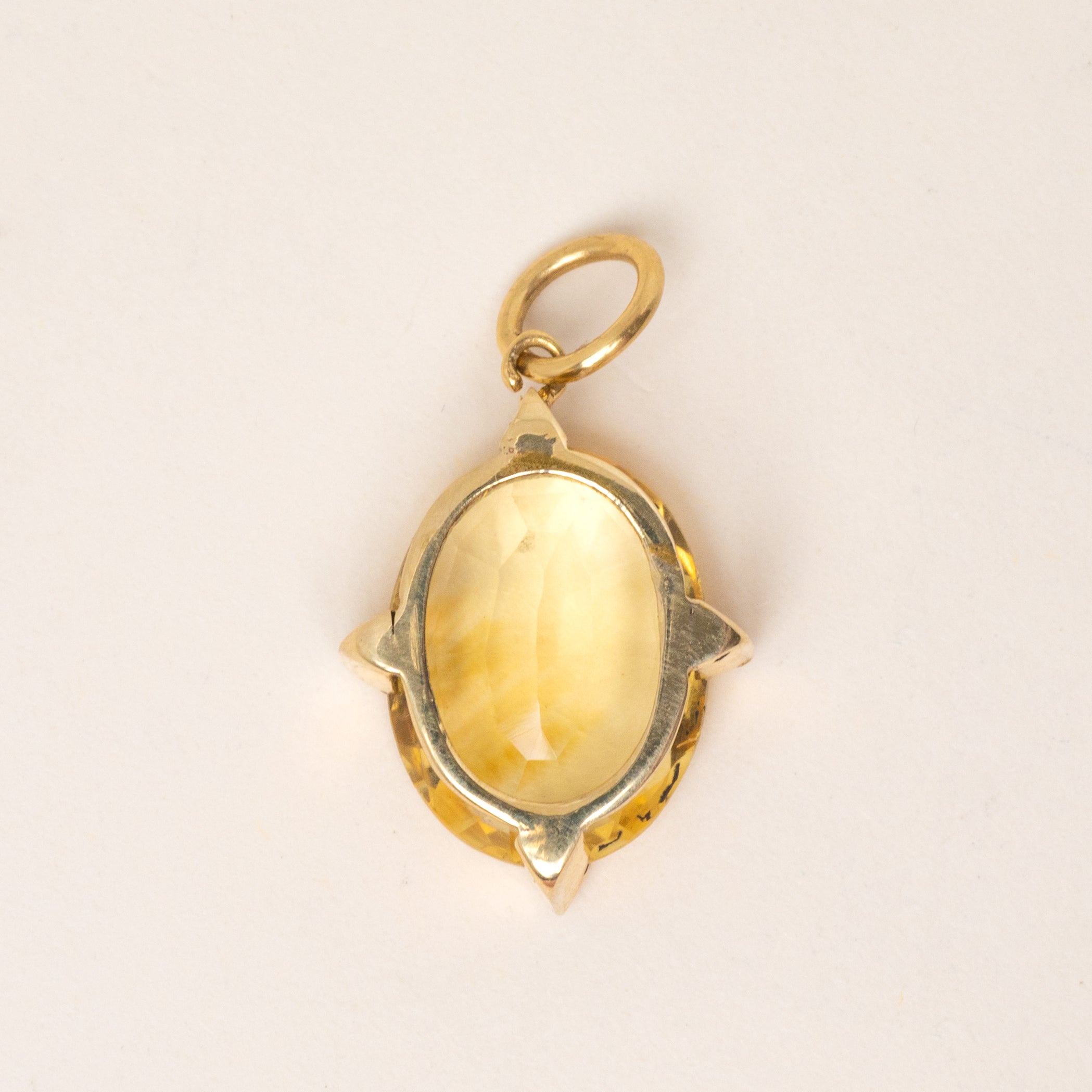 VERY GOOD. This antique 15ct Gold Citrine charm is in very good condition! The Citrine is immaculate with a crisp set of facets and is securely held within its settings. There is a small hairline crack on the back of one of the prongs, but this is not visible while worn and has remained structurally sound. The Gold is brightly saturated with only minor evidence of a previous conversion at the top of the pendant. With years of wear left in her, this antique Citrine pendant will soon become your new favourite go-to!