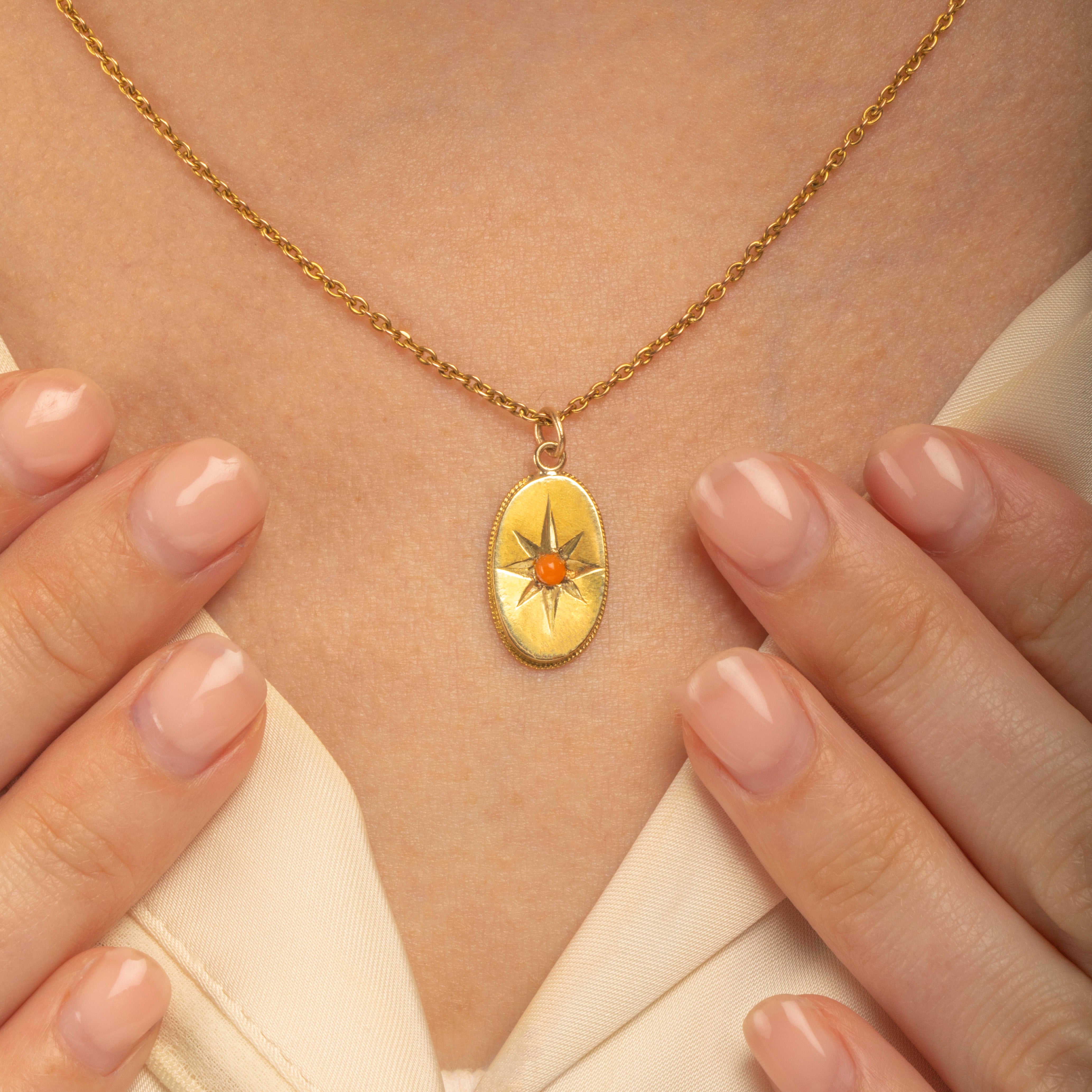 We simply adore this Victorian 15ct Gold star-set Coral pendant! Composed of a richly saturated 15ct Gold, she has a smooth, glossy appearance with an irresistible charm!