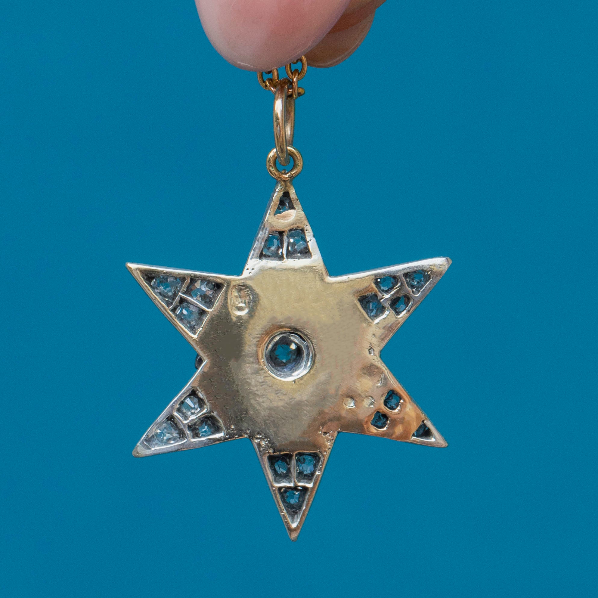 VERY GOOD TO EXCELLENT. This antique 15ct Gold Diamond starburst pendant is in excellent condition. Her Diamonds are set securely in their 15ct Gold and Silver. The pendant does have some sign of conversion from a brooch, but this can't be seen when you wear it and doesn't detract from her natural beauty. Make her yours and dazzle anyone that comes near!