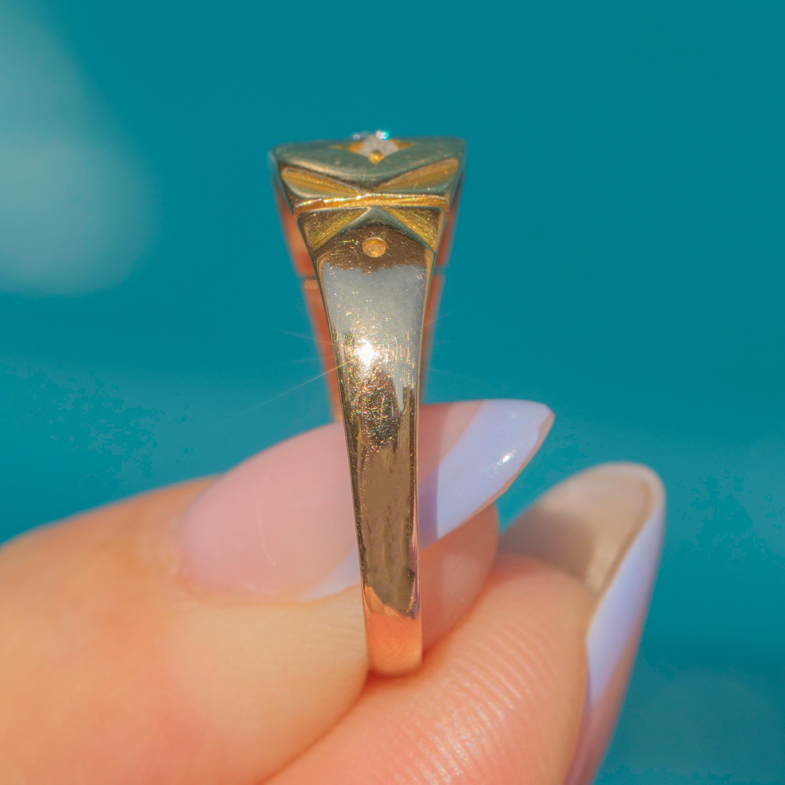 This antique 15ct Gold Diamond three stone star-set gypsy ring is full of celestial allure!