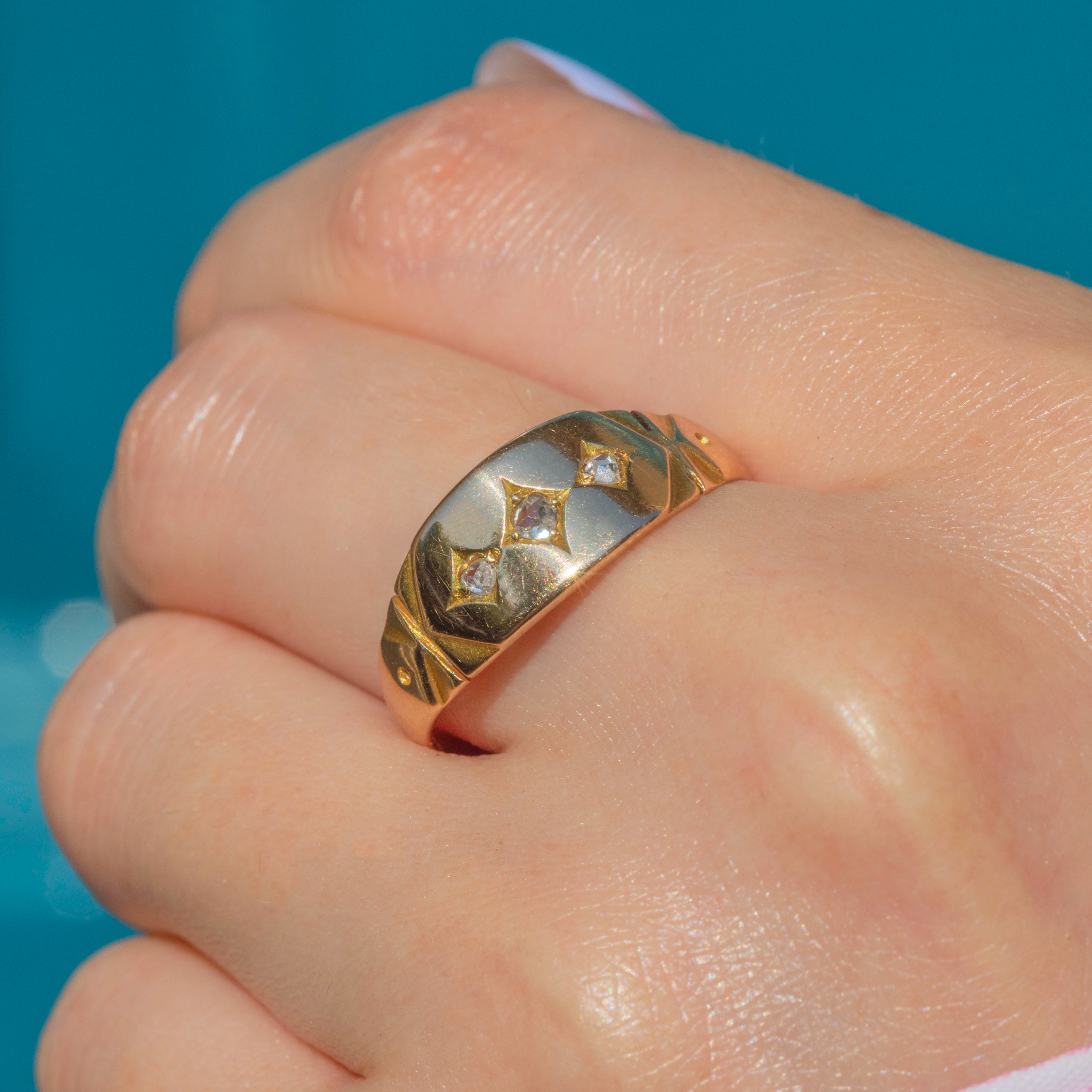 Antique 15ct Gold Diamond Three Stone Star-Set Gypsy Ring