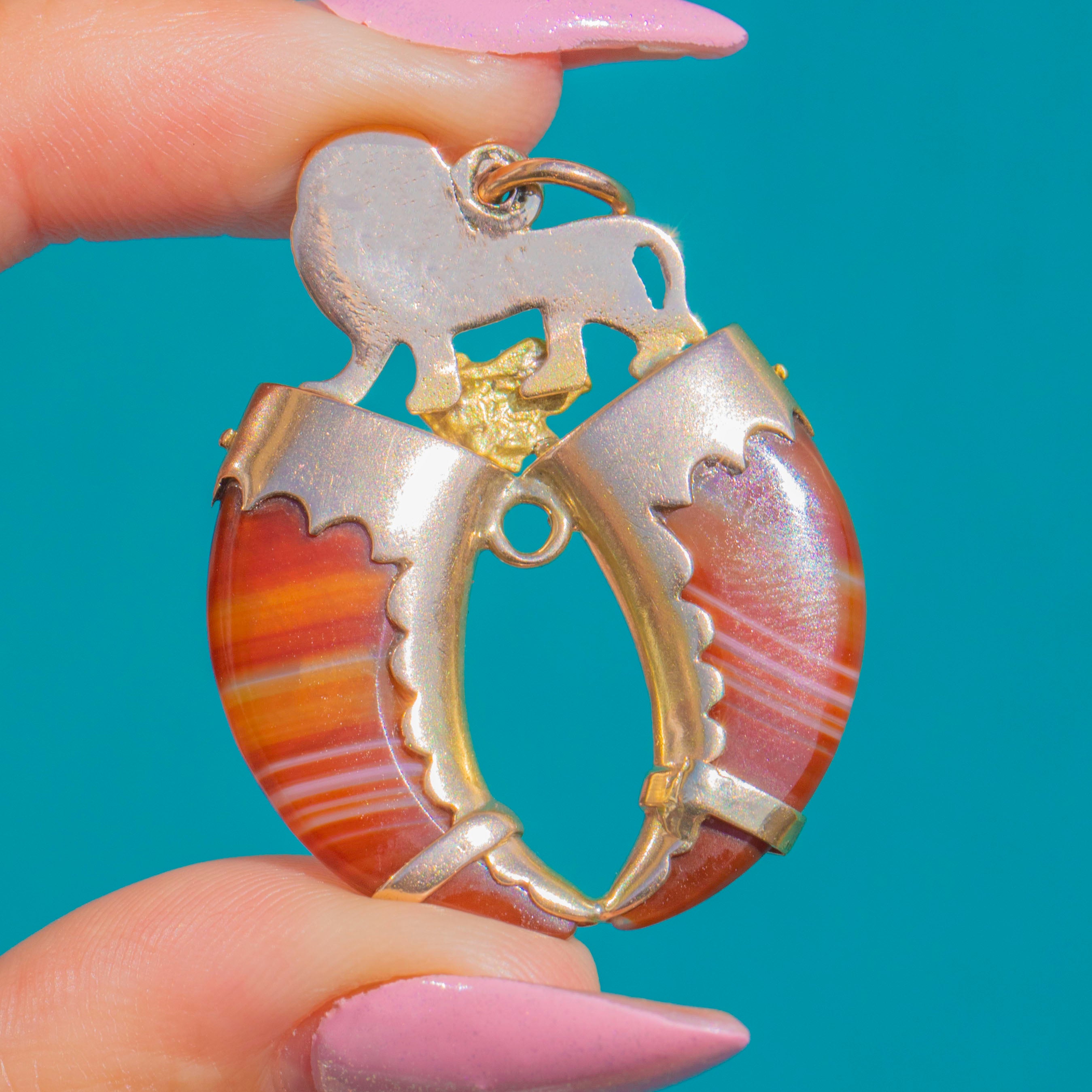 Majestic Antique 15ct Gold Double Lion Claw Pendant