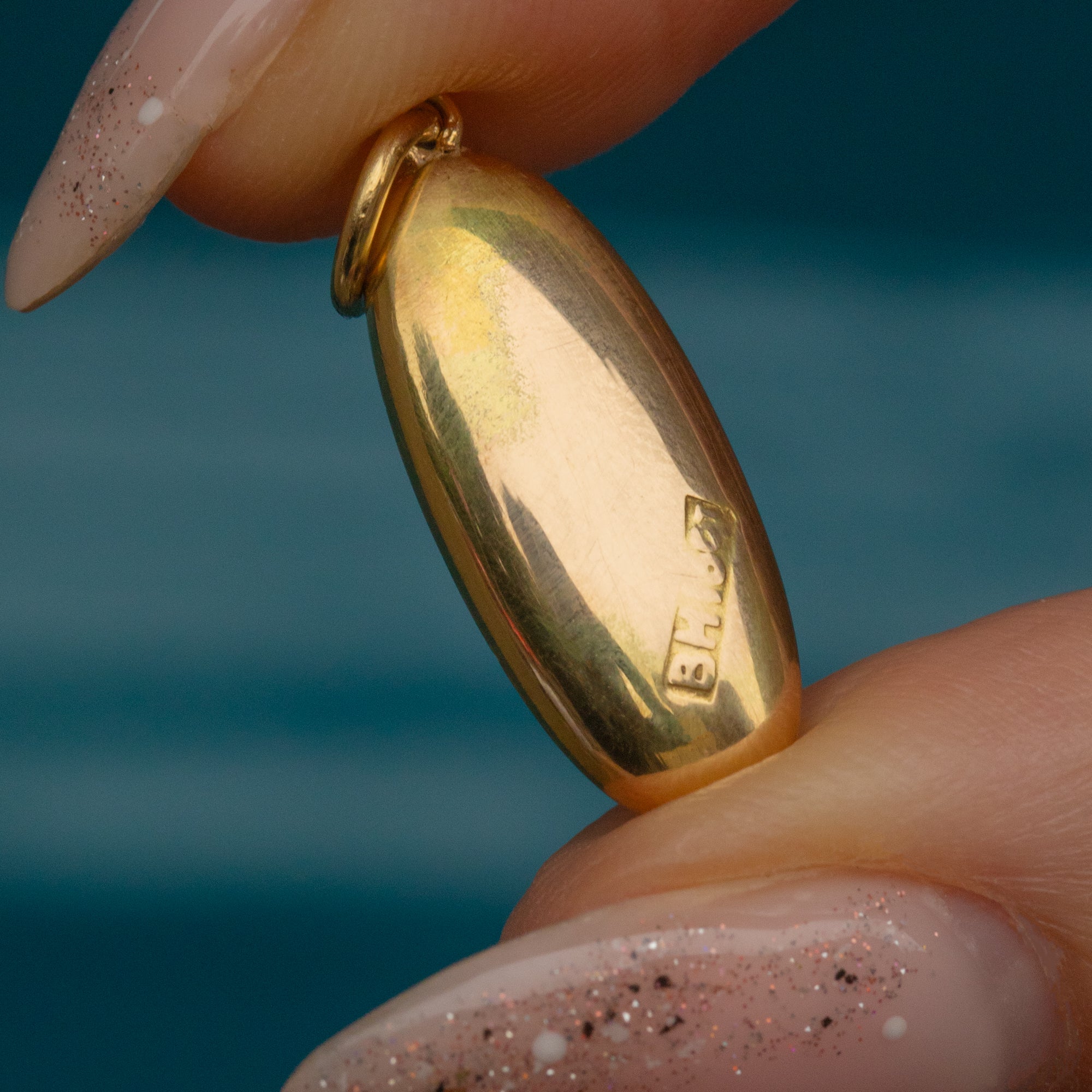 The front of this Edwardian pendant is inlaid with acanthus leaf engravings, a motif often featured within antique jewellery. Crafted entirely from buttery 15ct Gold, the light shines effortlessly across her glossy surface!