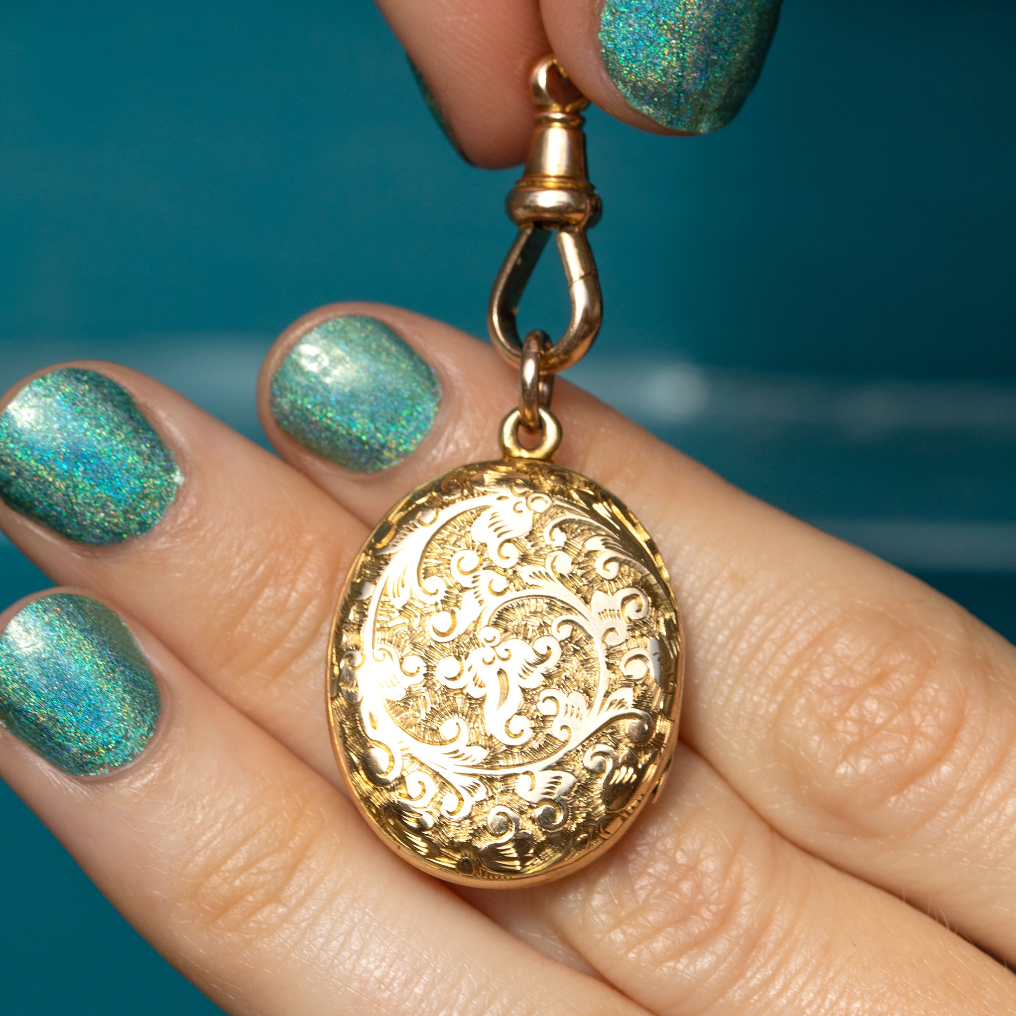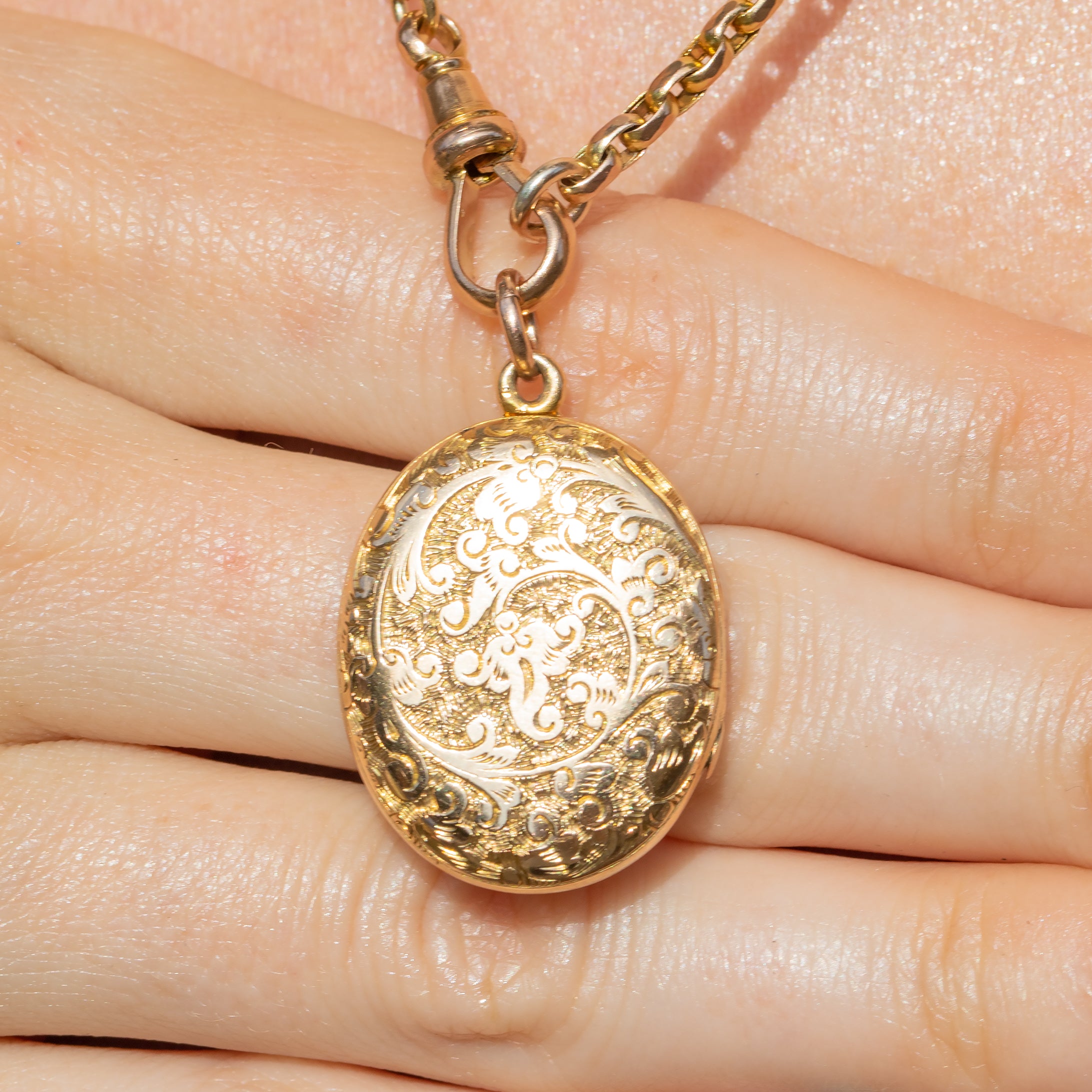 The delicate engravings on this Victorian Gold locket catch effortlessly beneath the light, and inside she holds a place for two of your most cherished photographs inside. A Gold locket carries so much sentimentality, making her the ideal gift for a loved one.