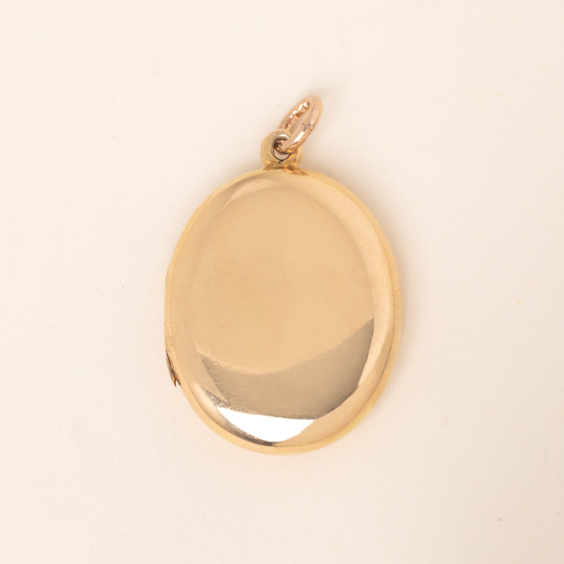 Bright and buttery, you will fall in love with this antique 15ct Gold engraved oval locket! Her front is adorned with sweeping acanthus leaf engravings, whilst her back boasts a smooth and glossy finish, allowing two ways to wear her.