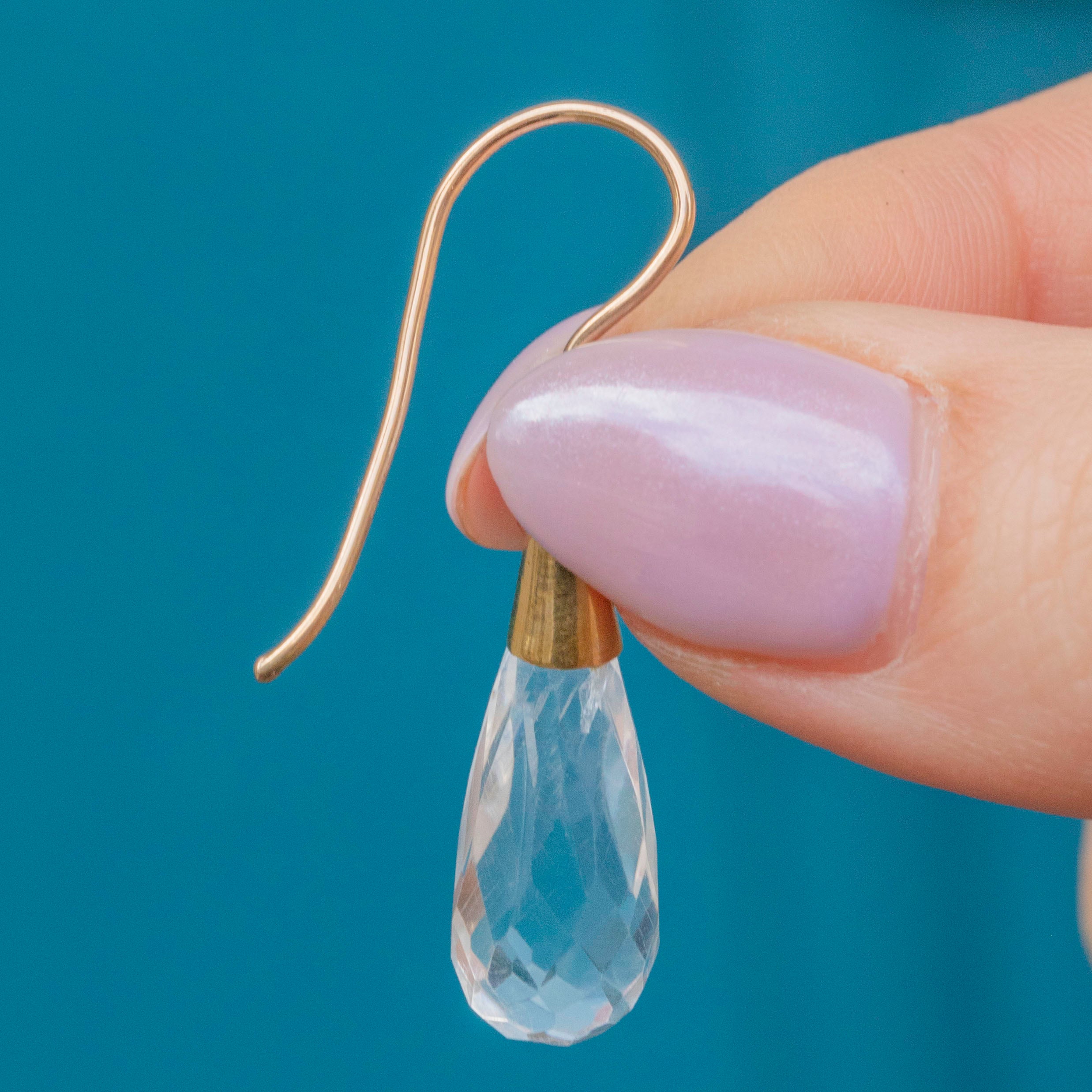 Watch as the light dances off these antique 15ct Gold faceted Rock Crystal earrings! The briolette cut of their Rock Crystals are carved to perfection, creating a sophisticated earring drop that can accompany any outfit with ease.