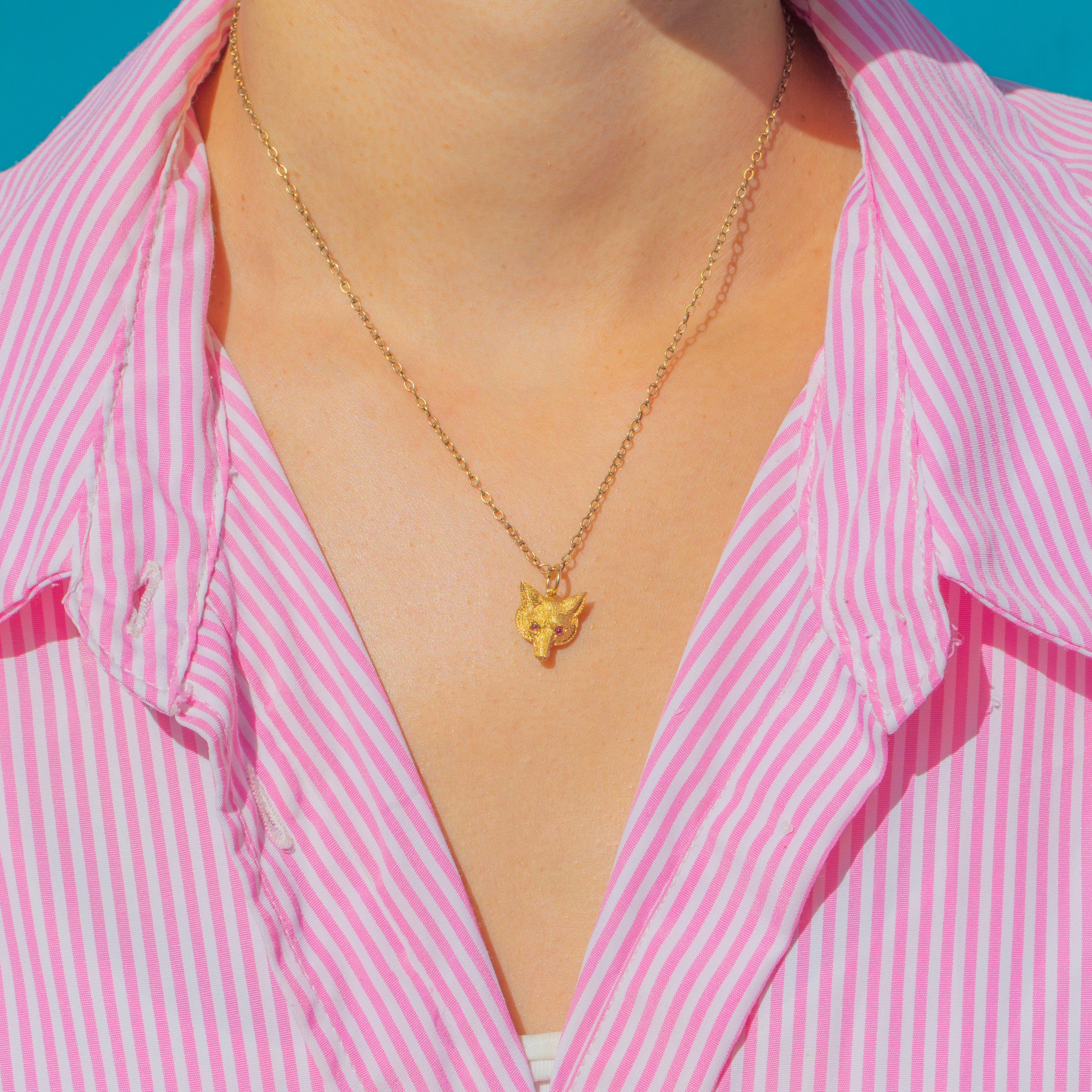 This Antique Victorian charm is crafted in 15ct Gold and modelled as a finely detailed fox head. The fox’s sharp features are brought to life with incredible texture, while a pair of glowing Ruby eyes add a vivid pop of colour and character. Symbolising cleverness and adaptability, fox motifs were a popular subject in Victorian jewellery, often worn as talismans of wit and resourcefulness.