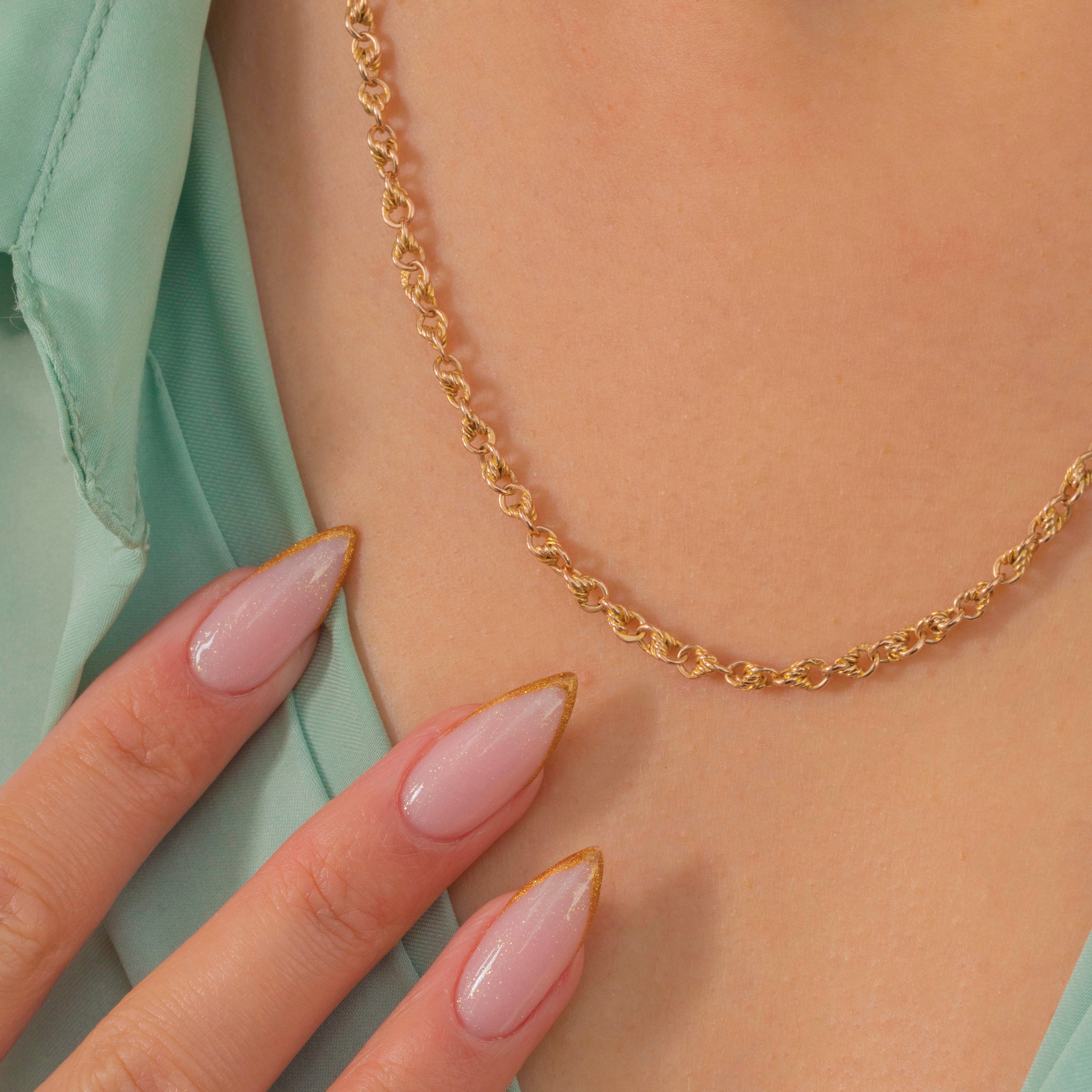 The design embodies timeless craftsmanship — both decorative and durable — making it a perfect chain to wear alone or layered with pendants and charms. Its glossy finish and refined construction showcase the very best of 19th-century Goldsmithing.