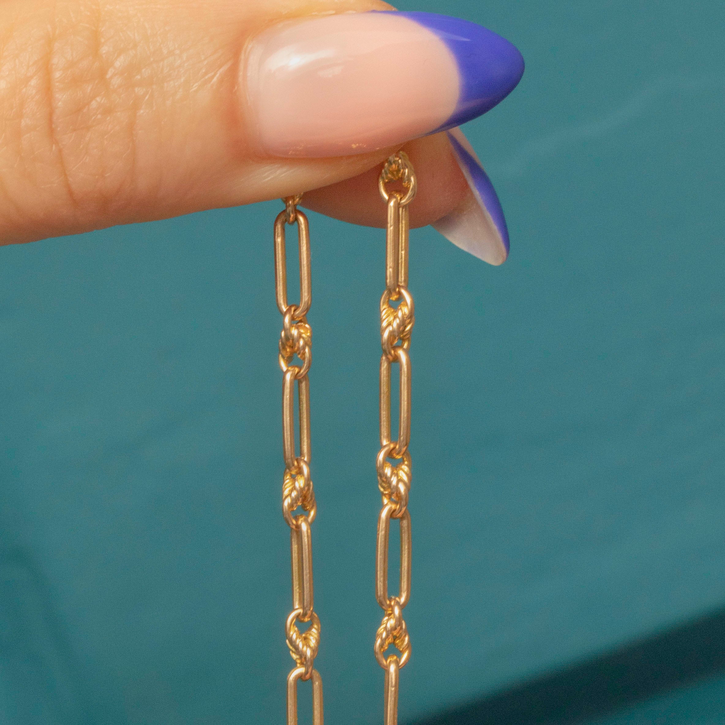 EXCELLENT. This antique 15ct Gold lovers knot trombone link bracelet is without fault! Each link is securely connected and the Gold has gorgeous reflective qualities throughout. With a later added bolt-ring in perfect working order, this Victorian bracelet is ready to wear straight from your pink Lillicoco box!
