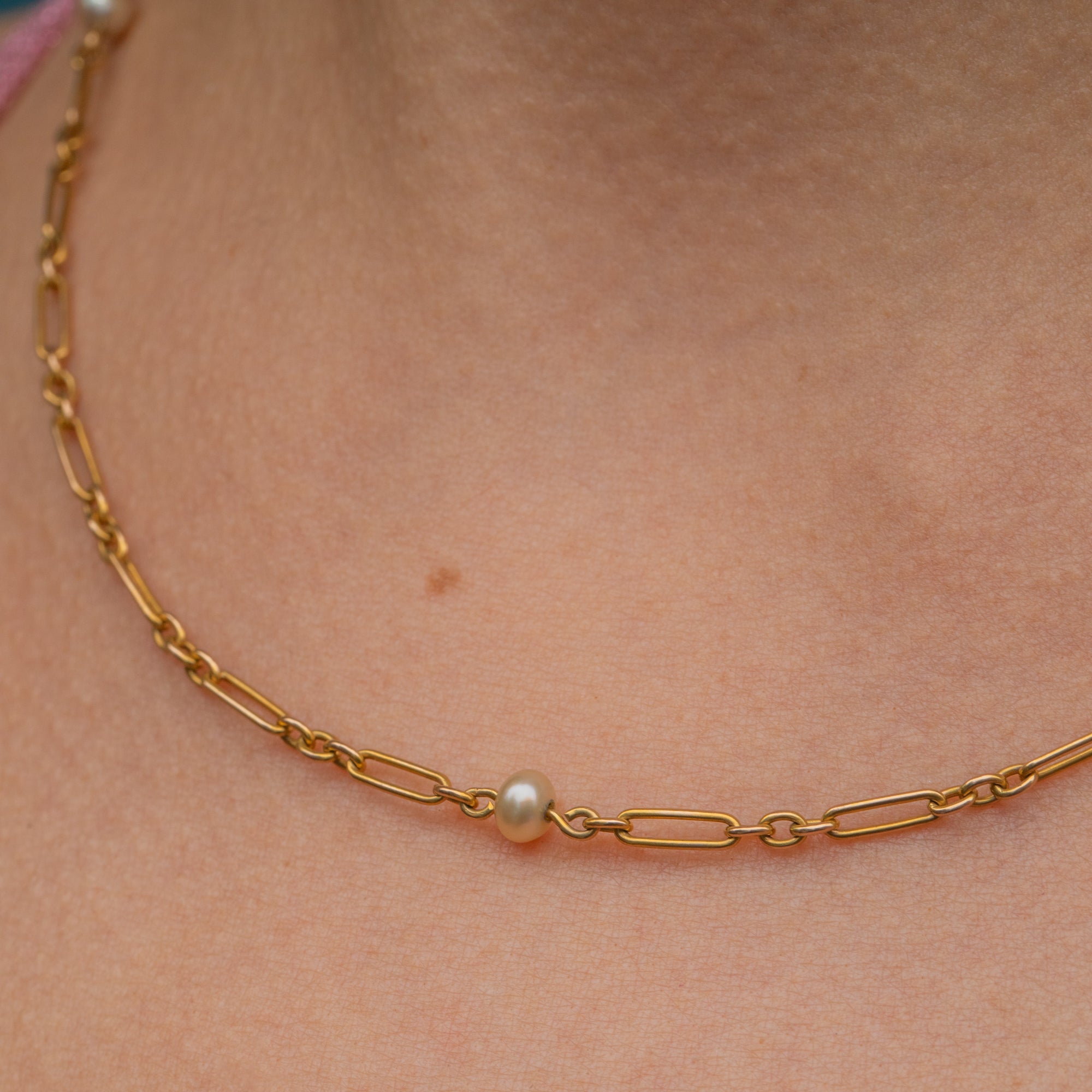 Antique 15ct Gold Mini Trombone Link Chain with Pearls, 17"