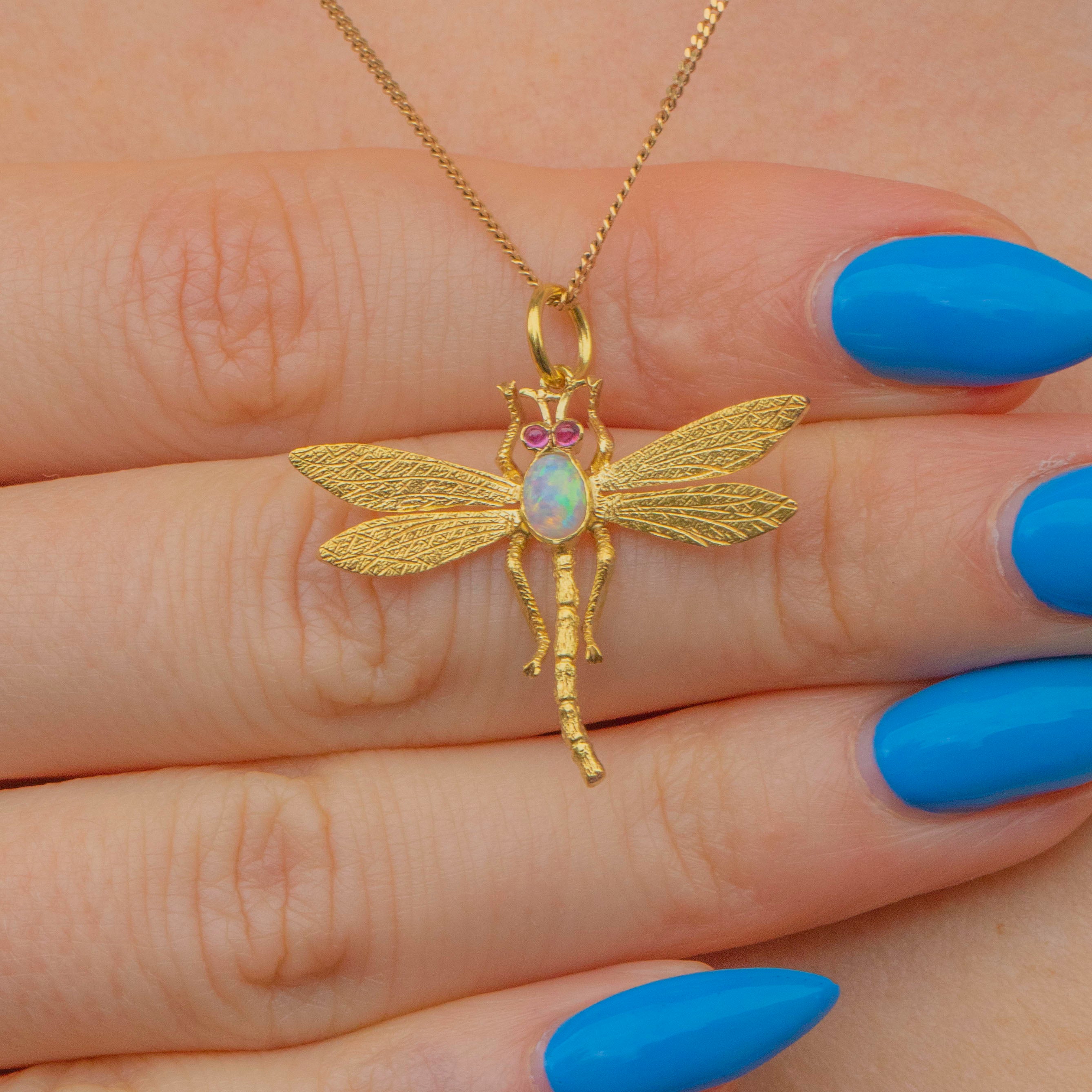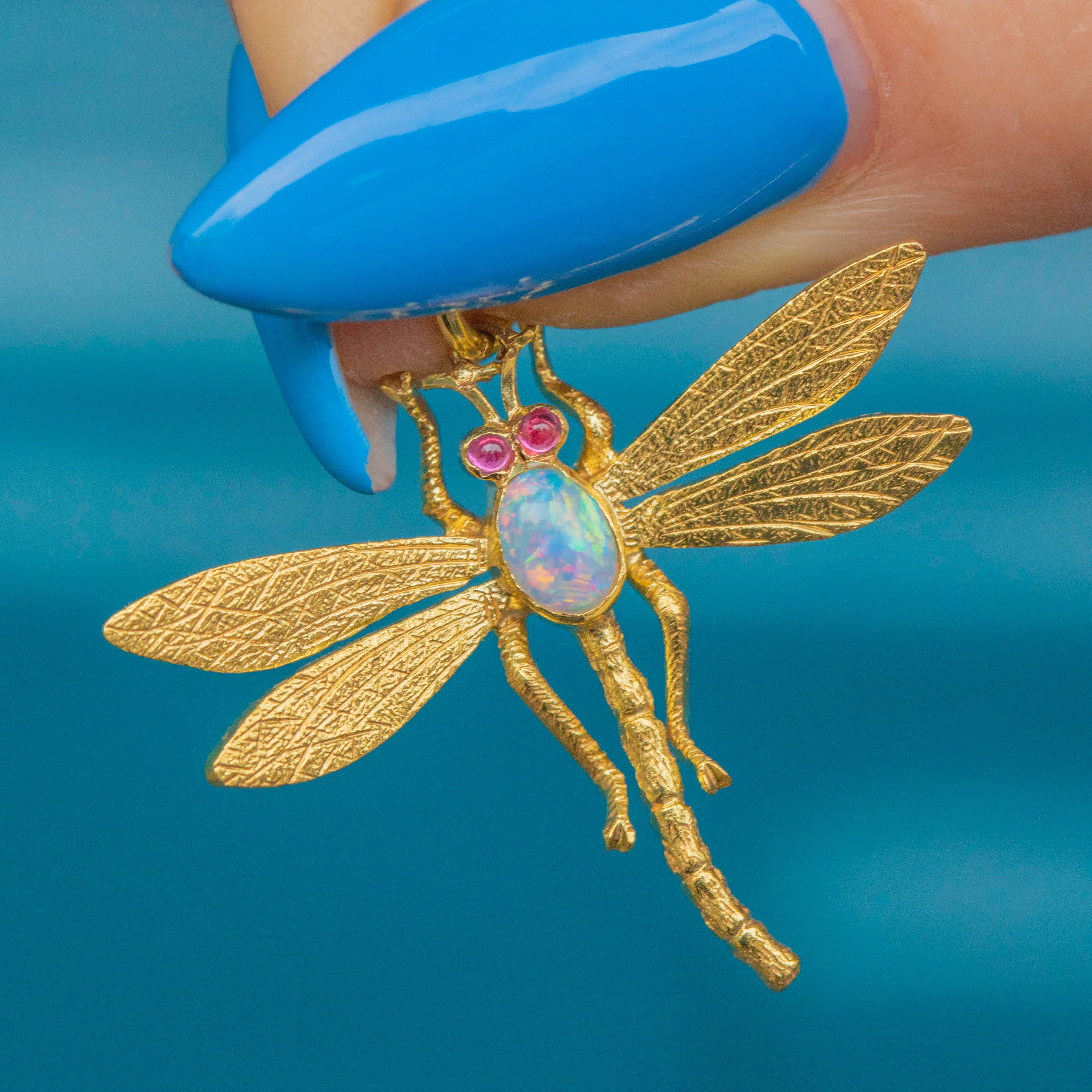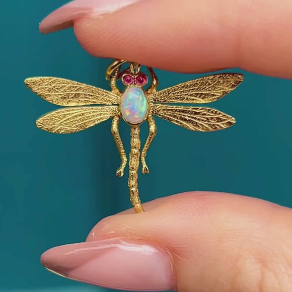 Antique 15ct Gold Opal Dragonfly Pendant, Ruby Eyes