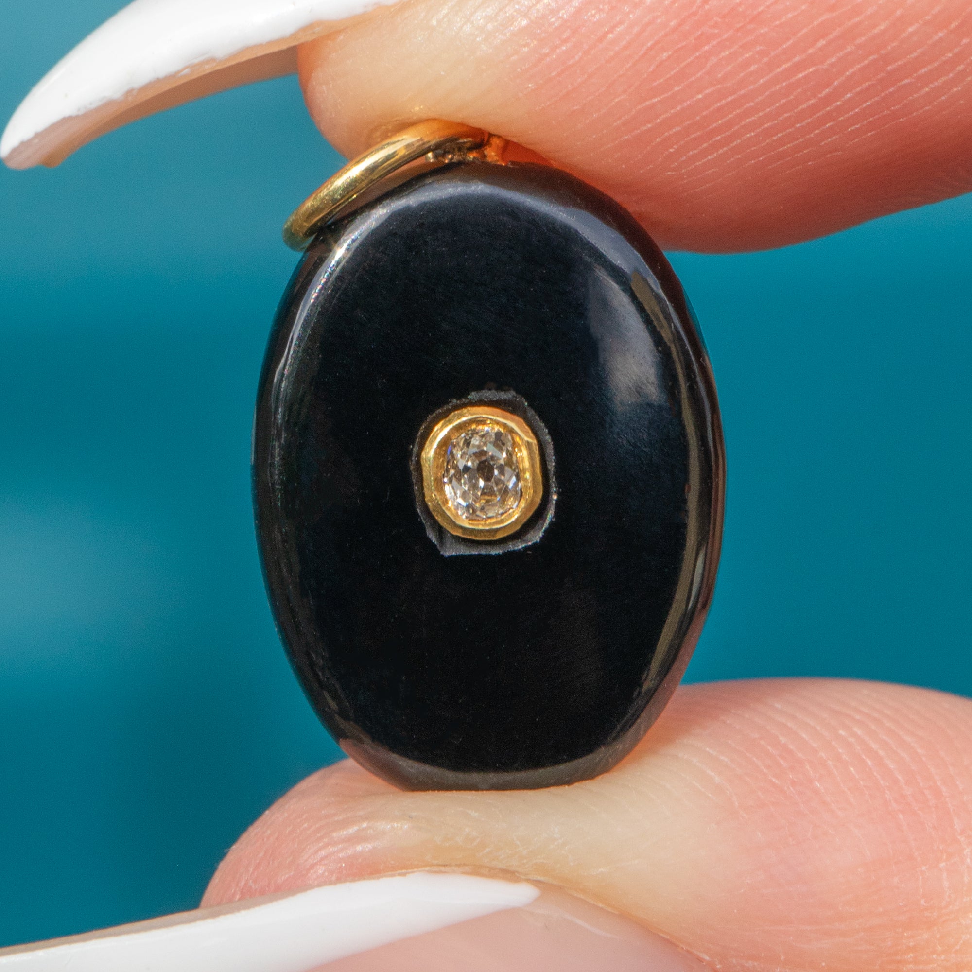 Antique 15ct Gold Oval Onyx Diamond Charm