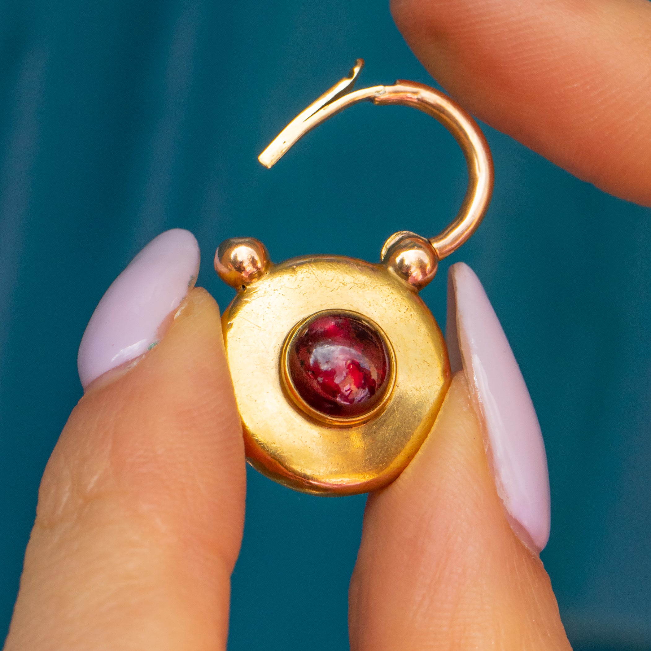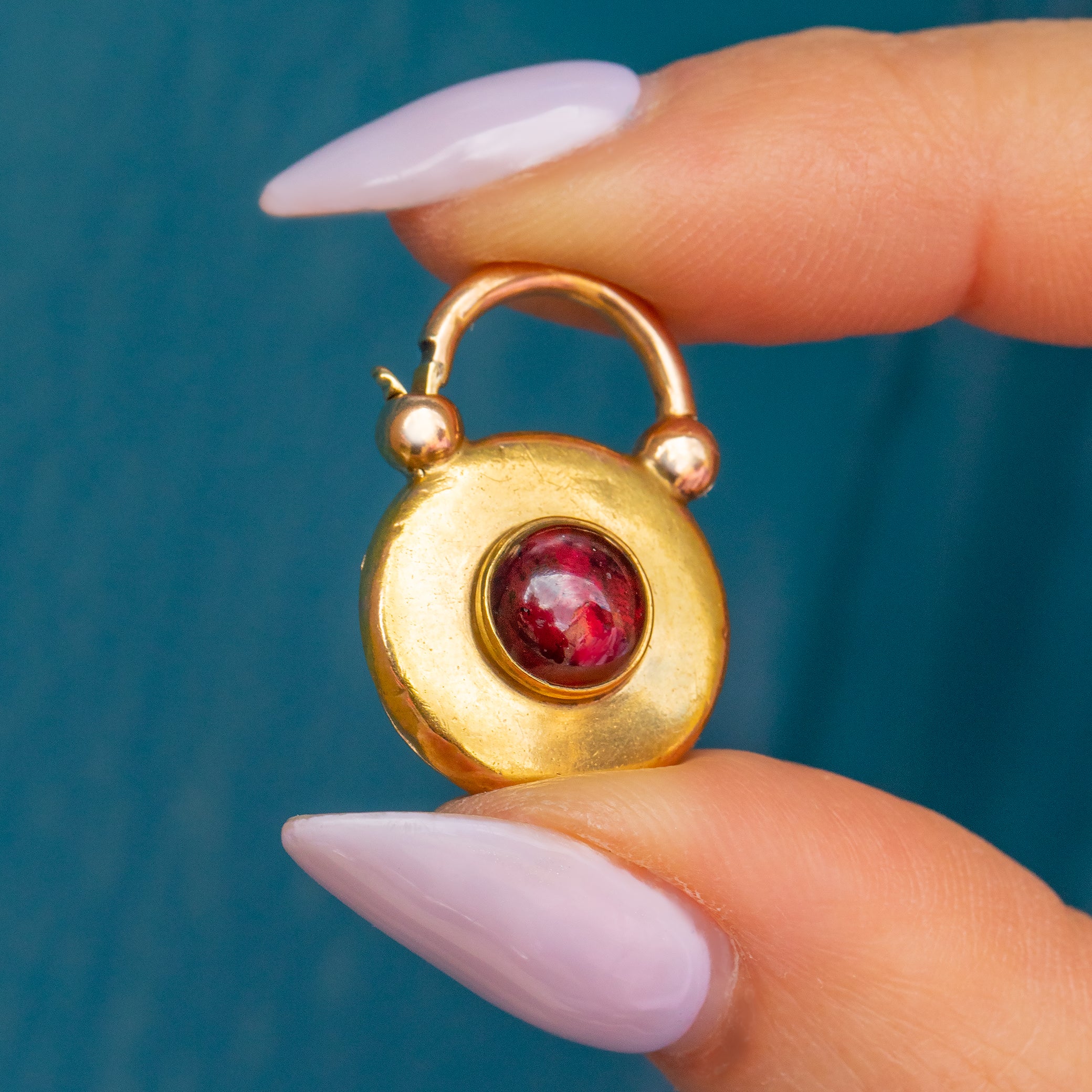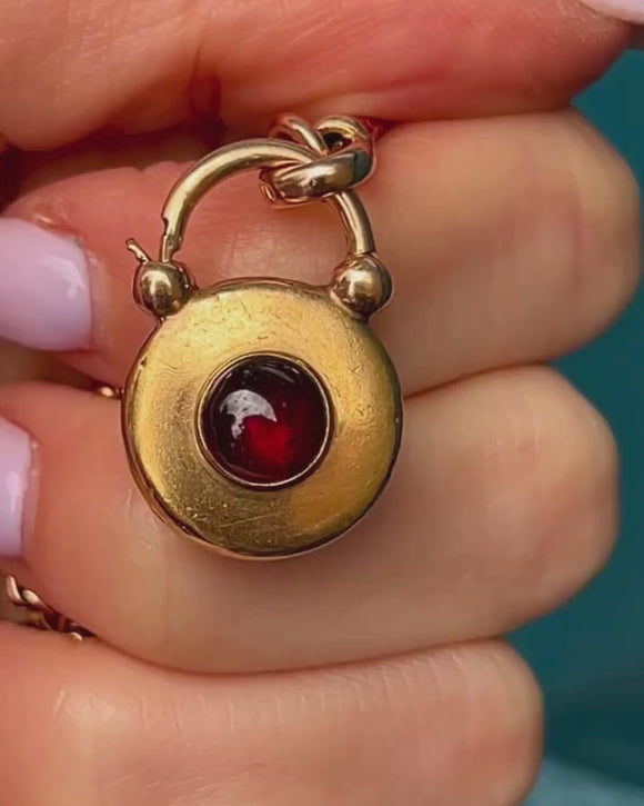 Antique 15ct Gold Round Garnet Padlock, 2.00ct